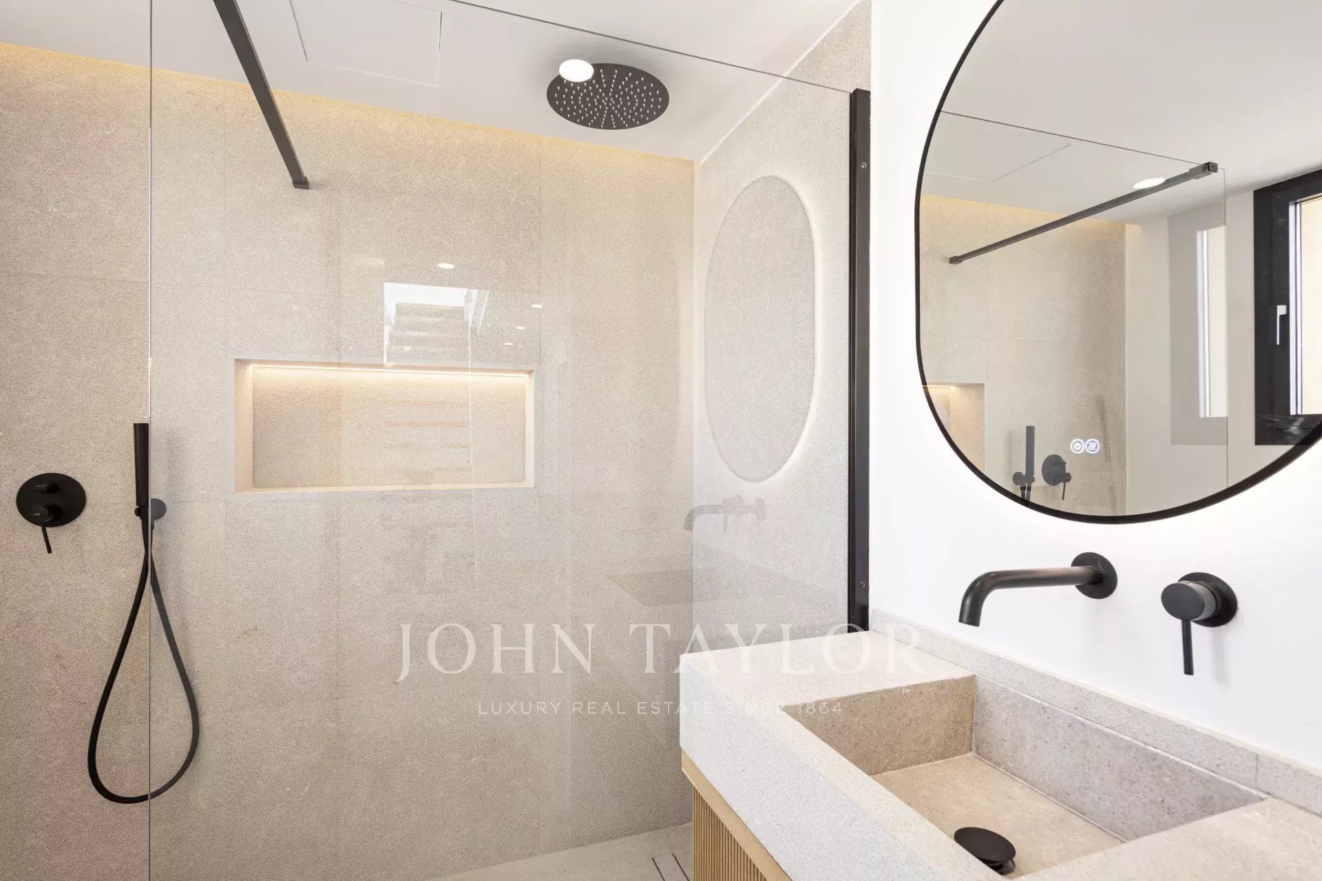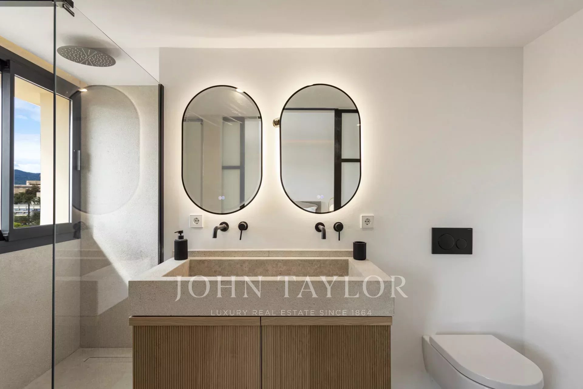 Искусно выполненная лестница ведет на верхний этаж, где вы найдете три спальни и две ванные комнаты с душевыми кабинами, а также вторую частную террасу, идеально подходящую для спокойных моментов на свежем воздухе.