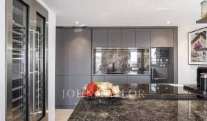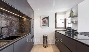 Внутренняя жилая площадь составляет 141 кв. м и включает в себя лифт/прихожую, большую гостиную/столовую с камином и кухню открытой планировки с островом для завтрака и техникой Gaggenau. Главная спальня дополнена ванной комнатой, оборудованной техникой Duravit. Также есть гостевая спальня и отдельная ванная комната. Из обеих спален есть прямой выход на террасу.