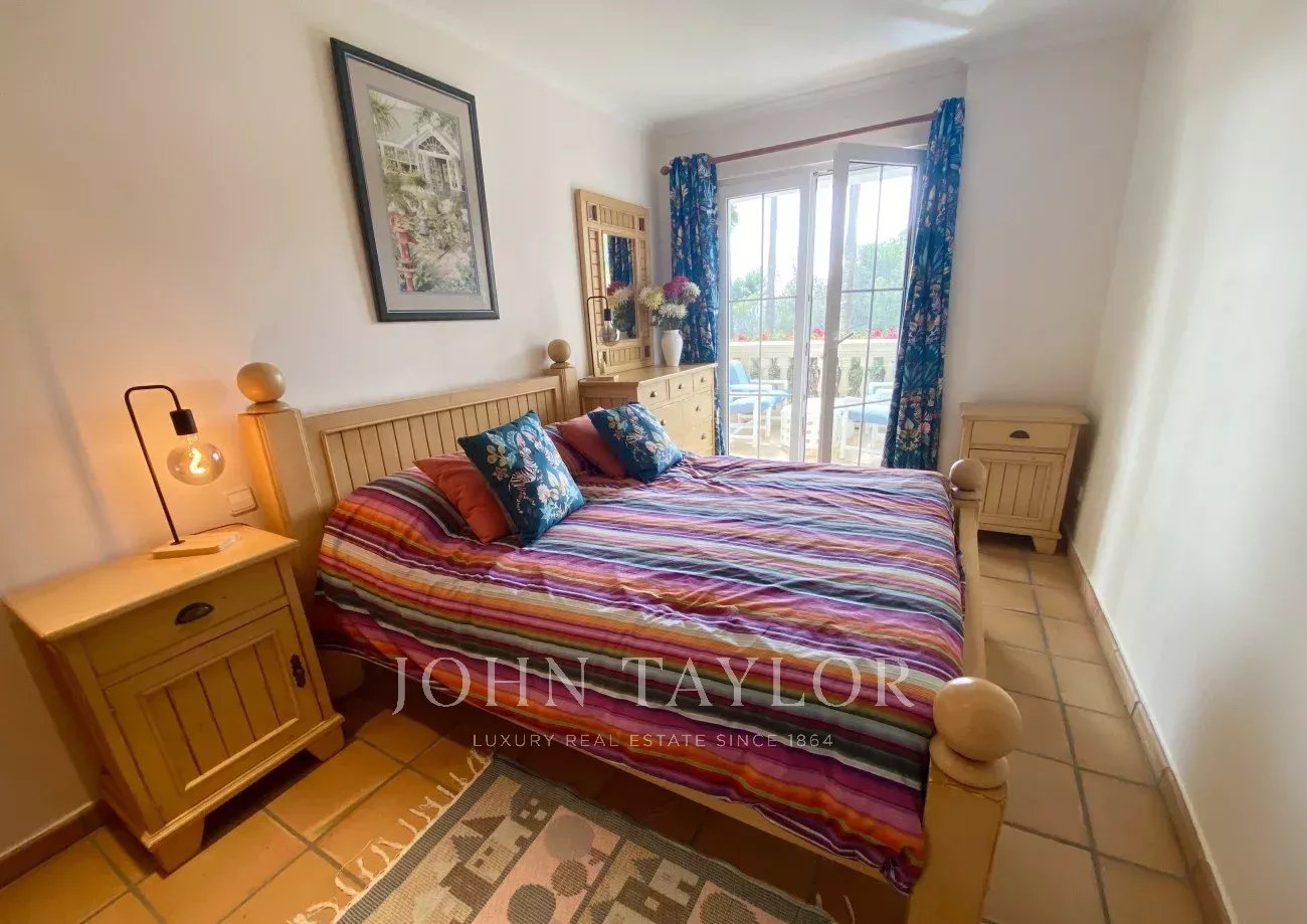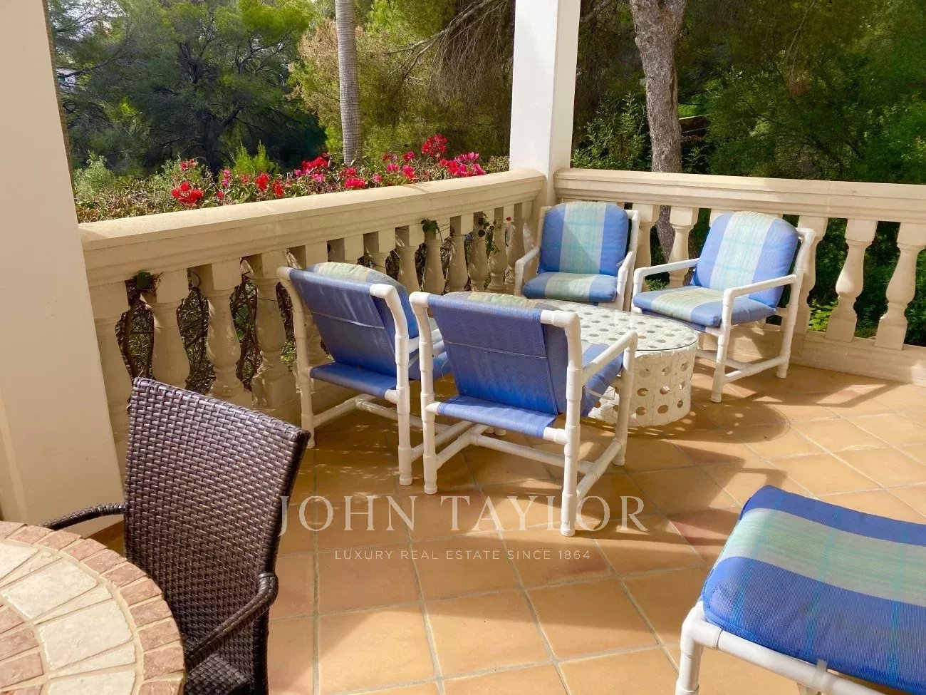 Эта элегантная квартира, расположенная в престижном анклаве Порталс Нус, предлагает безупречное сочетание изысканности, комфорта и приватности. Просторная гостиная с уютным камином гармонично выходит на частную террасу с панорамным видом на пышные сады и бассейн, создавая безмятежную и эксклюзивную обстановку. Современная кухня, оснащенная высококлассной техникой и оформленная в нейтральных тонах, дополнена практичной отдельной прачечной. Очаровательная комната для завтрака добавляет уютный и функциональный штрих, имея прямой доступ как к гостиной, так и к кухне. Планировка дома включает две просторные спальни с двуспальными кроватями и одну спальню с односпальной кроватью. Главная спальня, залитая естественным светом, имеет прямой выход на солнечную террасу на южной стороне и элегантную ванную комнату. Вторая ванная комната, оформленная с использованием высококачественных отделочных материалов, завершает внутреннюю планировку этой исключительной собственности. Эта квартира предназначена для отдыха на свежем воздухе и имеет просторную частную террасу, идеально подходящую для отдыха и проведения незабываемых моментов в атмосфере абсолютного спокойствия. На территории комплекса расположен великолепный бассейн, окруженный террасами, зонтиками и садовыми зонами, что создает оазис спокойствия в одном из самых популярных мест на Майорке. Кроме того, в собственность входит частное парковочное место в подземном гараже, что обеспечивает дополнительное удобство и безопасность. Уникальная возможность для тех, кто ищет эксклюзивность, уединение и непревзойденное местоположение в самом сердце Порталс Нус.