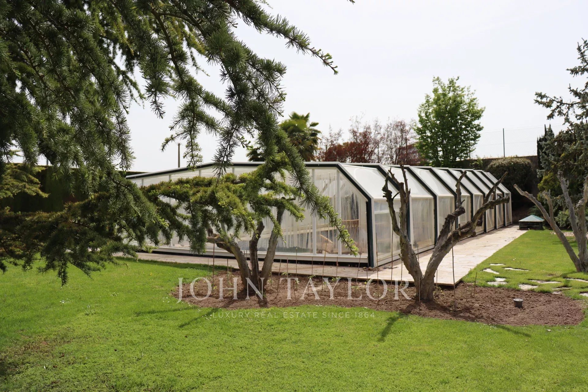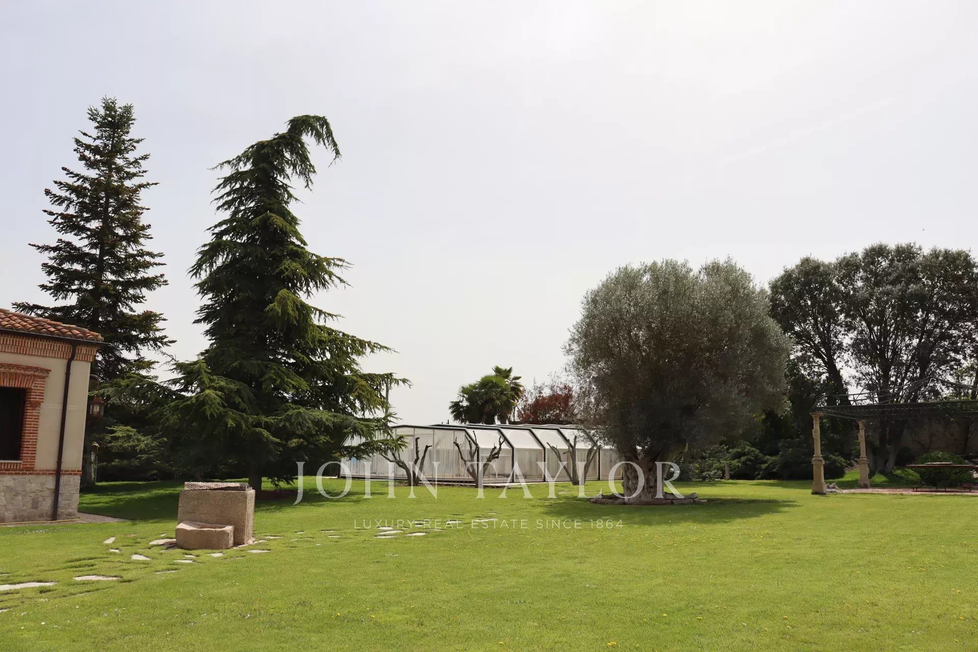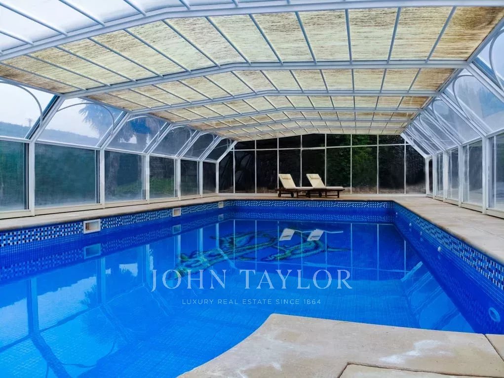 Крытый гараж на два автомобиля (возможность расширения), крытый открытый бассейн и корт для большого тенниса.