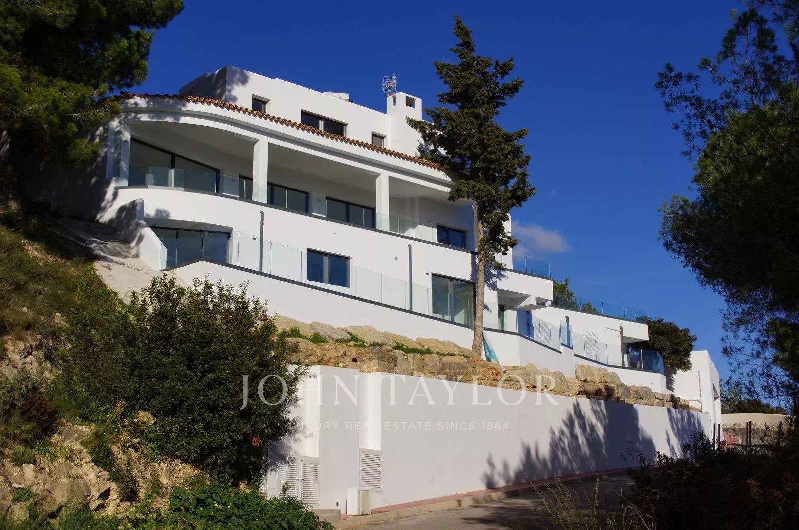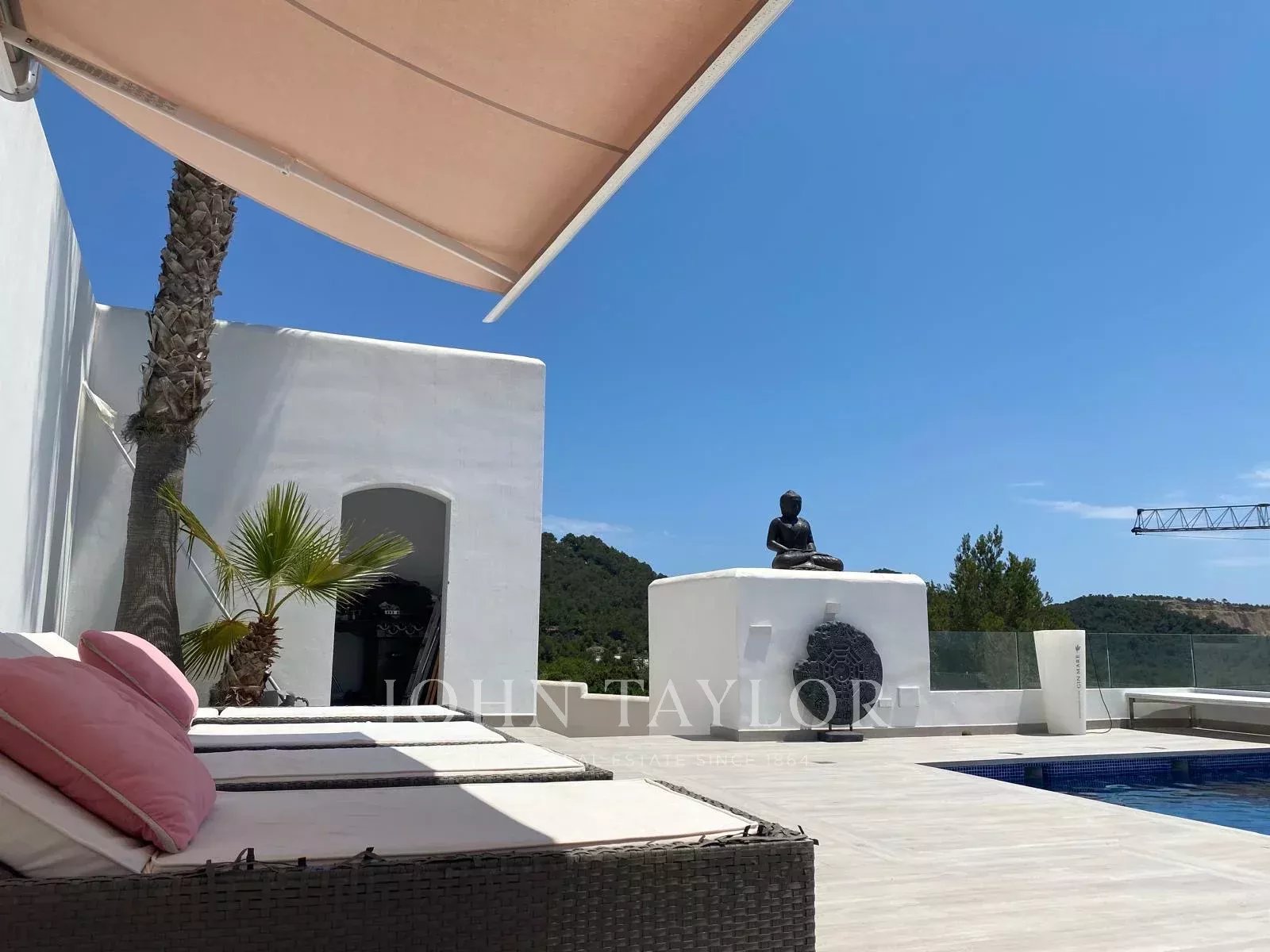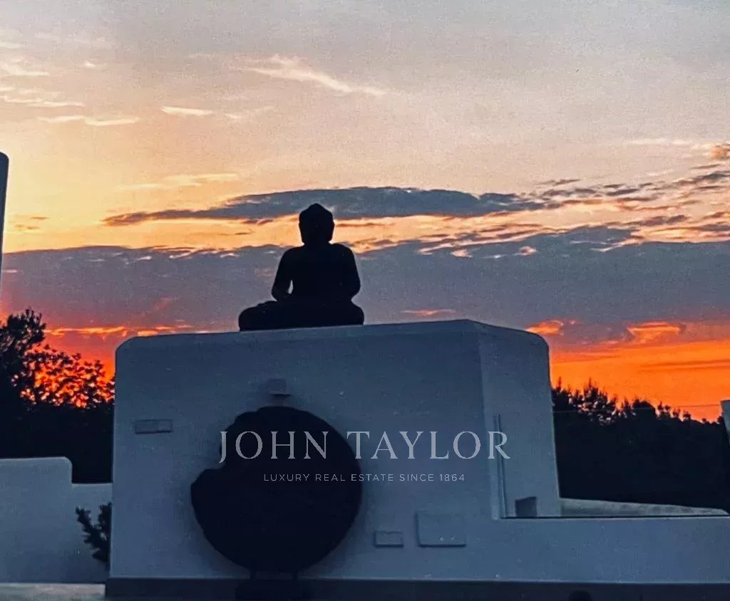 Эта независимая вилла расположена в эксклюзивном закрытом комплексе Кан Фурнет, одном из самых престижных жилых районов Ибицы. Вилла находится на возвышенности в конце тихого тупика, обеспечивая приватность и панорамные виды на остров, включая Форментеру и окружающую природу.