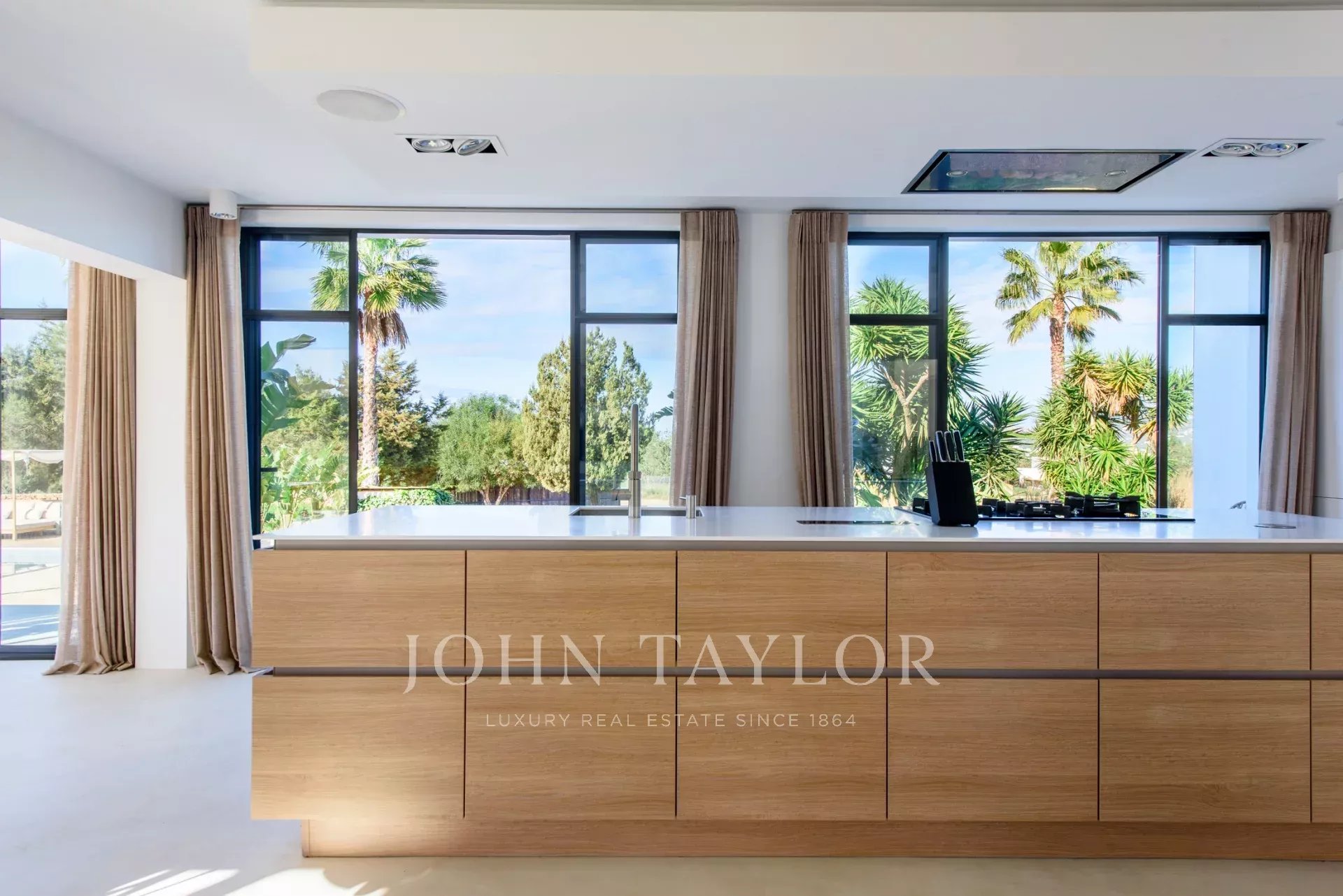Мы предлагаем уникальную возможность приобрести великолепную современную виллу на престижном западном побережье Ибицы, рядом с культовой Кала Комте. Эта недвижимость выделяется не только своим авангардным дизайном, но и ценнейшей постоянной туристической лицензией, предлагающей огромный инвестиционный потенциал. В привилегированном месте, всего в 20 минутах от аэропорта Ибицы и в 10 минутах от Сан-Хосепа, до потрясающих пляжей Кала Комте и Кала Басса можно доехать за 10 минут.