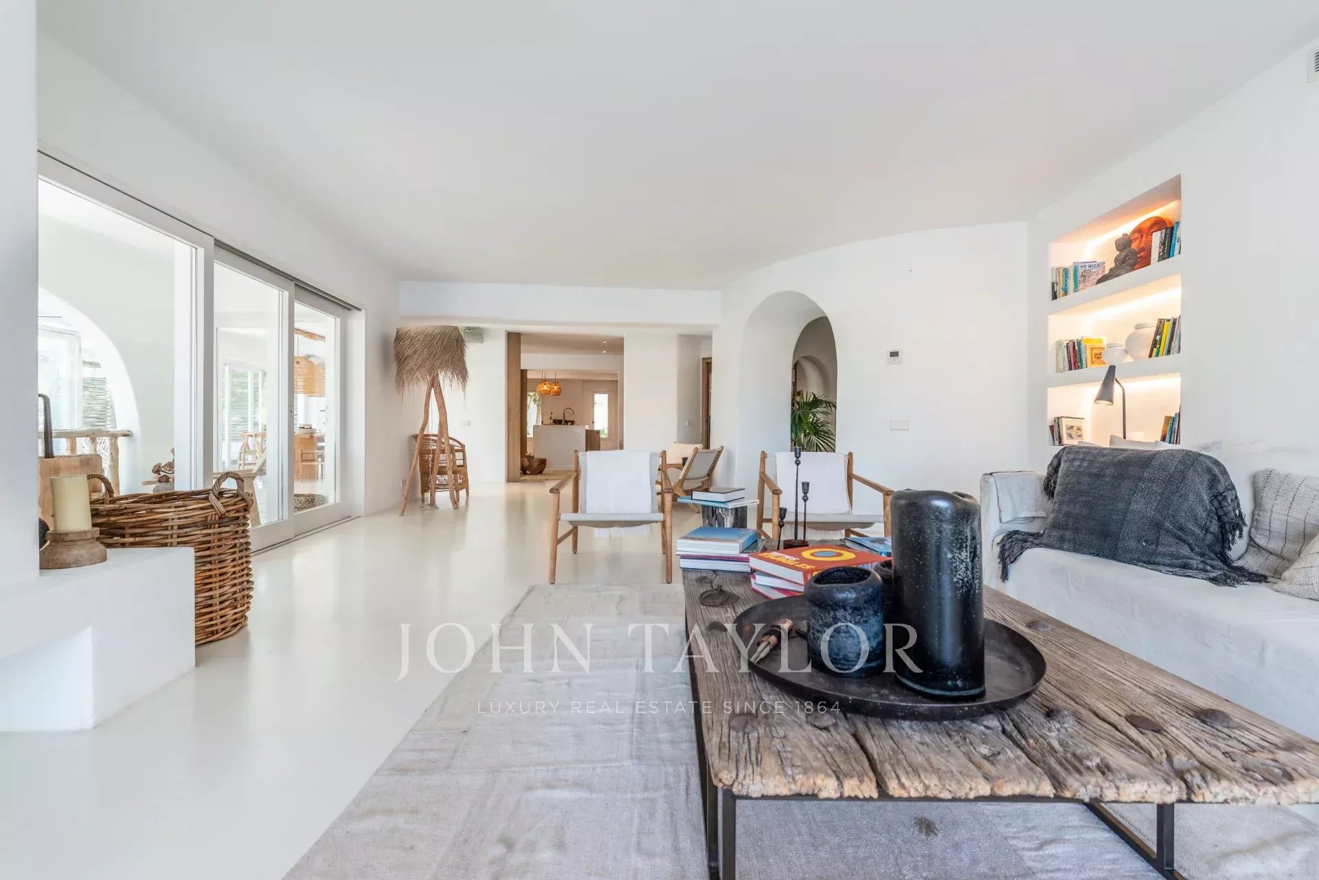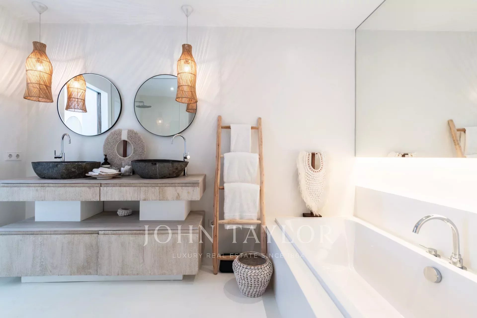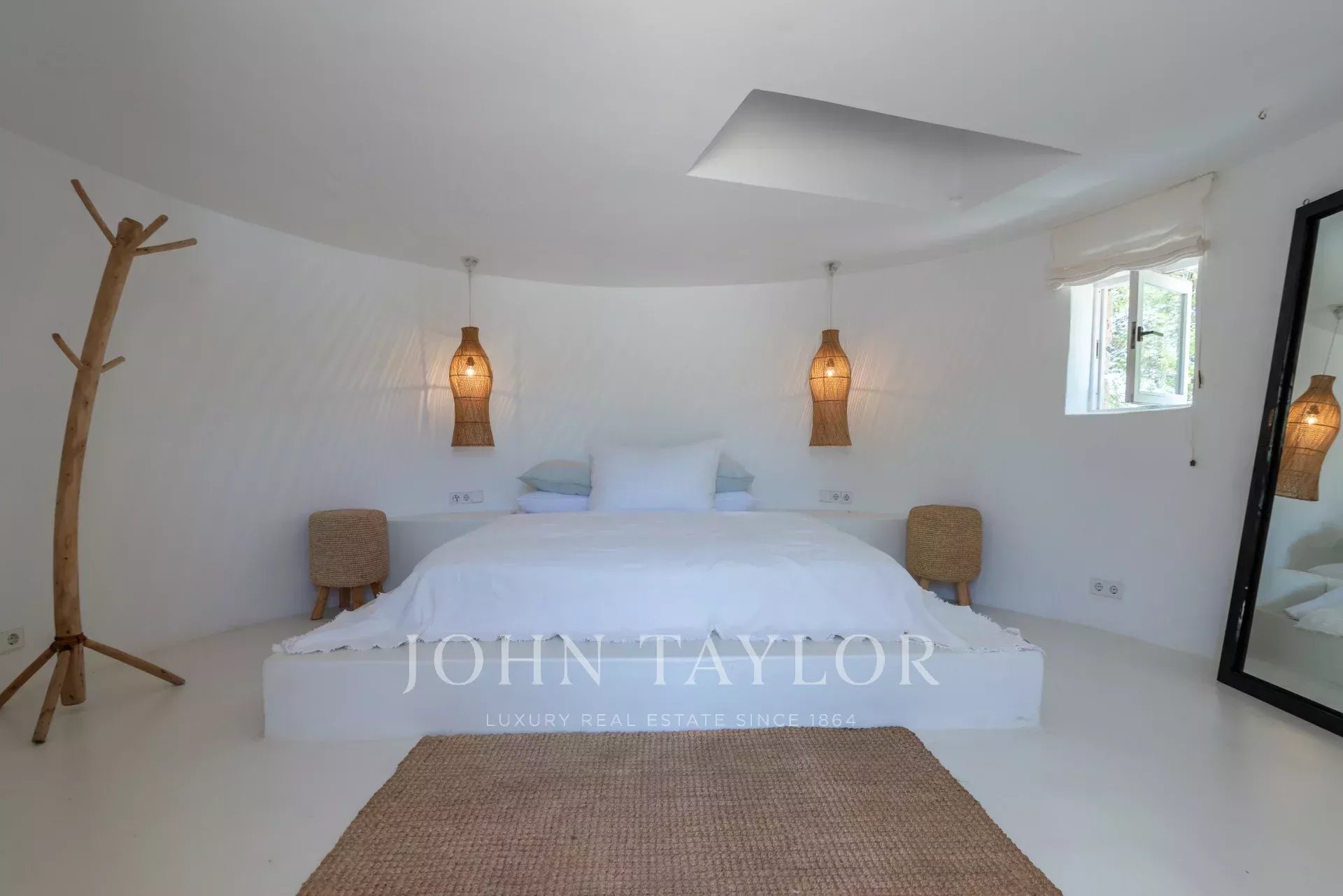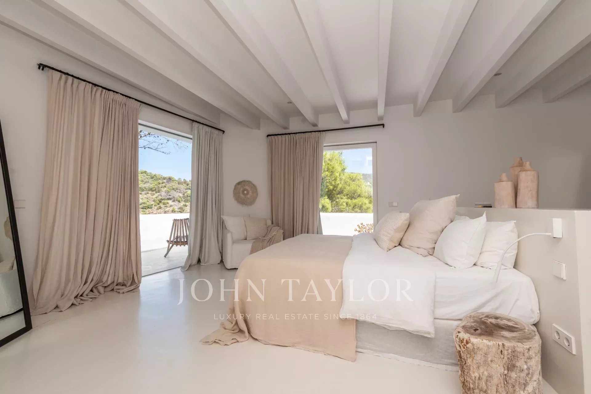 Эта уникальная вилла сочетает в себе традиционный средиземноморский шарм с современными удобствами и роскошью, предлагая неповторимый стиль жизни на западном побережье Ибицы.
