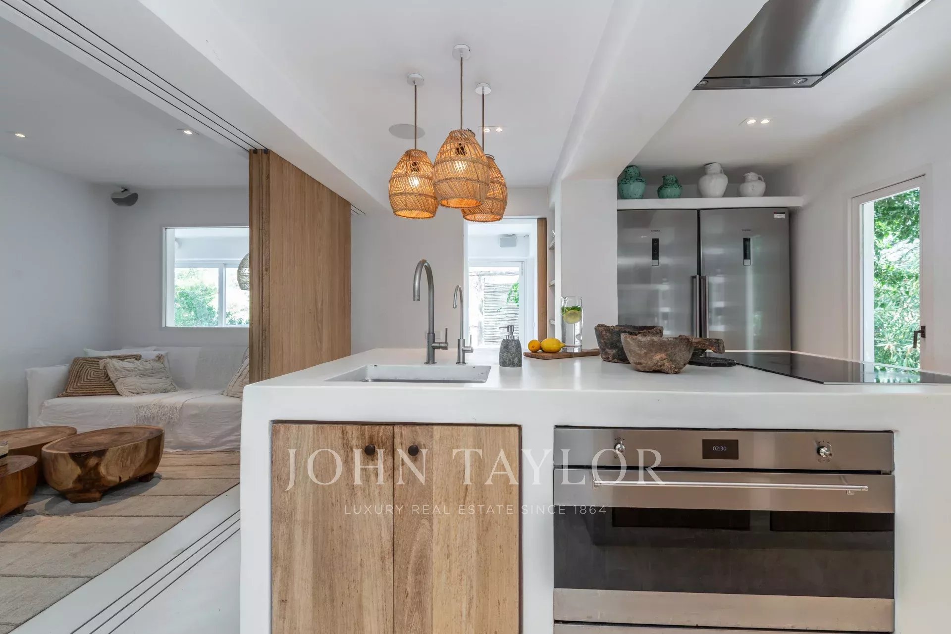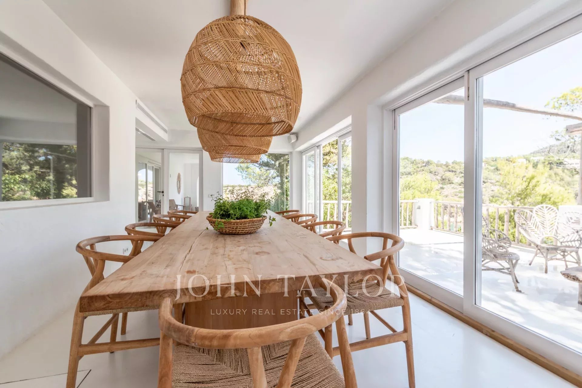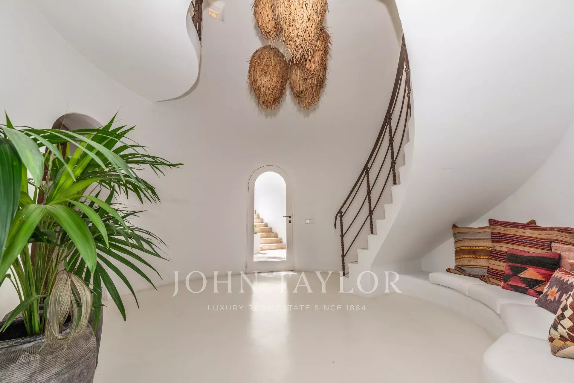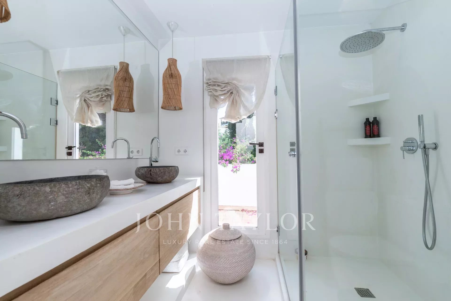 Эта уникальная вилла сочетает в себе традиционный средиземноморский шарм с современными удобствами и роскошью, предлагая неповторимый стиль жизни на западном побережье Ибицы.