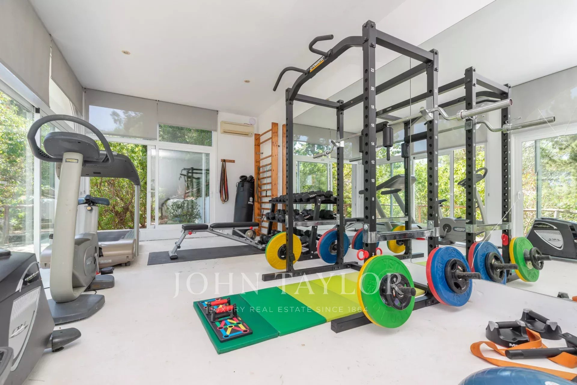 Также в собственности есть просторный гараж площадью 162 м² на шесть автомобилей, а также современный фитнес-зал с потрясающим видом на море и оборудованием Technogym. Дополнительные удобства включают кондиционеры, электрическое отопление, высокоскоростной интернет, IPTV, звуковую систему SONOS, прачечную и наружное освещение с более чем 350 лампами.