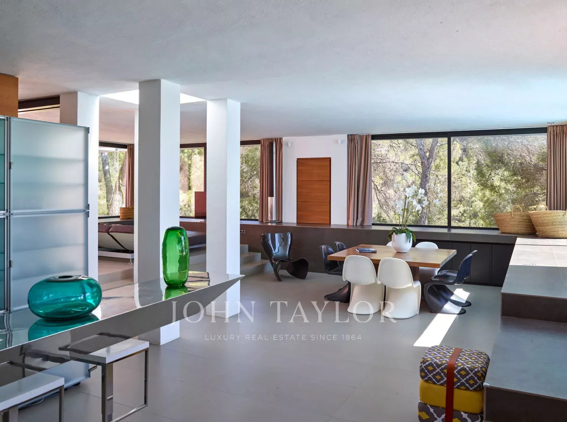 Это впечатляющая современная вилла расположена на восточной стороне Ибицы, рядом с известными пляжами Кала Д'Хорт и Кала Ваделла, окруженная средиземноморской природой и соснами. Вилла находится на тихом и уединённом холме, откуда открываются потрясающие виды на море и закаты, что делает её идеальной для незабываемого отдыха на острове. Всего в нескольких минутах от очаровательной деревни Сан-Хосе, эта недвижимость сочетает в себе элегантность, спокойствие и уникальную природную среду.