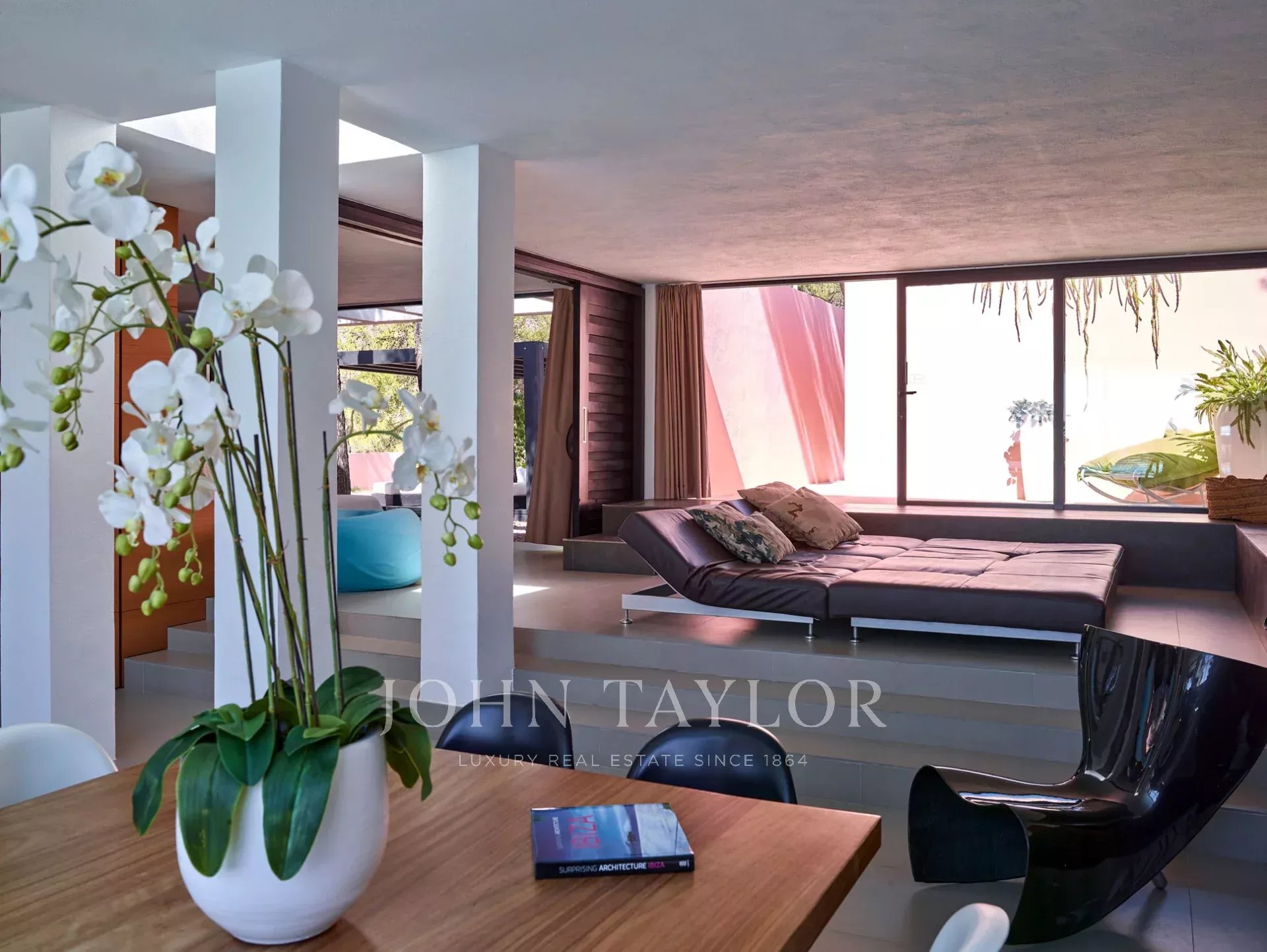 Вилла выполнена в минималистском японском стиле, органично соединяющем внутренние и внешние пространства. Большие стеклянные окна создают постоянную связь между домом и окружающей природой, а бассейн и террасы предлагают непревзойденный уровень роскоши. Просторная терраса оборудована диванами и обеденным столом на 10 человек, создавая идеальные условия для отдыха и развлечений на свежем воздухе.