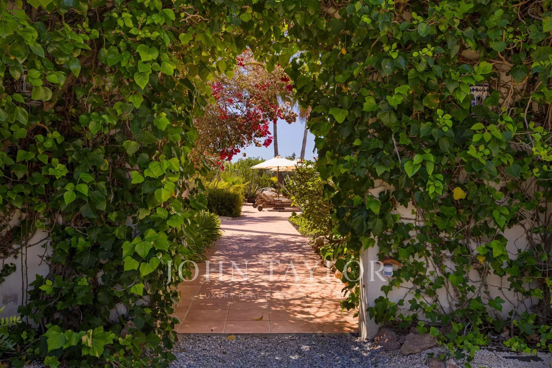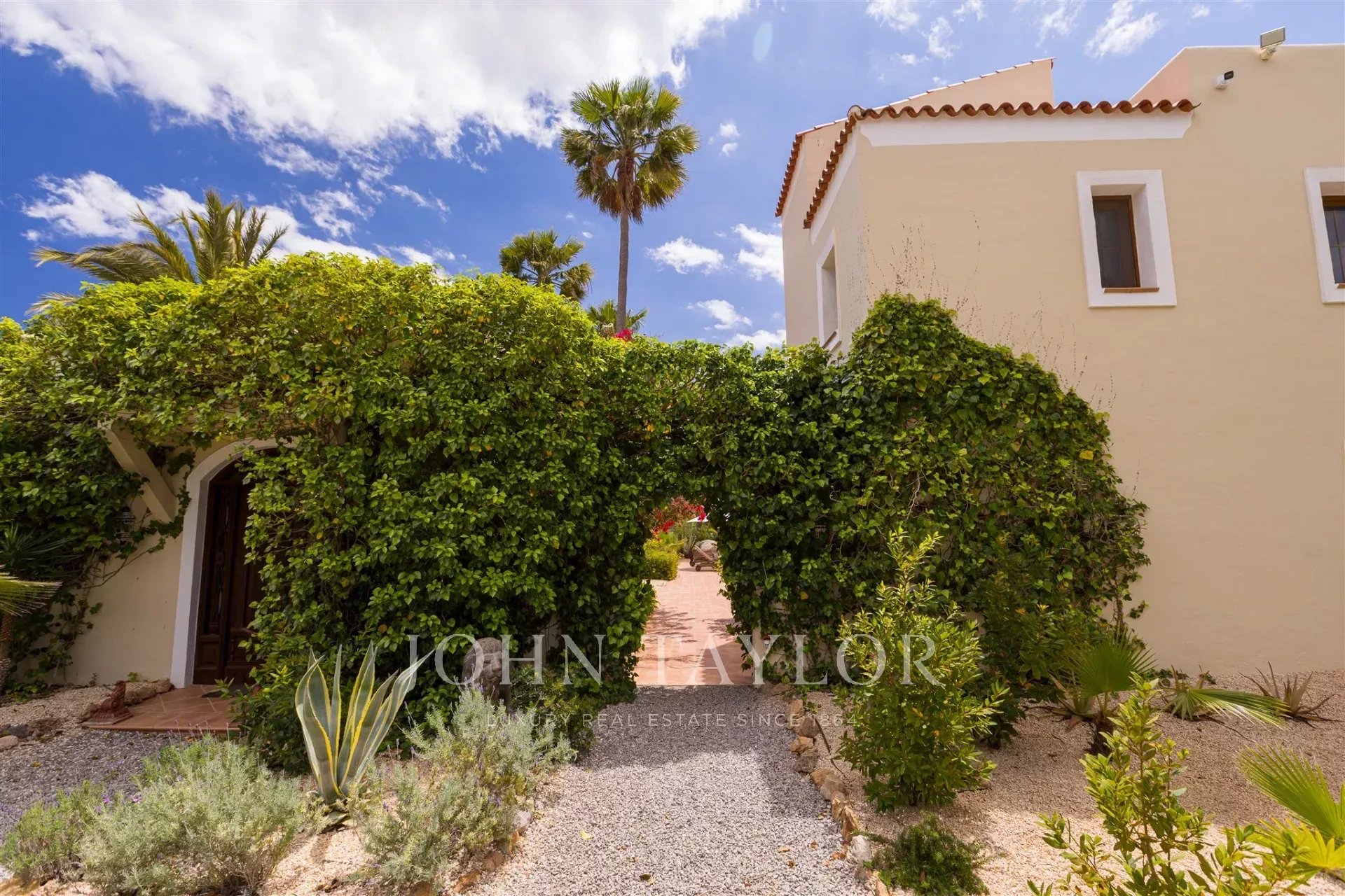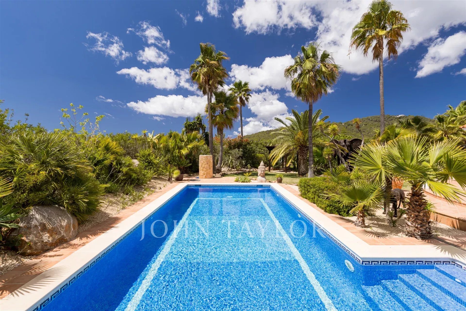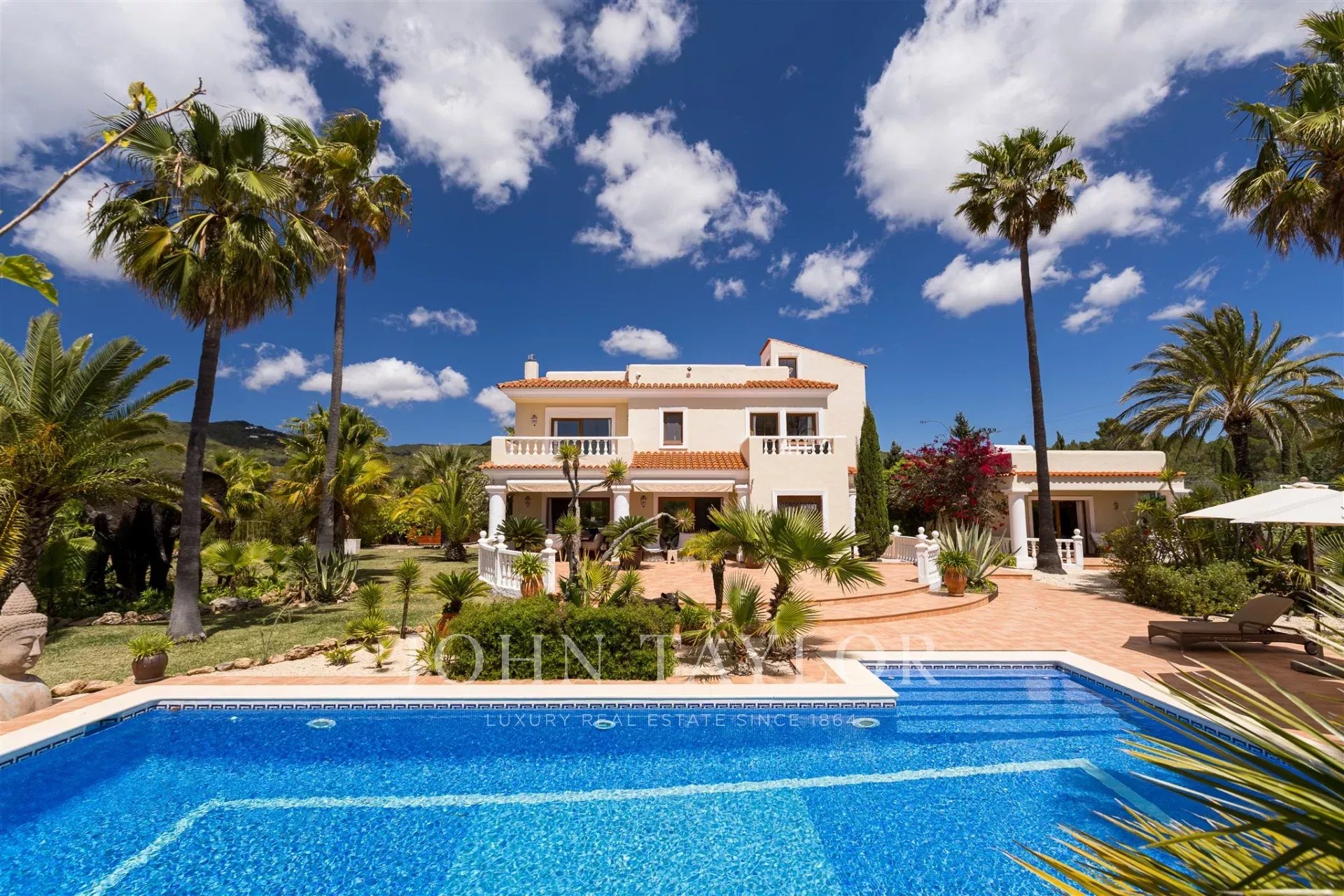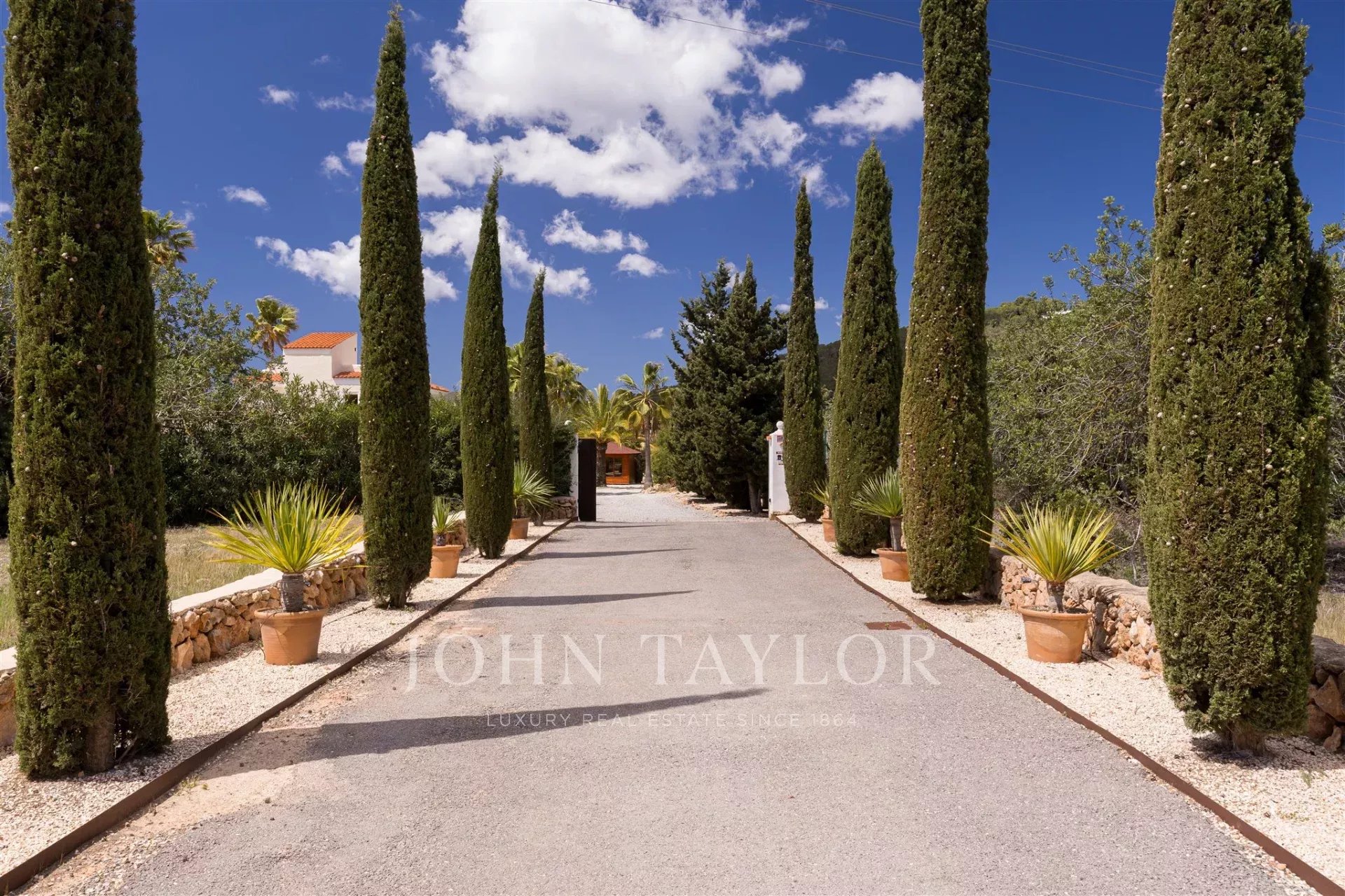 В тихой сельской местности Сан-Хорди находится эта эксклюзивная вилла, предлагающая идеальное убежище для тех, кто ищет роскошь и уединение на Ибице. Расположенная на участке площадью 7 000 м², окруженная зелеными холмами и с видом на Сес Салинас и море, эта недвижимость предоставляет идеальное место для отдыха, оставаясь всего в нескольких минутах от города Ибица и аэропорта.