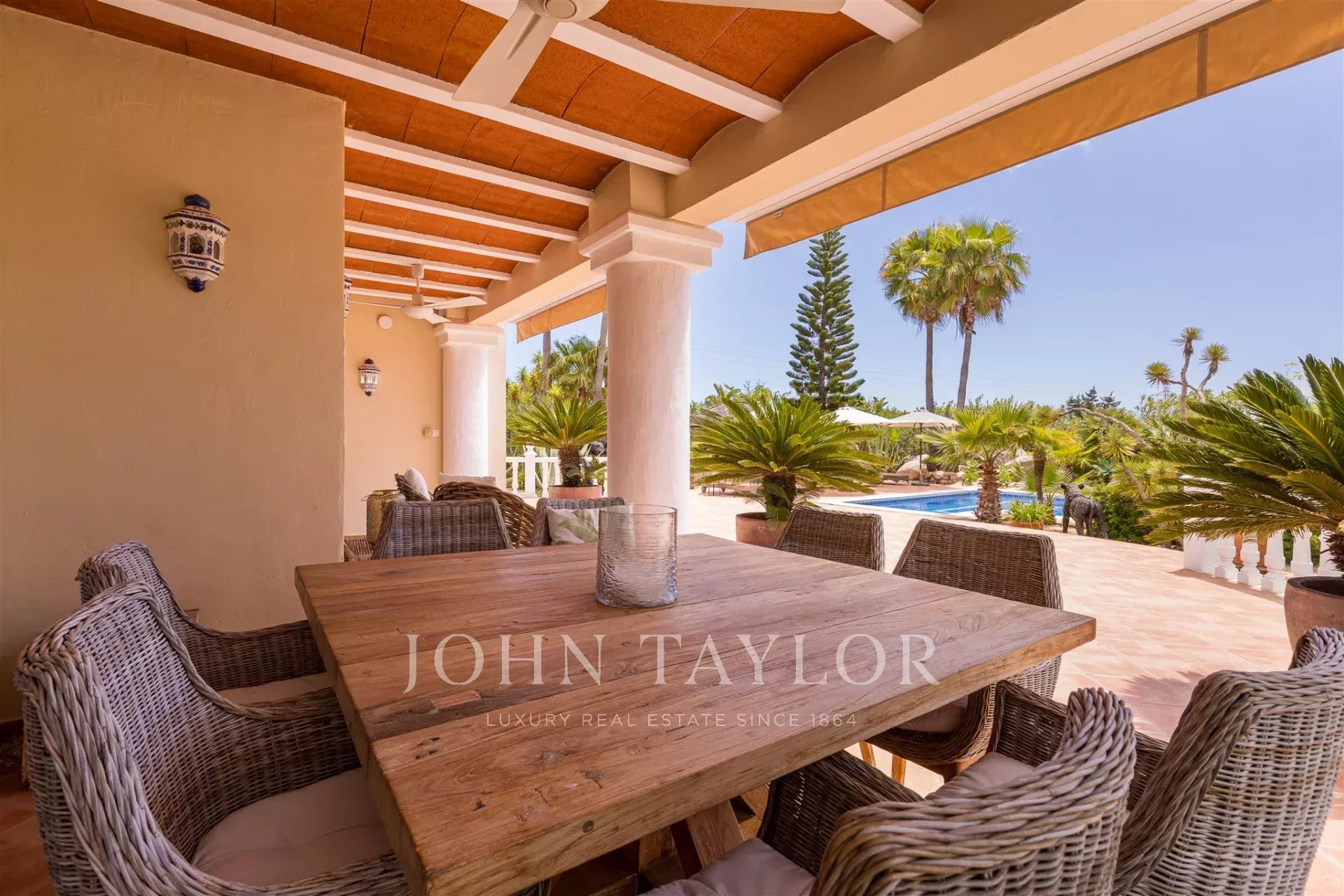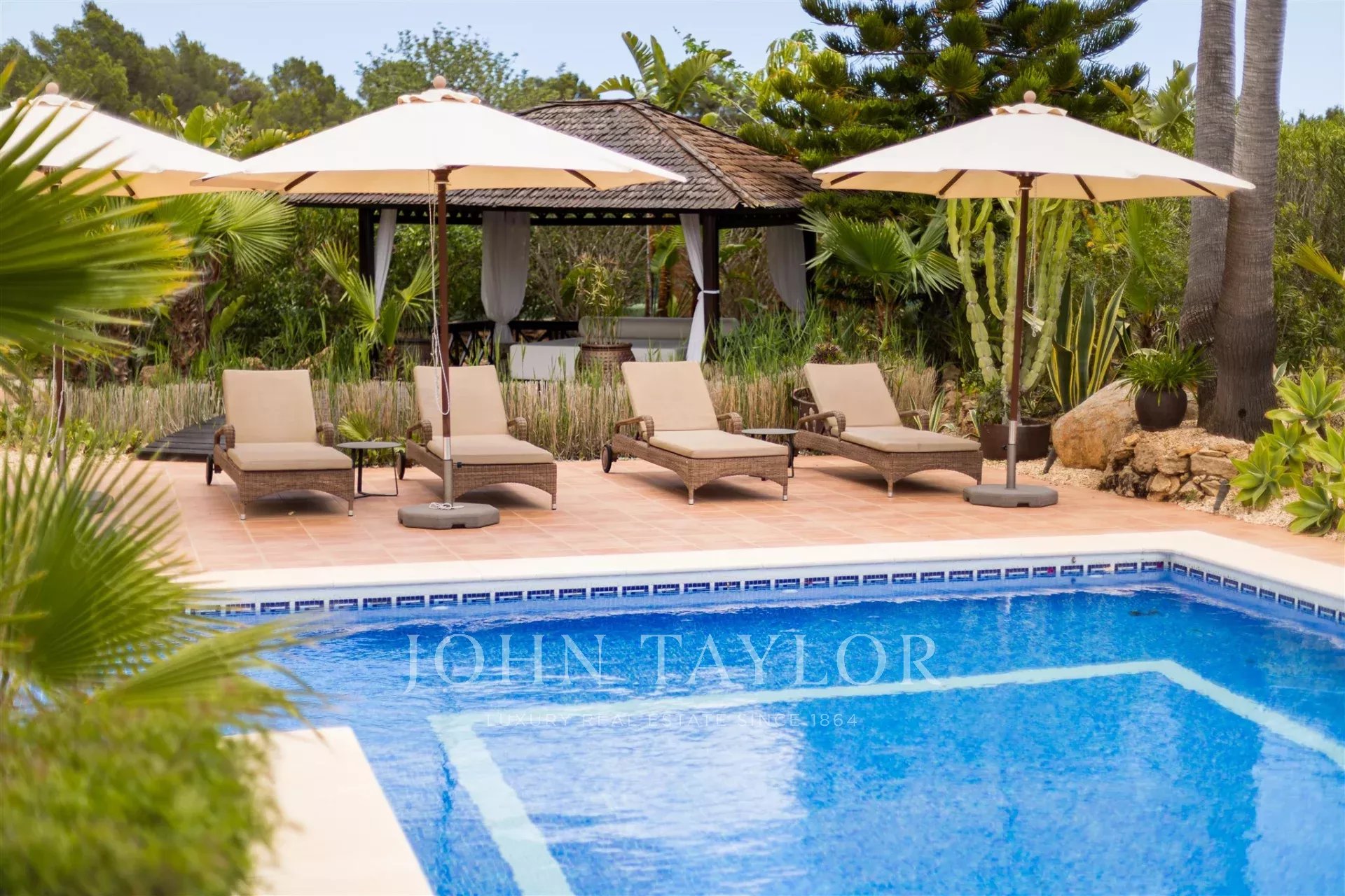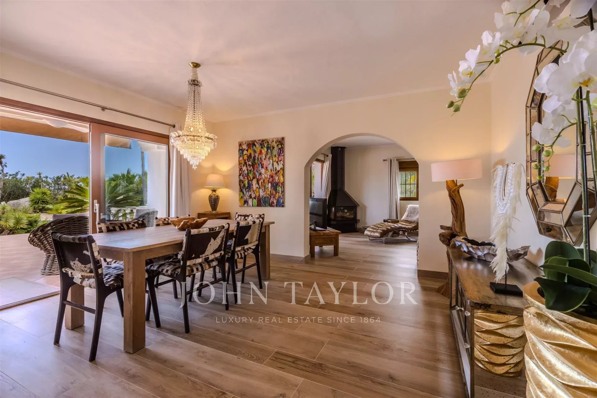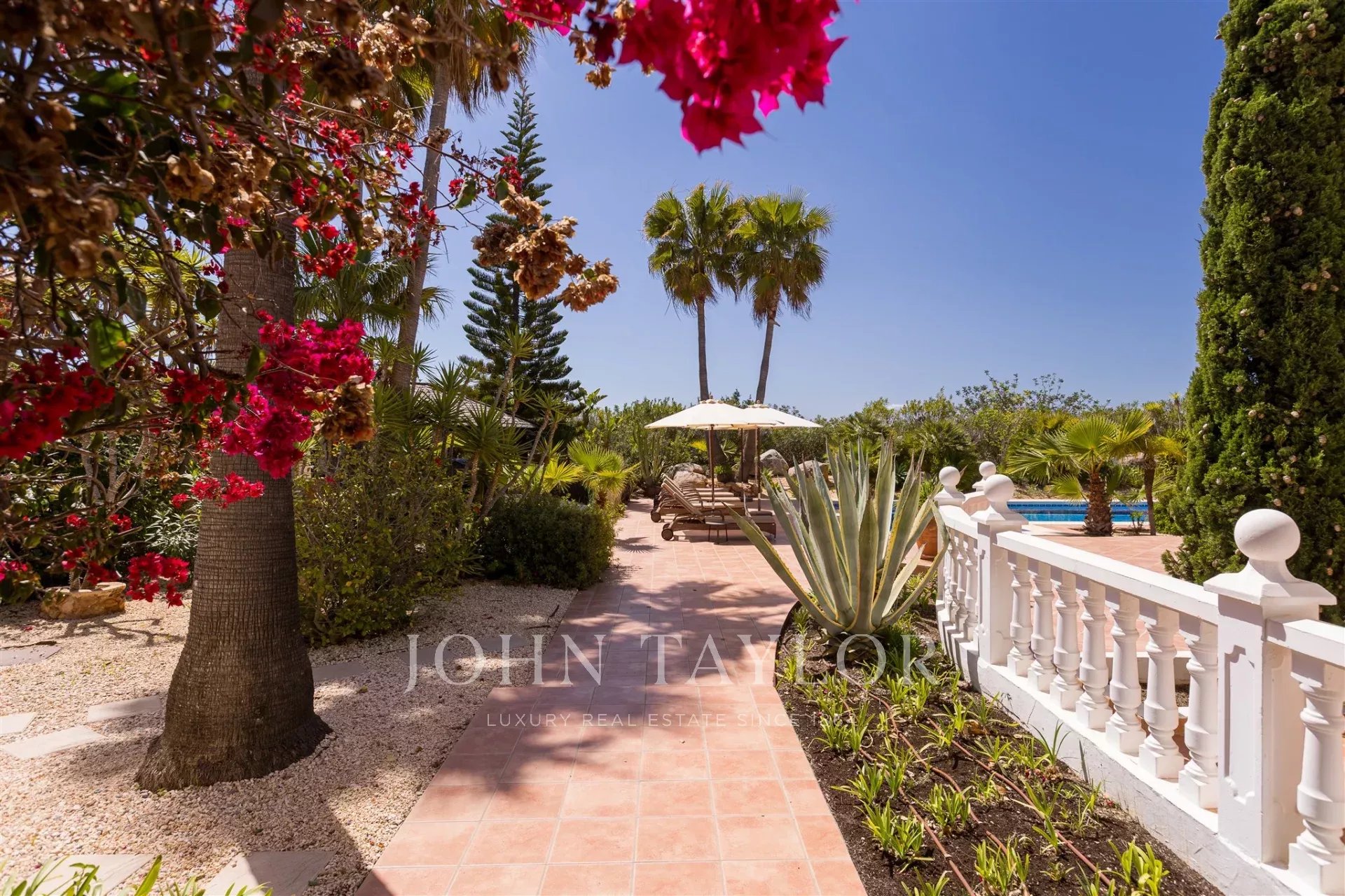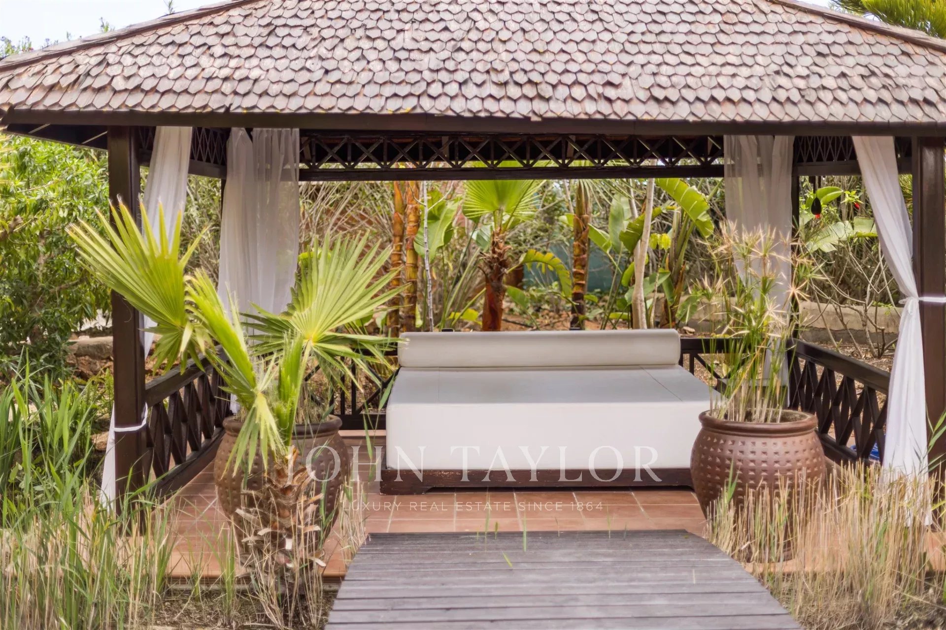 В тихой сельской местности Сан-Хорди находится эта эксклюзивная вилла, предлагающая идеальное убежище для тех, кто ищет роскошь и уединение на Ибице. Расположенная на участке площадью 7 000 м², окруженная зелеными холмами и с видом на Сес Салинас и море, эта недвижимость предоставляет идеальное место для отдыха, оставаясь всего в нескольких минутах от города Ибица и аэропорта.