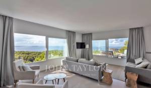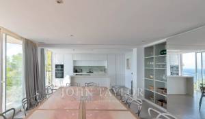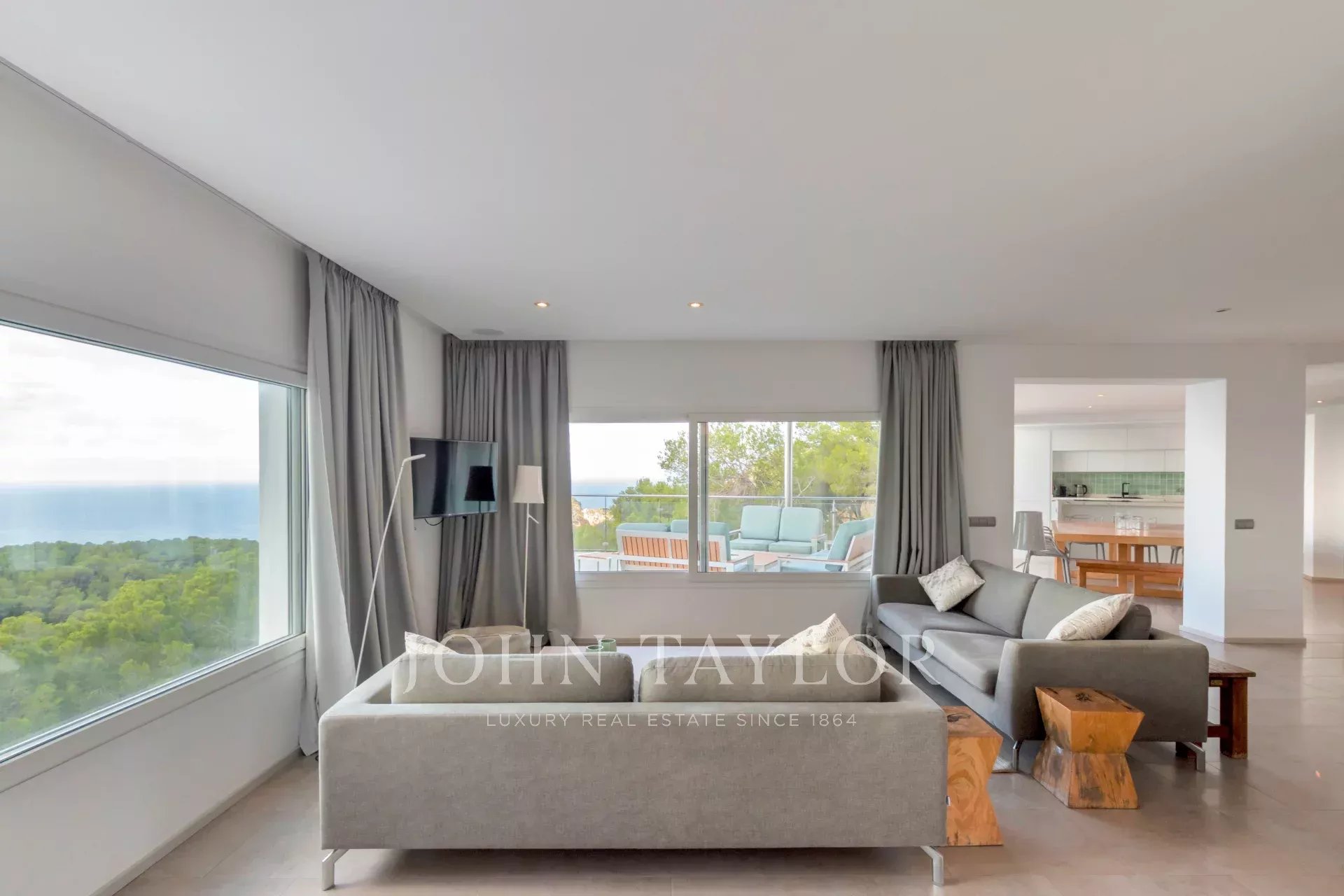 Расположенная на склоне холма, эта современная вилла впечатляет своим захватывающим видом на Средиземное море, который открывается почти из каждой комнаты. При входе вас встречает залитая светом гостиная открытой планировки, плавно переходящая в современную кухню. Большие окна обрамляют захватывающий природный пейзаж, создавая прямую связь с внешним пространством виллы.
