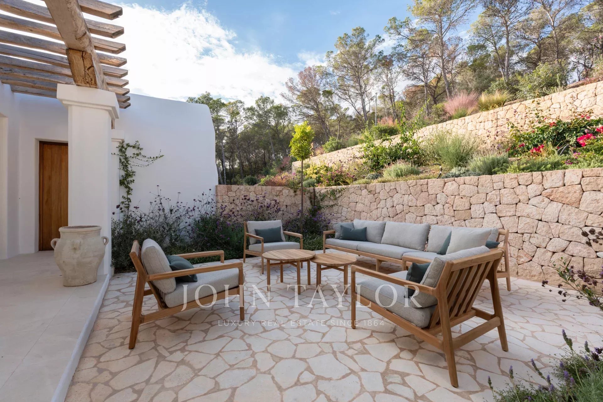 Представьте себе дни, проведенные в лучах теплого ибисанского солнца у частного бассейна площадью 70 кв. м, окруженного пышными, тщательно ухоженными садами. Это убежище полностью меблировано, а предметы обстановки сочетают в себе современную элегантность и средиземноморскую сущность.