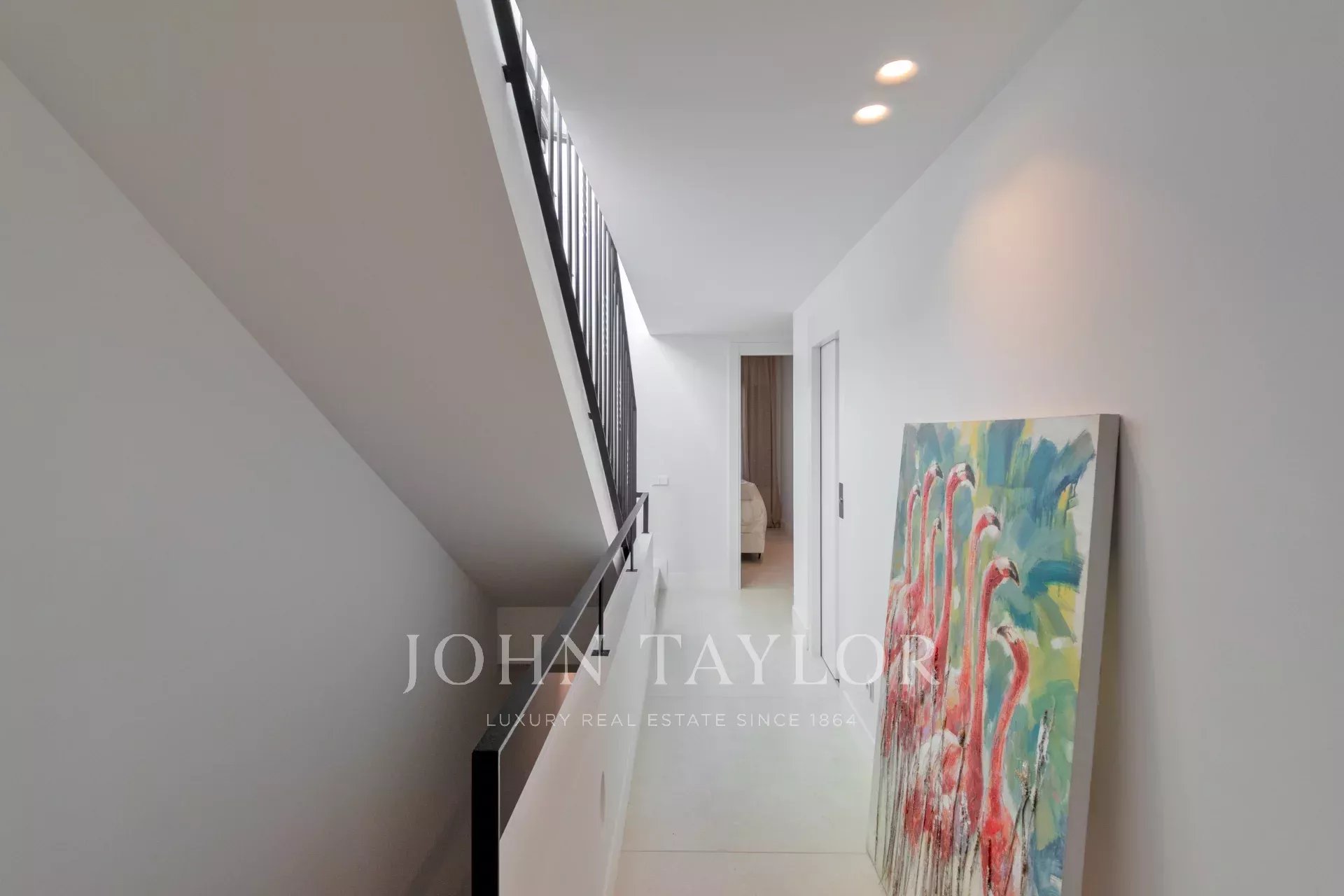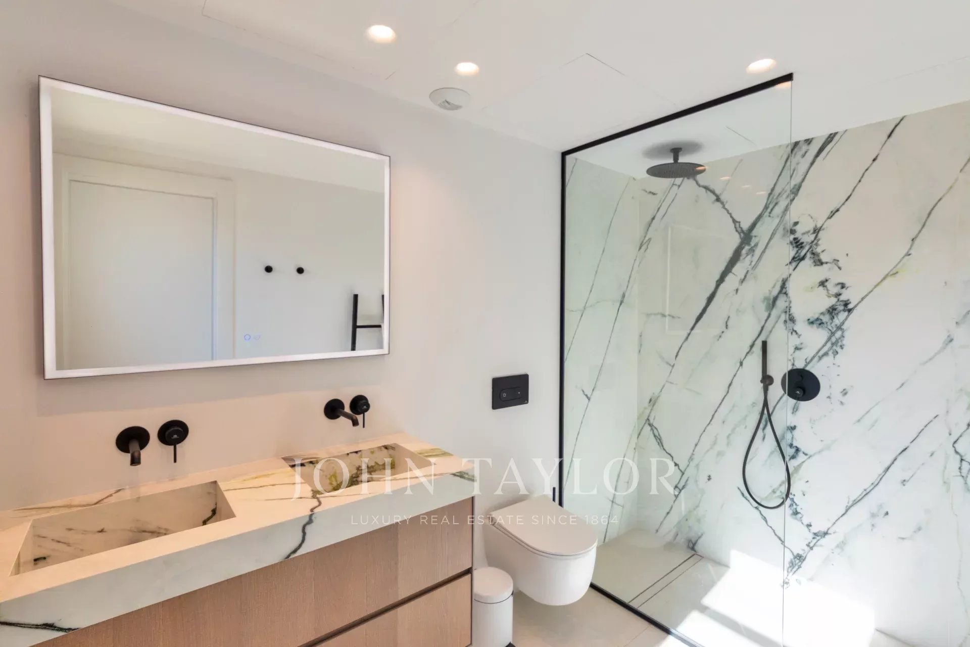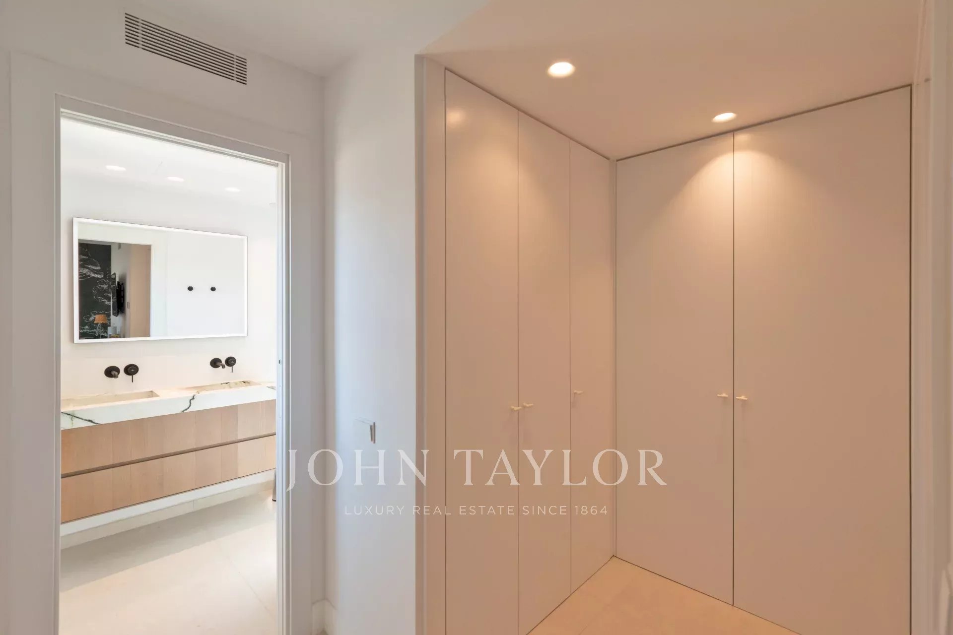 Площадь недвижимости составляет 240 м² (приблизительно 197 м² полезной площади) и включает три спальни, две ванные комнаты и гостевой туалет, выполненные из материалов высокого качества с утончёнными деталями.