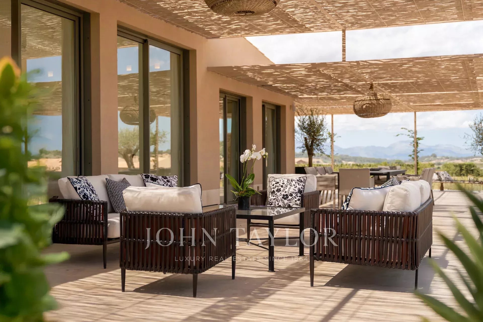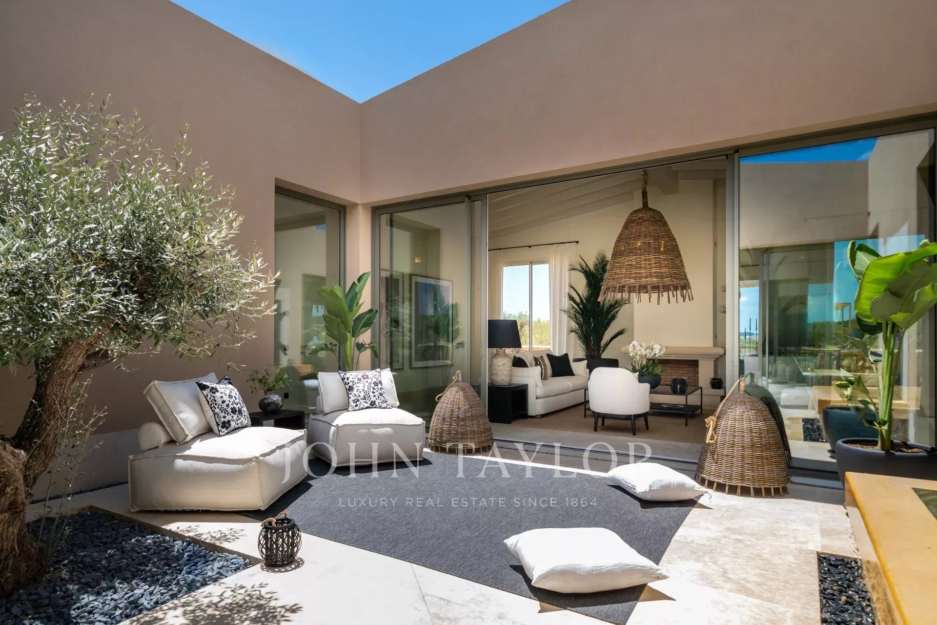 Прибыв на территорию поместья, вы проезжаете по длинной частной 300-метровой подъездной дорожке, обсаженной оливковыми деревьями, и попадаете к главному входу. Вас окружают сельскохозяйственные угодья, виноградники, пшеничные поля, оливковые и миндальные рощи. Красота этого места, идиллические проселочные дороги и скоростные автомагистрали, гарантируют, что вы находитесь не более чем в двадцати пяти минутах езды от Пальмы, аэропорта, лучших пляжей, магазинов и лучших международных школ.