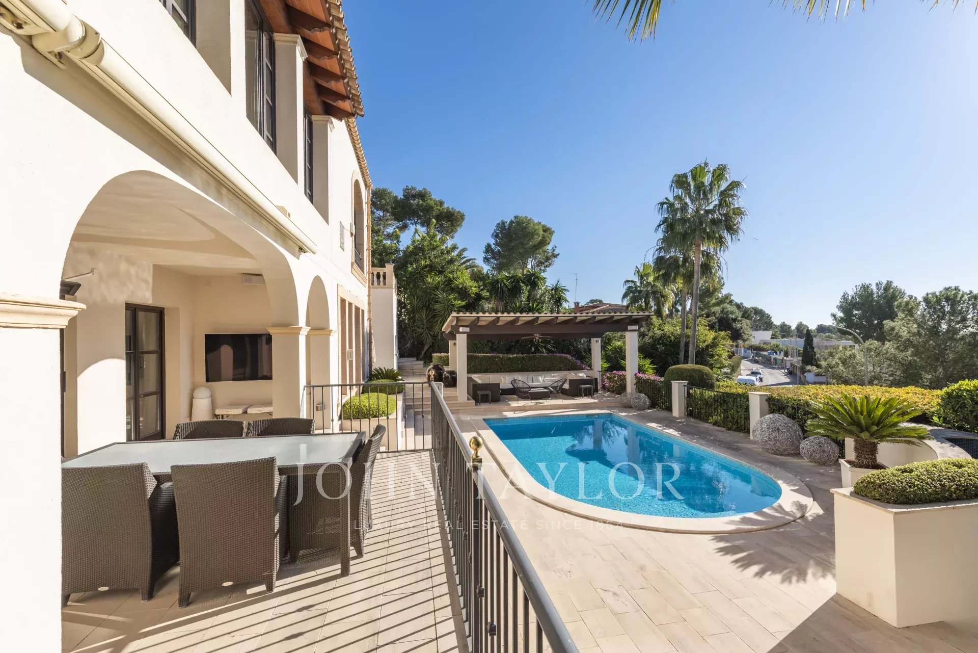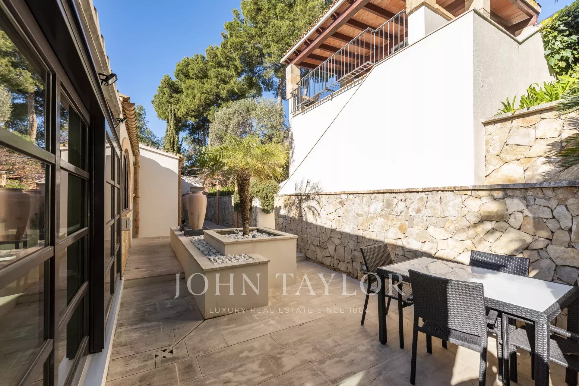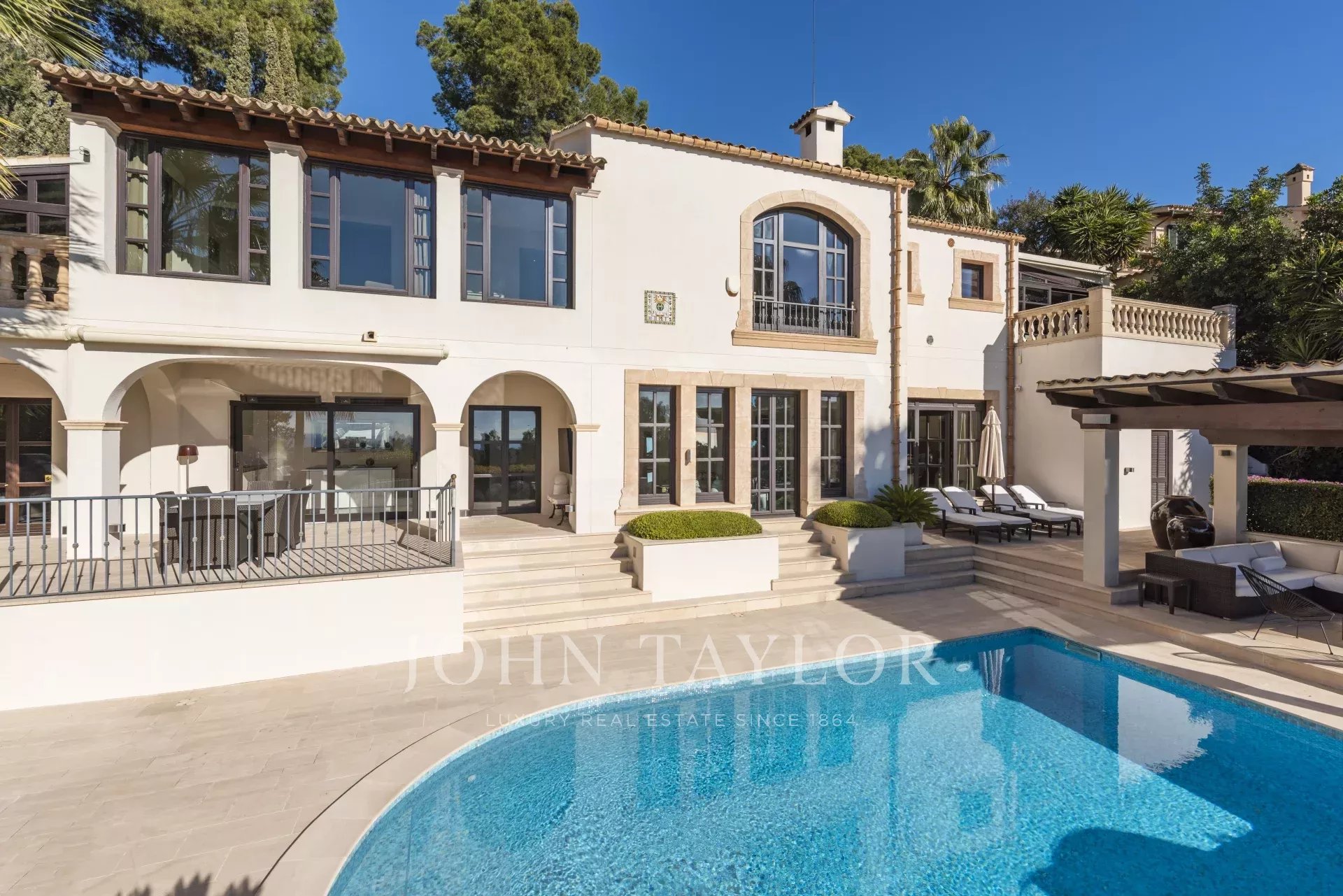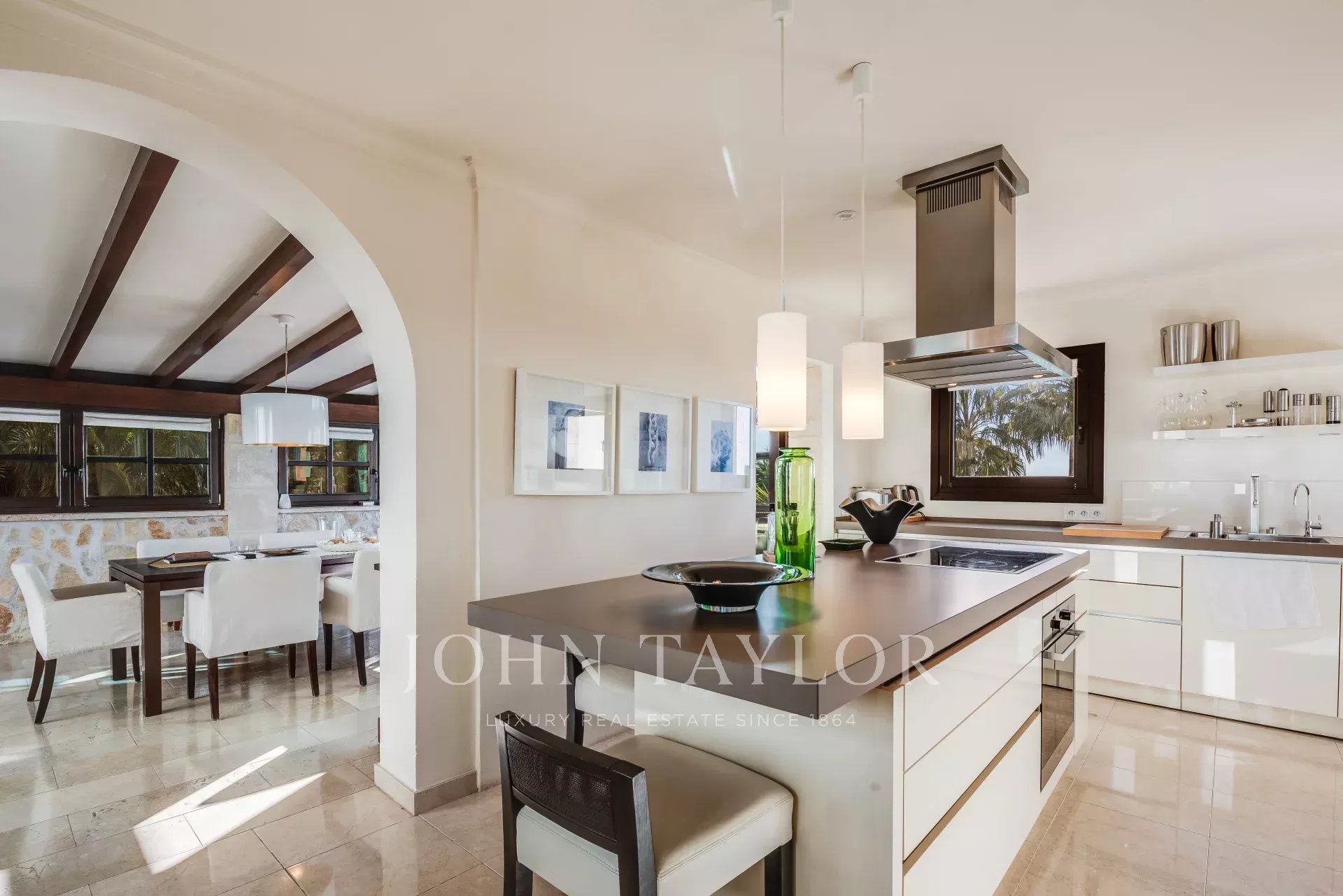 Предлагаем вашему вниманию эту впечатляющую средиземноморскую виллу, расположенную в непосредственной близости от поля для гольфа Bendinat. Она имеет 350 м² жилой площади, распределенной на двух уровнях. На верхнем этаже находится главная кухня со столовой, гостиная с камином, две спальни с двуспальными кроватями, две ванные комнаты и гардеробная. А на первом этаже - вторая, более просторная гостиная, еще одна полностью оборудованная кухня и еще две спальни с двумя ванными комнатами. Отсюда из всех комнат есть прямой выход к прекрасному открытому бассейну, где можно расслабиться и насладиться солнечными ваннами на просторной площадке с шезлонгами и диванами. Этот дом в средиземноморском стиле идеально подходит для тех, кто ищет уединения, спокойствия, прекрасного вида на море и жизни в очень престижном районе, недалеко от красивых портов и всех удобств. Не упустите возможность приехать и посмотреть этот дом. Свяжитесь с нами как можно скорее.