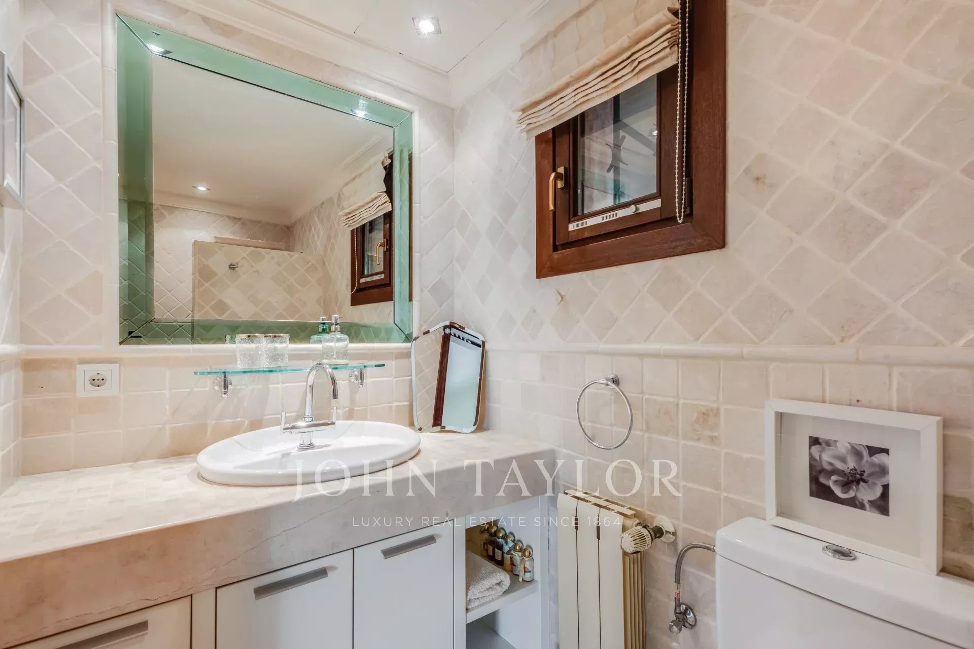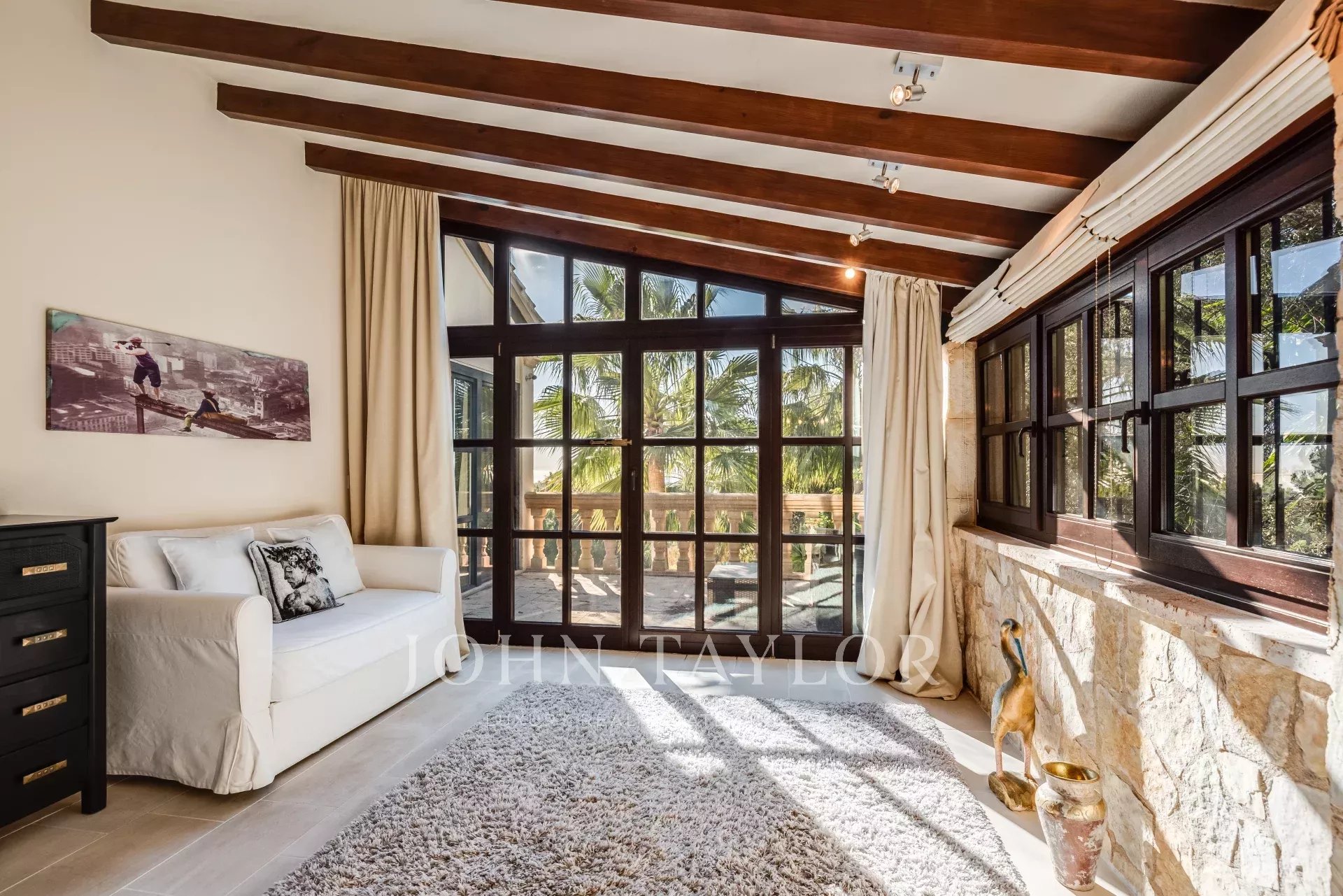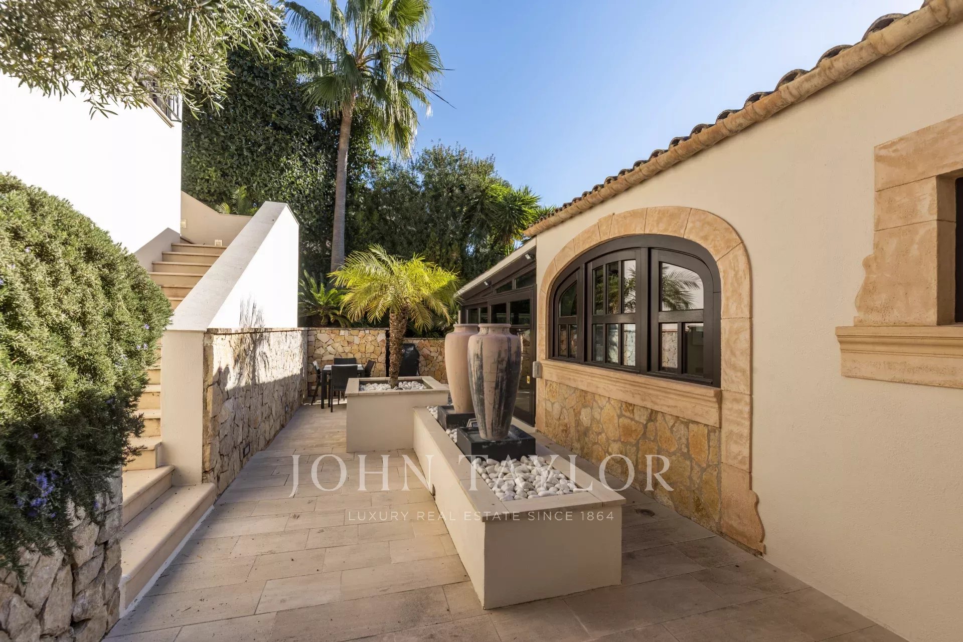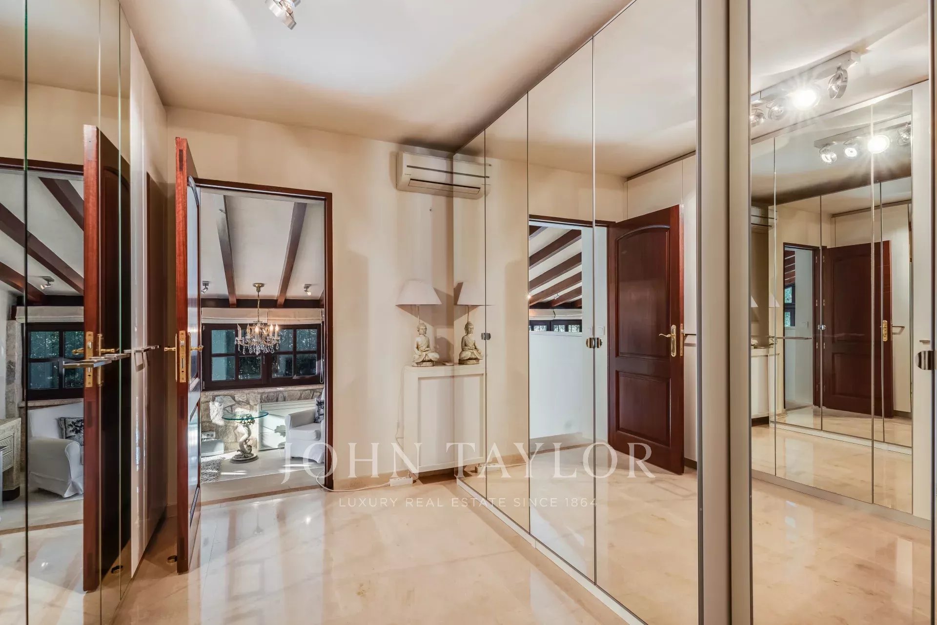 Предлагаем вашему вниманию эту впечатляющую средиземноморскую виллу, расположенную в непосредственной близости от поля для гольфа Bendinat. Она имеет 350 м² жилой площади, распределенной на двух уровнях. На верхнем этаже находится главная кухня со столовой, гостиная с камином, две спальни с двуспальными кроватями, две ванные комнаты и гардеробная. А на первом этаже - вторая, более просторная гостиная, еще одна полностью оборудованная кухня и еще две спальни с двумя ванными комнатами. Отсюда из всех комнат есть прямой выход к прекрасному открытому бассейну, где можно расслабиться и насладиться солнечными ваннами на просторной площадке с шезлонгами и диванами. Этот дом в средиземноморском стиле идеально подходит для тех, кто ищет уединения, спокойствия, прекрасного вида на море и жизни в очень престижном районе, недалеко от красивых портов и всех удобств. Не упустите возможность приехать и посмотреть этот дом. Свяжитесь с нами как можно скорее.