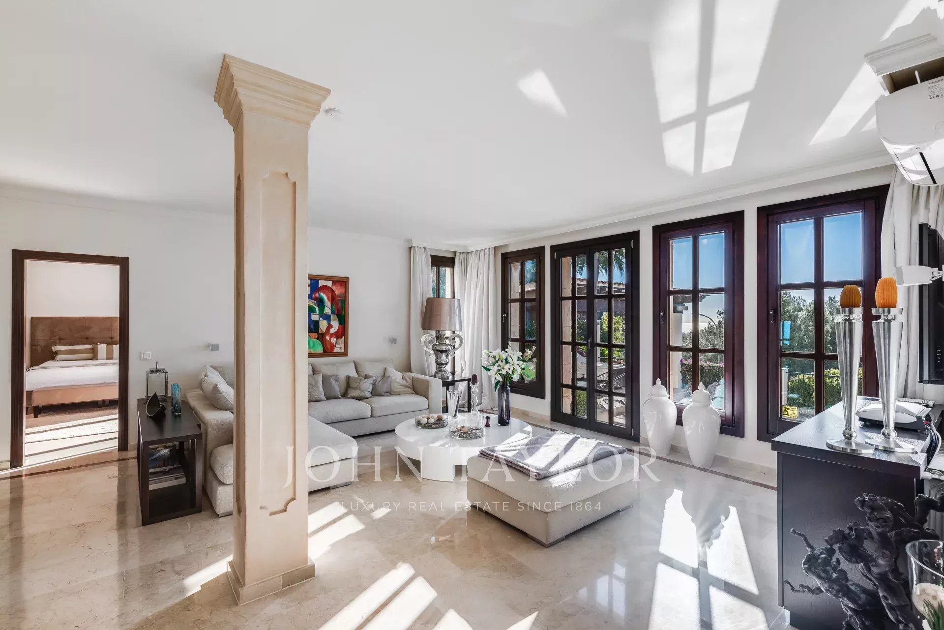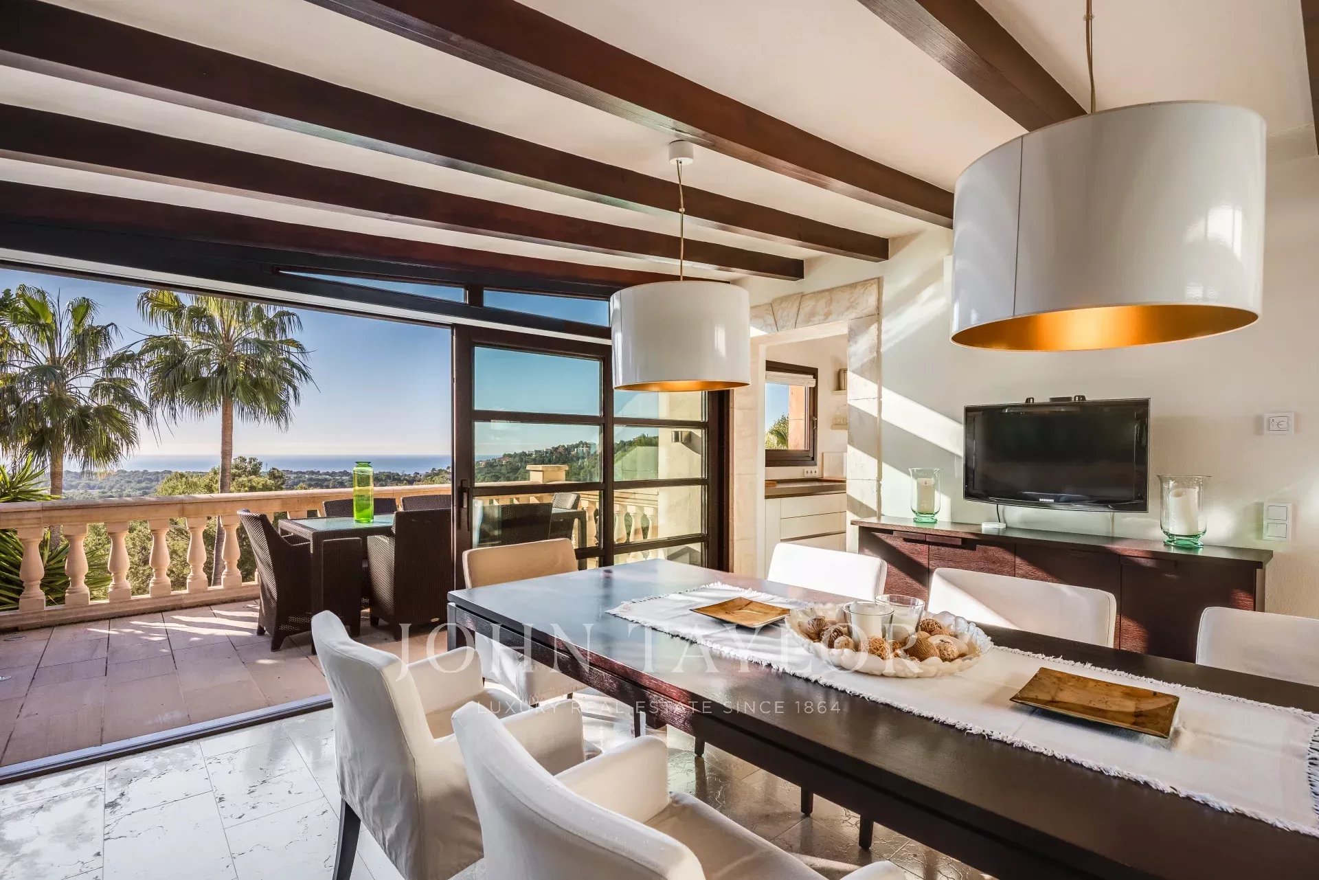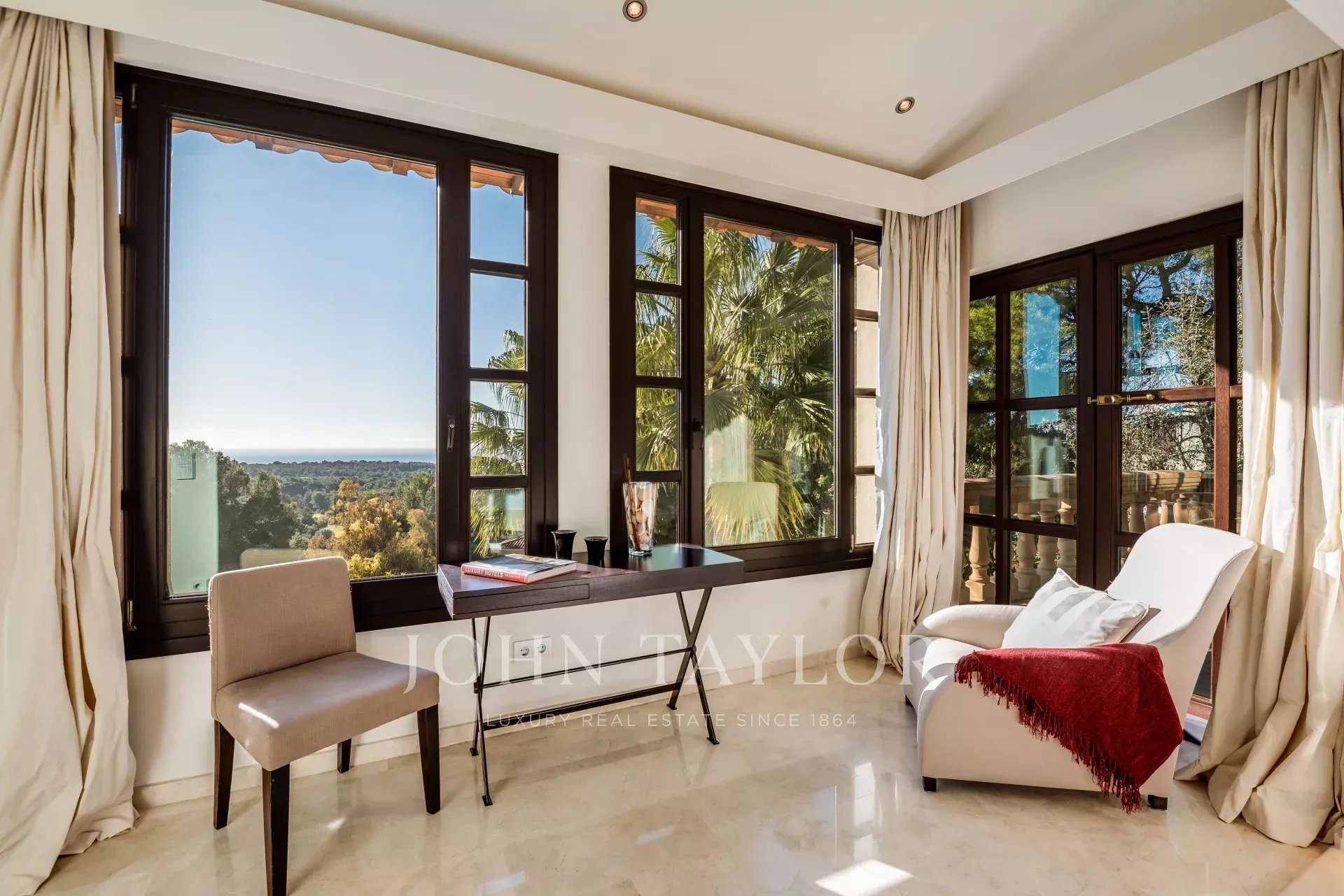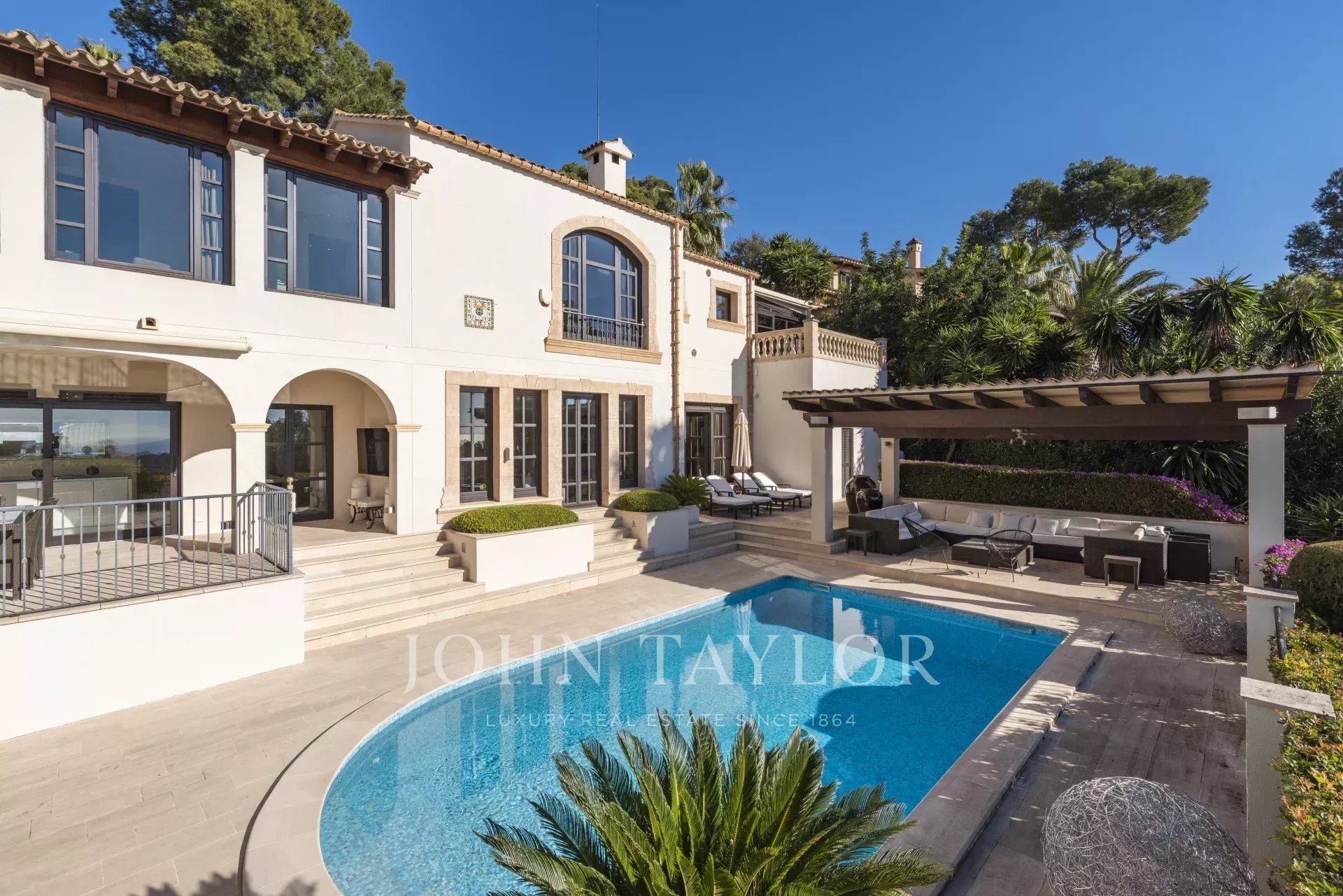 Предлагаем вашему вниманию эту впечатляющую средиземноморскую виллу, расположенную в непосредственной близости от поля для гольфа Bendinat. Она имеет 350 м² жилой площади, распределенной на двух уровнях. На верхнем этаже находится главная кухня со столовой, гостиная с камином, две спальни с двуспальными кроватями, две ванные комнаты и гардеробная. А на первом этаже - вторая, более просторная гостиная, еще одна полностью оборудованная кухня и еще две спальни с двумя ванными комнатами. Отсюда из всех комнат есть прямой выход к прекрасному открытому бассейну, где можно расслабиться и насладиться солнечными ваннами на просторной площадке с шезлонгами и диванами. Этот дом в средиземноморском стиле идеально подходит для тех, кто ищет уединения, спокойствия, прекрасного вида на море и жизни в очень престижном районе, недалеко от красивых портов и всех удобств. Не упустите возможность приехать и посмотреть этот дом. Свяжитесь с нами как можно скорее.