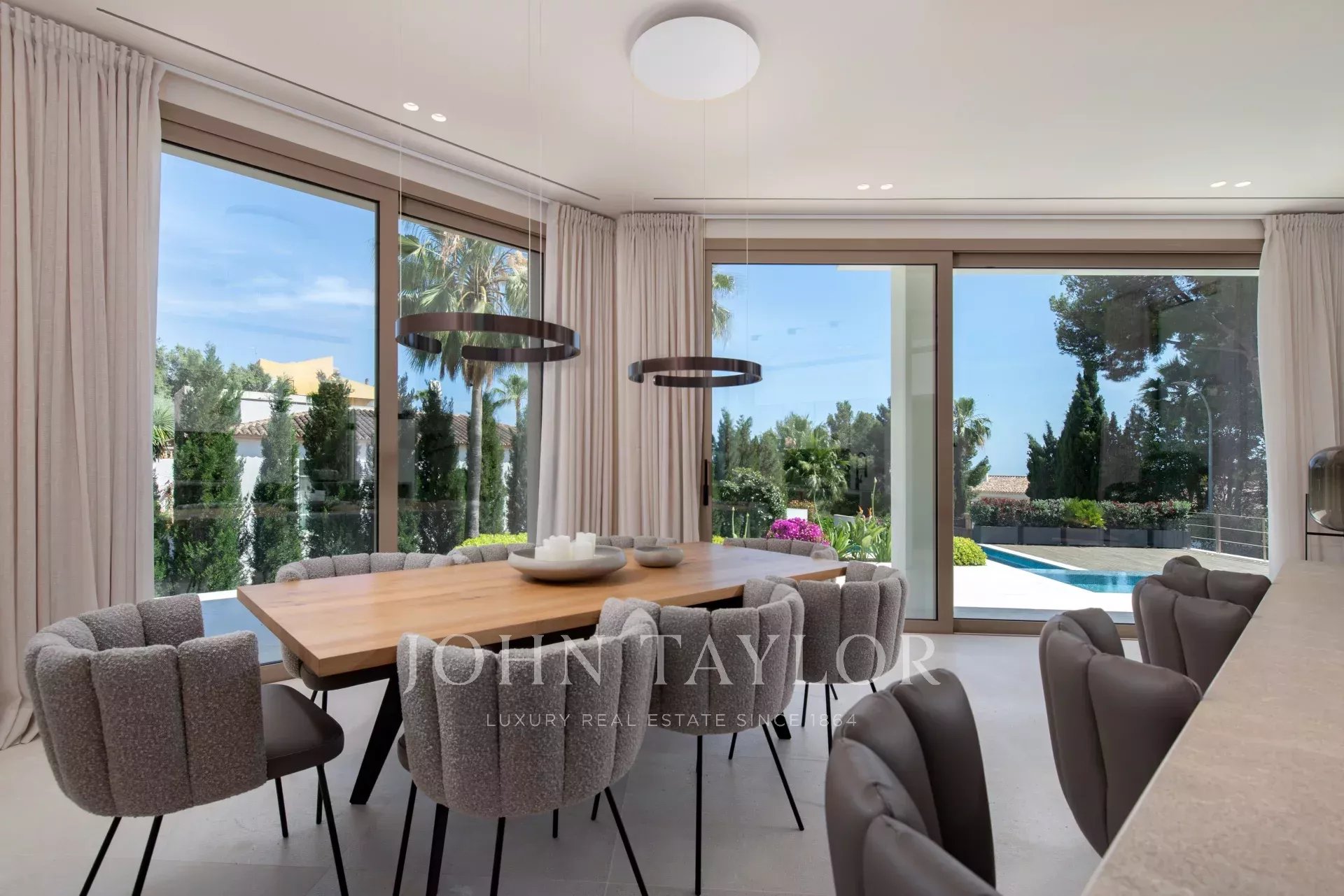 Каждый уголок этой виллы был задуман с вниманием к деталям и страстью к качеству. Среди особенностей - полы из крупноформатной керамогранитной плитки, стены из натурального камня, элегантные деревянные детали, газовый камин и самые современные технологии (бытовая техника Miele, освещение Occhio, встроенные кондиционеры, полы с подогревом и т.д.).