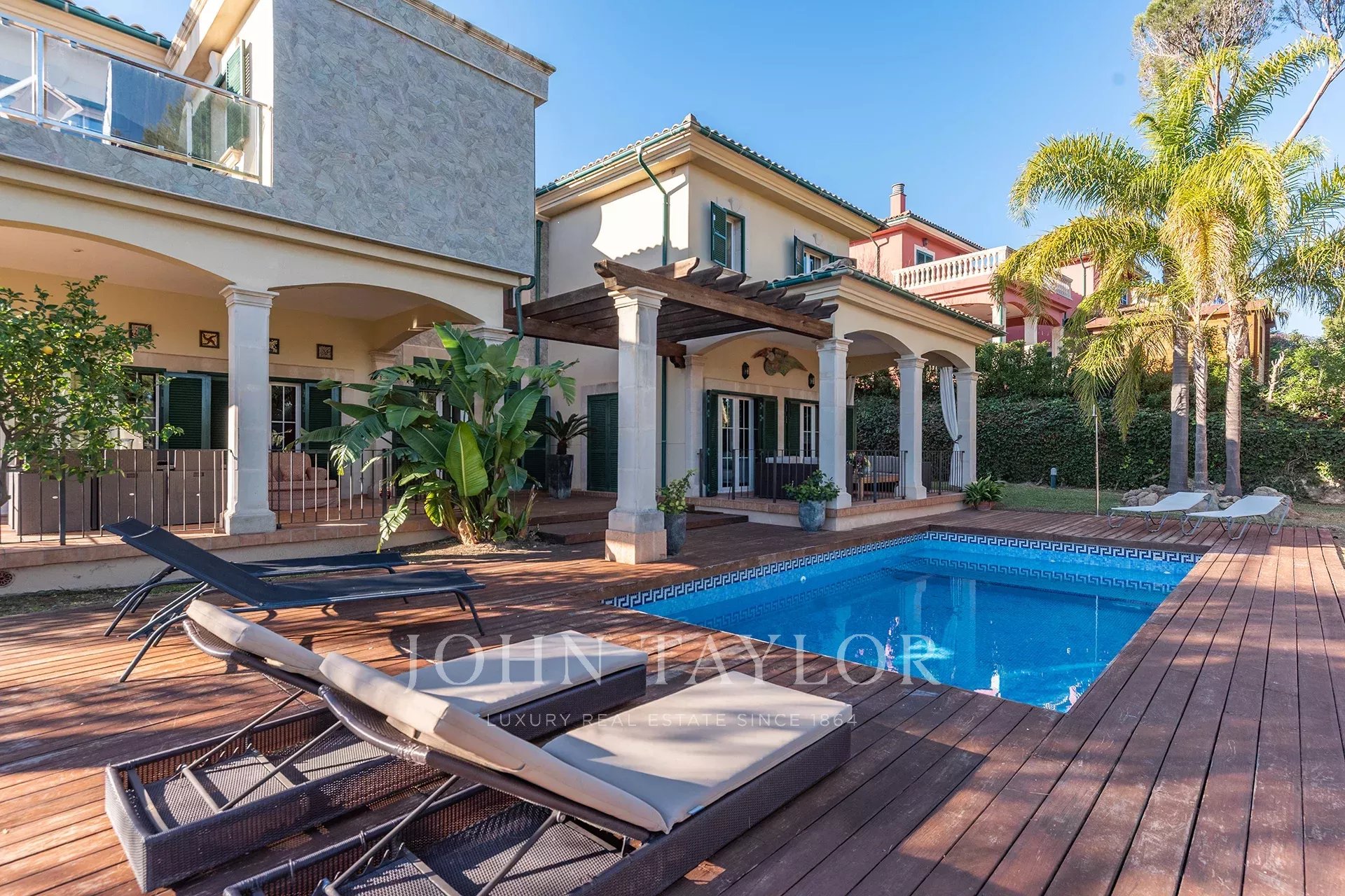 Уютная вилла с большим количеством приватности в тихом месте в Кала Виньяс. Этот замечательный семейный дом расположен в небольшом поселке в нескольких минутах ходьбы от пляжа. Дом очень просторный, в нем 3 спальни с ванными комнатами. Также есть еще одна комната, которая сейчас используется как телевизионная, но может быть четвертой спальней. На первом этаже дома расположены просторная гостиная/столовая с камином, красивая прихожая с высокими потолками, гостевой туалет, современная кухня и подсобное помещение. Из гостиной и кухни можно выйти на несколько террас и в просторный сад с бассейном. Как с первого, так и со второго этажа открывается частичный вид на море. Деревянные полы и высококачественная столярная отделка, гараж и 2 открытых парковочных места дополняют эту прекрасную виллу.
