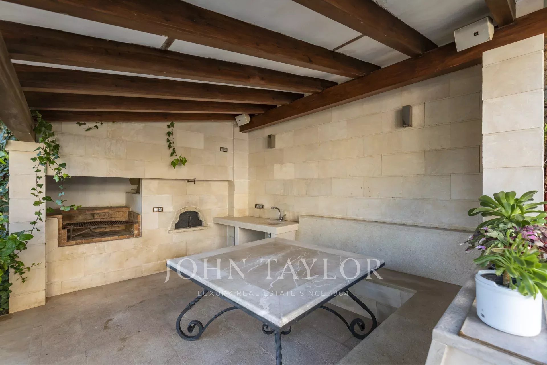 Эта просторная вилла с прекрасным видом на море расположена на необычно большом участке для престижного района Cas Catalá и является настоящим раем для любителей спорта и вообще для большой семьи, любящей активный отдых. Помимо просторных террас и большого бассейна с подогревом, на территории виллы имеется теннисный корт, который также можно использовать для занятий другими видами спорта.
