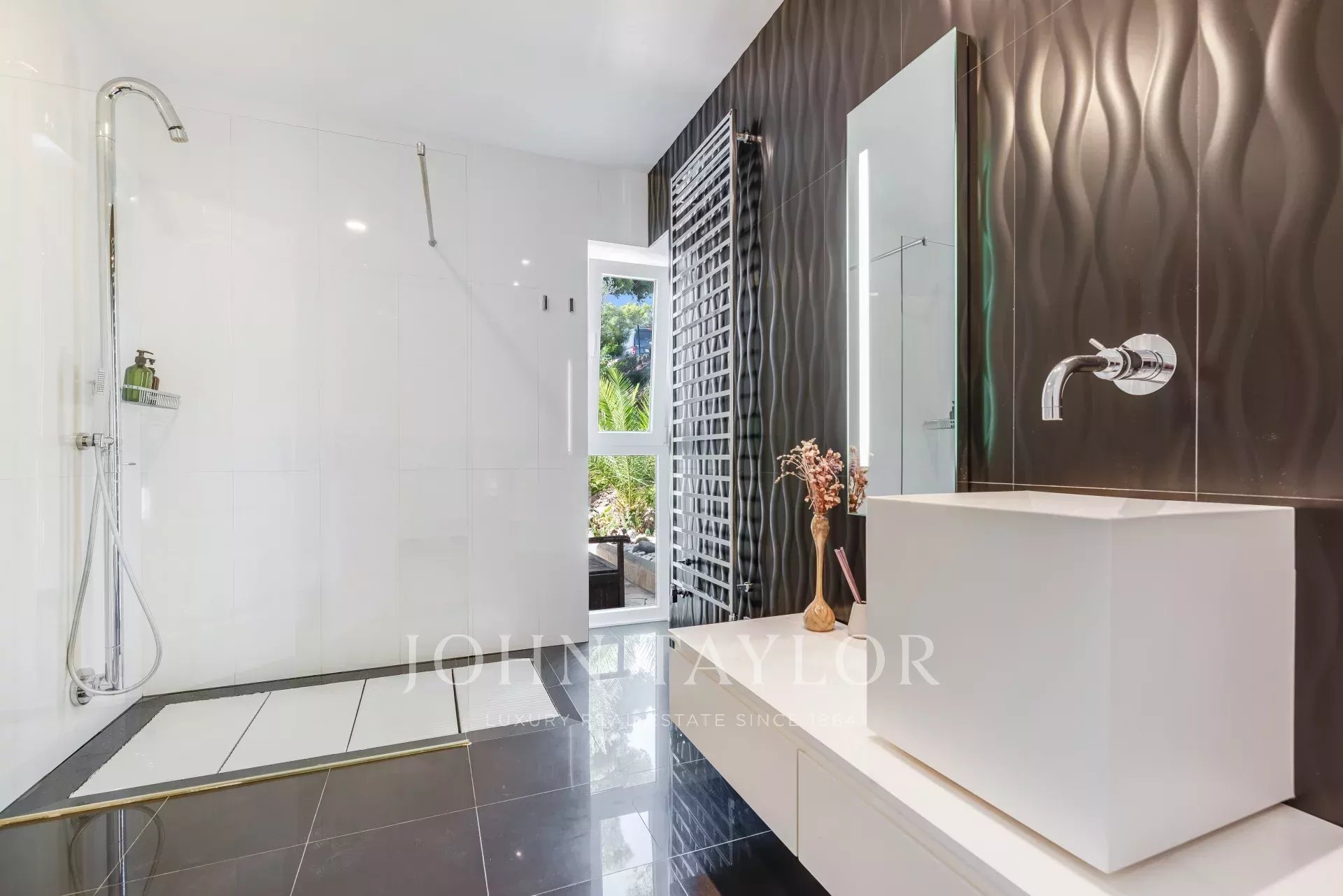 Винный погреб и большой гараж завершают этот впечатляющий светлый дом в привилегированном месте.