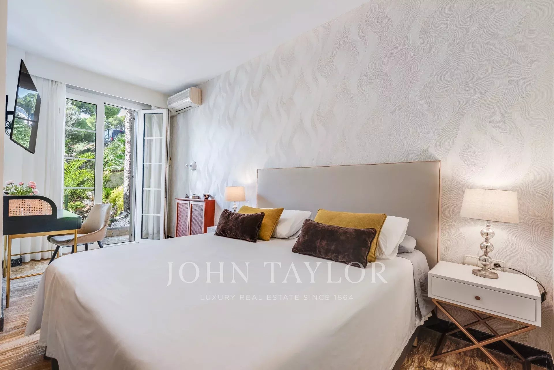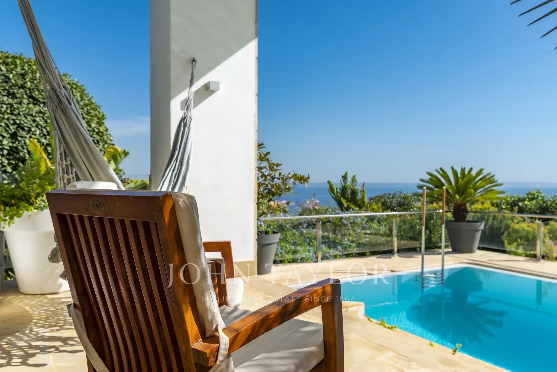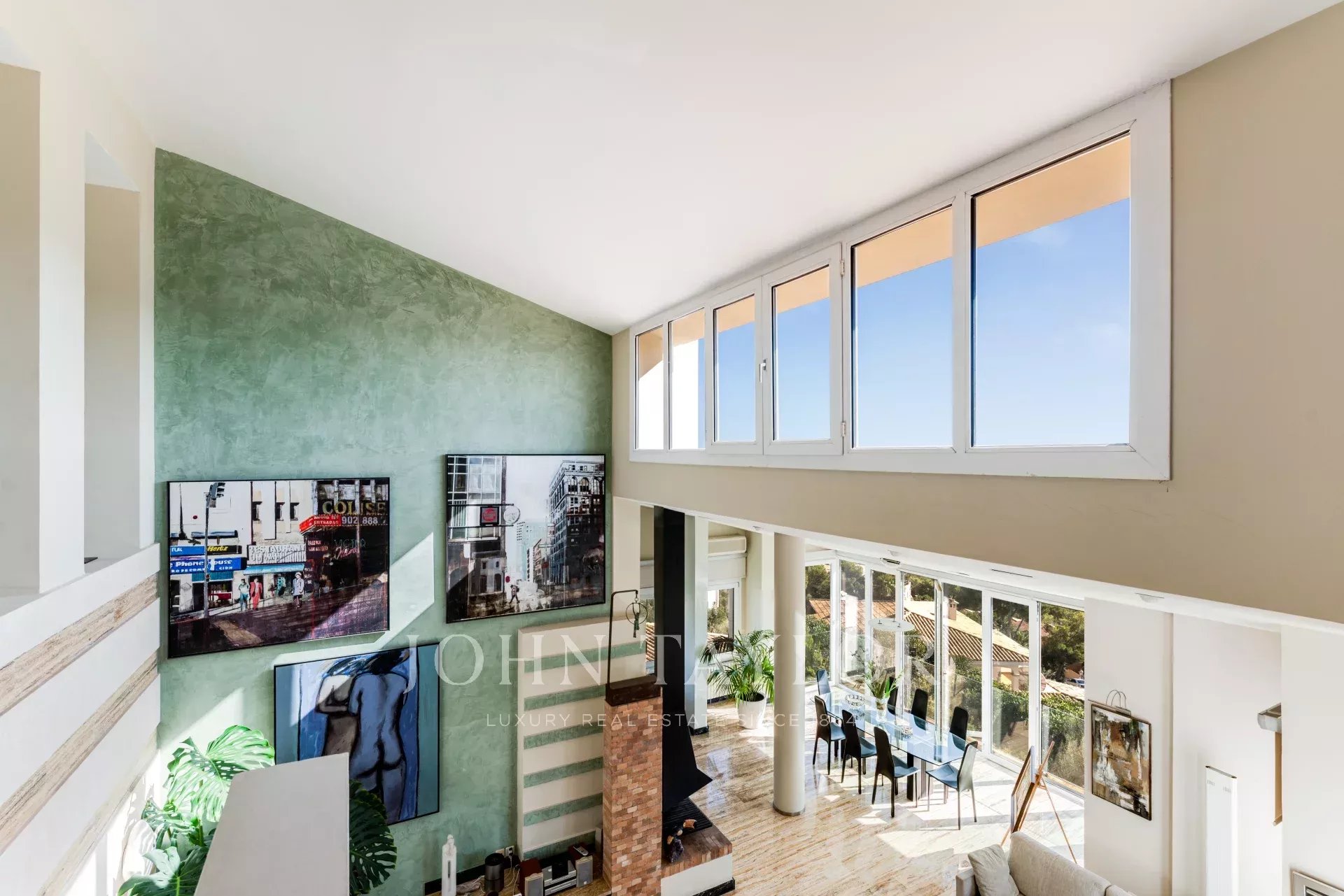 Вилла, выходящая на юго-восток, разделена на различные зоны. Здесь находится дневная зона, где расположены гостиная, столовая, кухня и кабинет. В другой части дома находятся 5 спален и 3 ванные комнаты. Кроме того, есть отдельная квартира для гостей и зона для обслуживающего персонала. На первом этаже на одном уровне с солнечной террасой с бассейном и джакузи находится вторая гостиная и просторная комната двойной высоты, которая предлагает различные возможности использования, такие как тренажерный зал, мастерская, игровая комната и т.д.