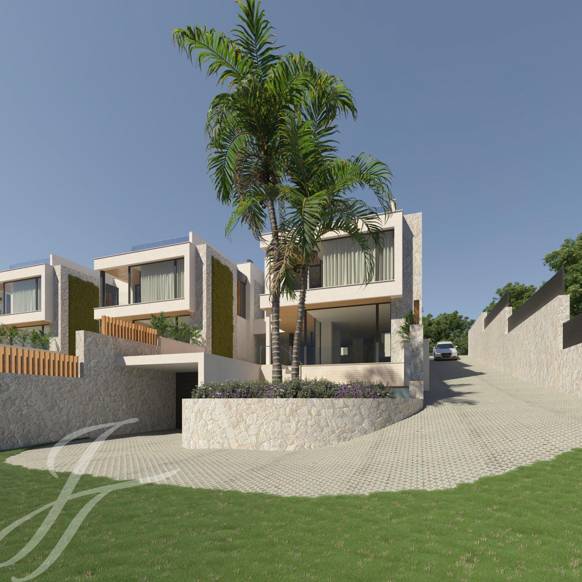 Каждая из четырех вилл имеет просторную жилую площадь в 300 квадратных метров, четыре спальни на верхнем этаже, каждая с ванной комнатой и встроенными шкафами. На первом этаже открытая планировка кухни и столовой с гостиной на раздельном уровне органично соединяется с просторной террасой, идеально подходящей для развлечений. Современный дизайн в средиземноморском стиле дополнен каменной отделкой, вертикальным садом и изящными столярными изделиями - все это создает ощущение высокого класса этих новых домов.