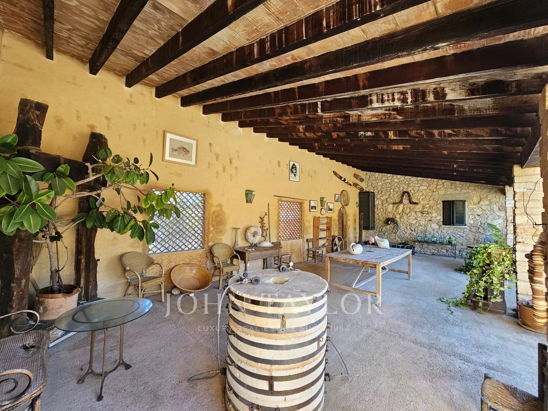 Финка с участком земли и видом на море недалеко от Порталс Нус. Всего в 5 минутах езды от знаменитого Пуэрто Порталс находится эта вилла в Коста д'эн Бланес, которую необходимо реформировать. Финка состоит из основного корпуса с гостиной, столовой и кухней, части, где расположены спальни, и резиденции для гостей или персонала. Также имеется уютный внутренний дворик с крыльцом. Кроме того, на участке есть бассейн и несколько террас.