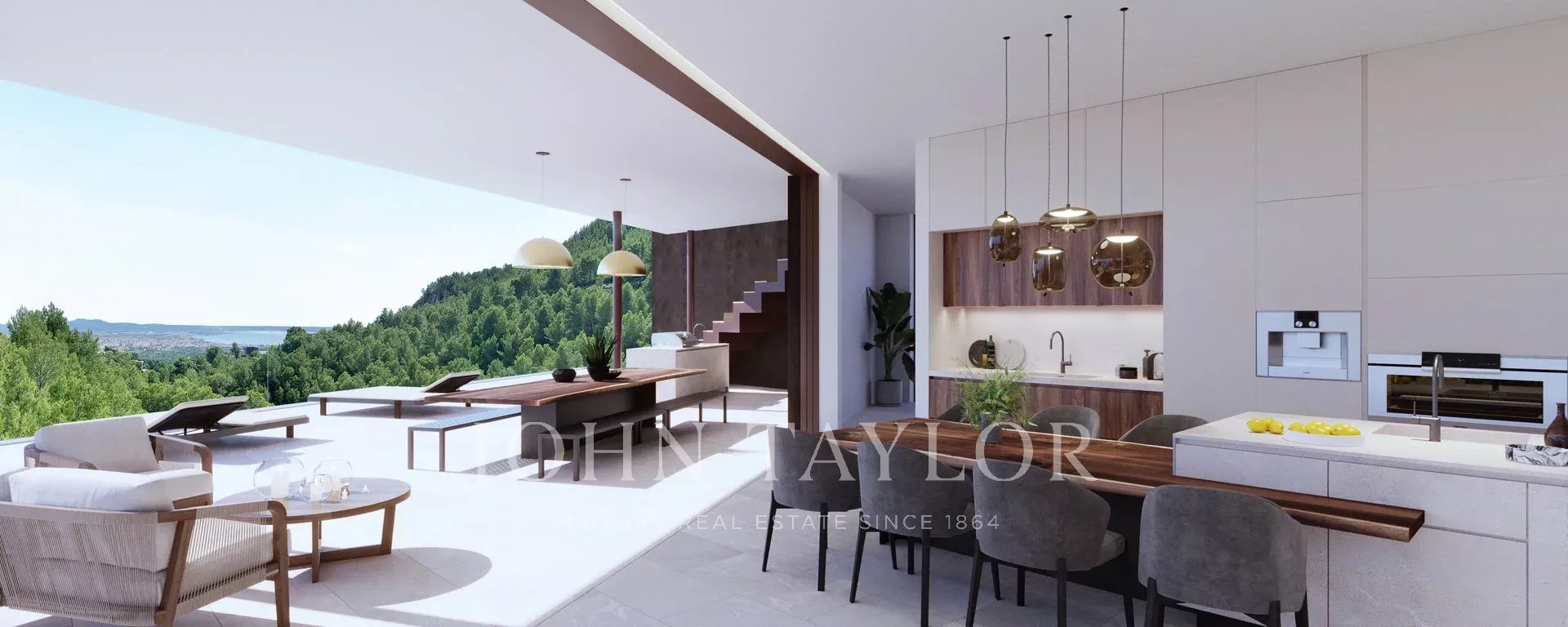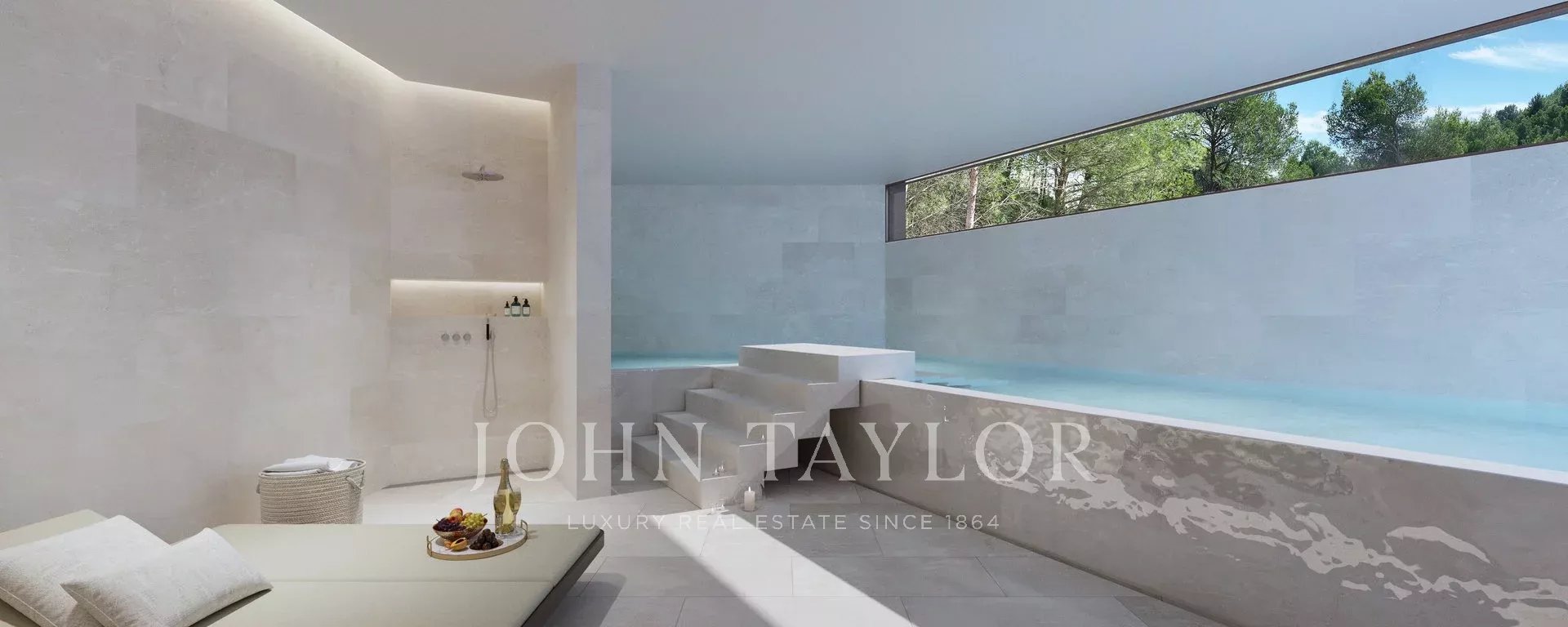Только что построенная вилла бескомпромиссного качества и стиля. Новаторский дизайн и строительство виллы - это настоящий праздник для глаз и пример для будущих домов. Настоящий законодатель моды! Наслаждайтесь полным уединением в этом исключительном доме. Массивная входная дверь ведет вас с улицы в верхнюю жилую зону, где вы найдете чил-аут лаунж, бар и фантастический бассейн-инфинити, частично застекленный. Отсюда открывается захватывающий вид на залив Пальмы. Этот вид превосходит только терраса на крыше, на которую можно попасть по внешней лестнице. Во всем доме также есть лифт. Ниже уровня бассейна находится главная социальная зона: просторная кухня/столовая и гостиная открытой планировки с плавным переходом на просторную, частично крытую террасу. На нижнем уровне расположены четыре спальни и две ванные комнаты с ванными комнатами на две спальни каждая. Здесь же расположен большой винный погреб. Главная спальня занимает весь первый этаж с огромной гардеробной, открытой ванной комнатой, сауной и прямым выходом в сад, где вас ждет джакузи. Крытый бассейн с подогревом, спа-салон и тренажерный зал расположены на самом нижнем уровне. Многие технические характеристики, например, система циркуляции воздуха, основаны на разработках авиационной промышленности (застройщик - выходец из этого сектора), а остальные характеристики также ориентированы на будущее и соответствуют последнему слову техники. Результат: энергосбережение и просто уникальный комфорт