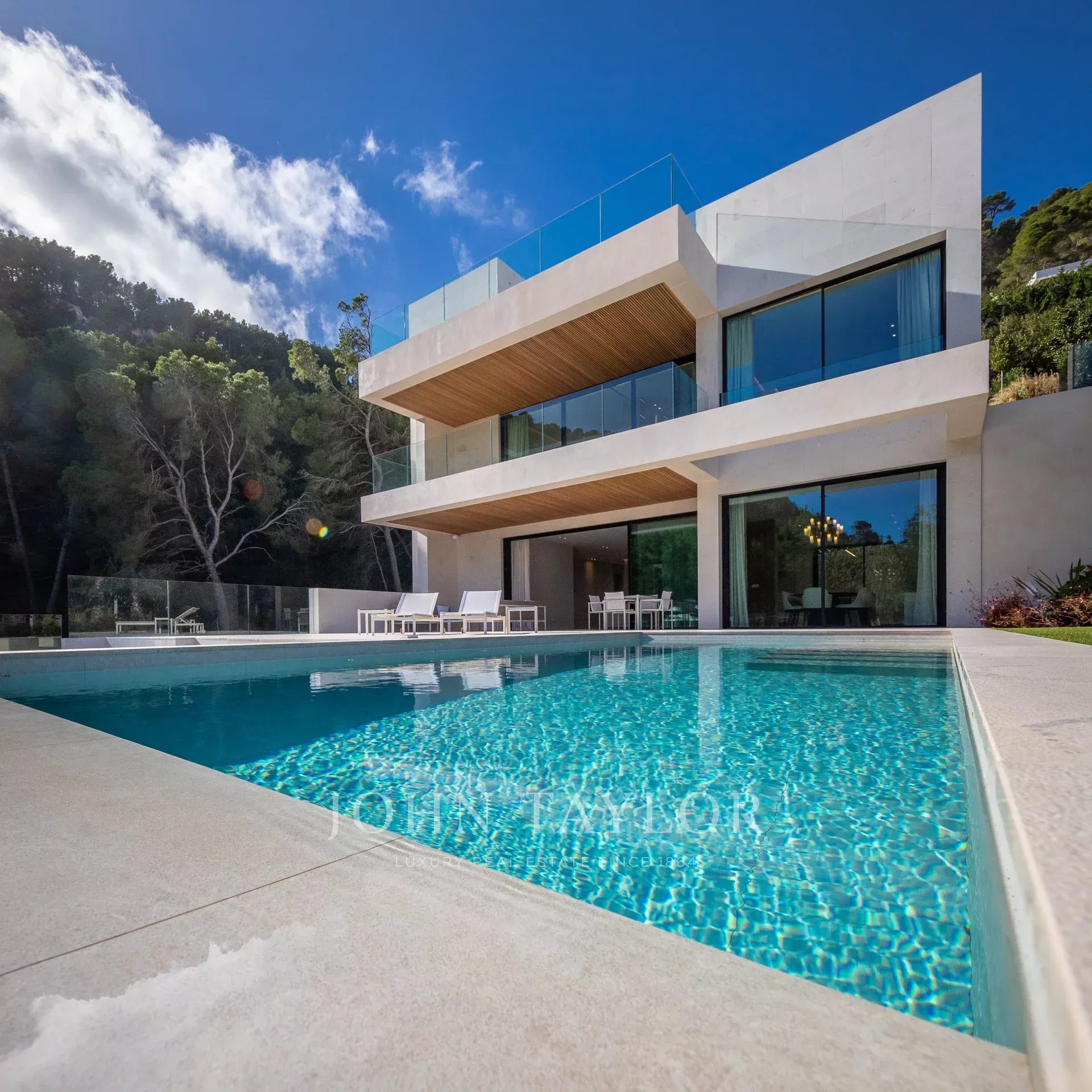 Эта роскошная вилла была построена в эксклюзивном месте в Сон Вида. Общая площадь виллы составляет 653 м2, а полезная площадь 353 м2: просторная гостиная и столовая с камином и полностью оборудованной кухней, а также спальня с ванной комнатой, гостевой туалет и прачечная. Из гостиной можно выйти на улицу с несколькими террасами и бесконечным бассейном. На втором этаже находятся еще 2 спальни с ванными комнатами и роскошная главная спальня с собственной террасой. Все эти спальни имеют собственное внешнее пространство, которое позволяет наслаждаться прекрасным средиземноморским климатом. Еще одна изюминка - терраса на крыше, на которой достаточно места для кухни, огромного обеденного стола и зоны отдыха. На цокольном этаже находится еще одна спальня для гостей с ванной комнатой, гараж площадью 100 м2, комната для обслуживания и кладовая.