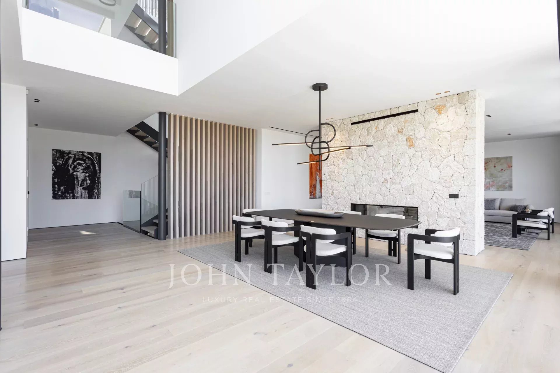 Представляем вашему вниманию эксклюзивную недавно построенную виллу класса люкс в Сон Вида, одном из самых престижных жилых районов Пальмы-де-Майорки. Этот уникальный объект недвижимости, созданный для максимального комфорта и стиля, сочетает в себе современную архитектуру с высококачественными материалами и захватывающими видами на море и город. С возвышенности, на которой расположена эта впечатляющая вилла, открываются панорамные виды, простирающиеся от голубого Средиземного моря до горизонта Пальмы. Гостиная открытой планировки с камином гармонично сочетается с кухней и столовой открытой планировки, идеально подходящей для встреч и торжественных мероприятий. Кроме того, здесь есть функциональная мини-кухня, обеспечивающая дополнительное пространство для хранения и работы. Оздоровительная зона включает в себя элегантную сауну и многофункциональную зону, идеально подходящую для частного тренажерного зала, что делает эту виллу настоящим оазисом релаксации и комфорта. Ухоженный ландшафтный сад окружает большой частный бассейн, идеальный для того, чтобы наслаждаться майоркинским климатом круглый год. На вилле 5 просторных спален и 6 полных ванных комнат, оформленных в изысканном стиле с использованием высококачественных отделочных материалов. Есть отдельная квартира для гостей с собственной гостиной, кухней, спальней и ванной комнатой: идеальный баланс между уединением и гостеприимством. На крыше дома расположена терраса с панорамным видом и возможностью установки открытой кухни, идеально подходящей для обедов на свежем воздухе на закате. В доме есть лифт и грузовой лифт для удобного перемещения между этажами. Вилла продается полностью меблированной дизайнерской мебелью от Terraza Balear, известной своей элегантностью и комфортом. Вилла предлагает частный гараж на 2 автомобиля, а также дополнительную открытую парковку, гарантирующую достаточно места как для жильцов, так и для гостей.