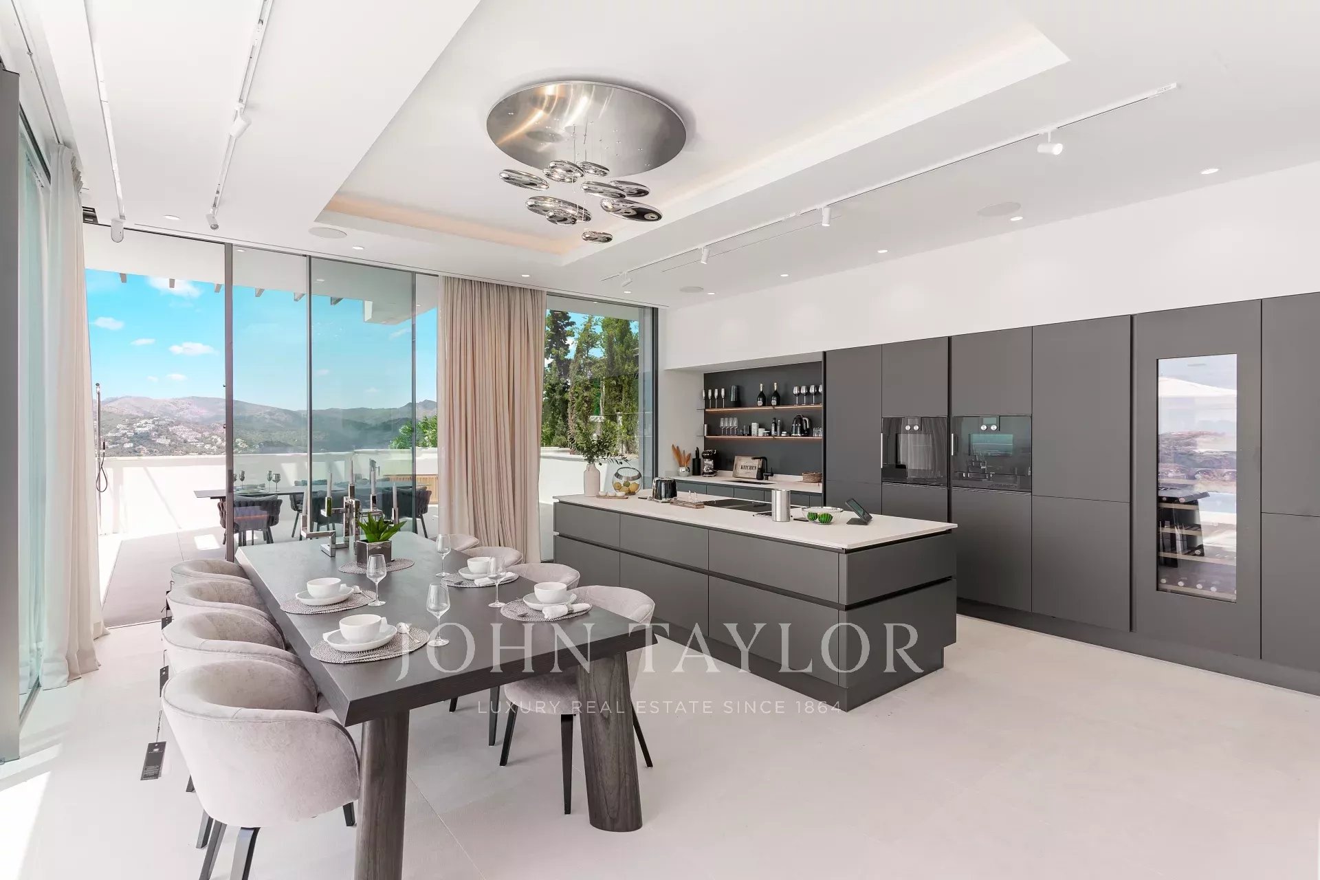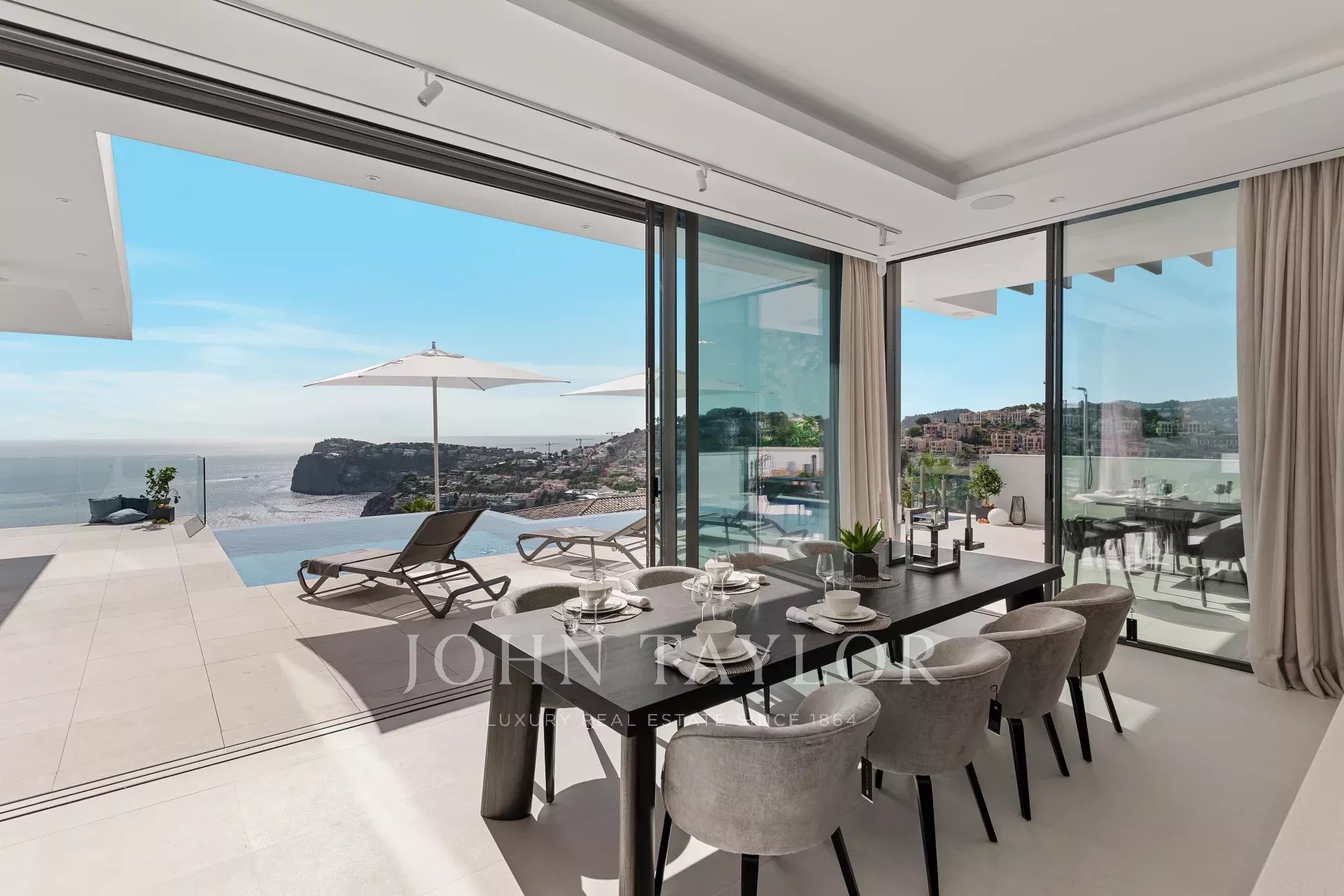 Расположенная в исключительном месте на вершине Кала Лламп, эта впечатляющая современная вилла гармонично вписывается в склон горы и предлагает уникальные и захватывающие дух виды на море. Вид простирается от захватывающей бухты с ее чудесными голубыми водами до полуострова Ла Мола и открытого моря на заднем плане. Вилла предлагает роскошь: 6 подземных парковочных мест и 6 спален на жилой площади 691 квадратный метр, расположенной на участке площадью 1 038 квадратных метров. Впечатляющая архитектура сочетает в себе консольные конструкции с белыми оштукатуренными фресками и идеально выполненным минималистичным стеклянным фасадом. Здание идеально вписывается в окружающую природу благодаря классическому сочетанию известняка и великолепно отделанных стен из натурального камня Майорки. В восхитительном дизайне интерьера использованы лучшие натуральные материалы, чтобы создать идеальный баланс между светом и тенью, обеспечивая комфортную и приятную атмосферу. Вилла была спроектирована с большим вниманием к деталям, чтобы максимально раскрыть захватывающие панорамные виды из основных комнат и с террас. Благодаря юго-западной ориентации виллы солнце светит здесь круглые сутки, а на закатах можно наблюдать силуэт соседнего острова Ибица. Тщательно продуманная ориентация здания, высота, продуманное распределение и интеграция в ландшафт создают идеальную среду для наслаждения Средиземноморьем и абсолютной приватностью в то же время. Вилла расположена в отличном месте с видом на бухту Кала Лламп, предлагая мир, спокойствие, безопасность и уединение в этом эксклюзивном месте. Популярный пляжный клуб Gran Folies Beach Club находится всего в нескольких минутах ходьбы от дома, а в непосредственной близости - множество интересных и высококачественных кафе и ресторанов в гавани и на пристани для яхт. Откройте для себя необыкновенный стиль жизни этой изысканной виллы. Пожалуйста, свяжитесь с нами для получения дополнительной информации и организации просмотра.