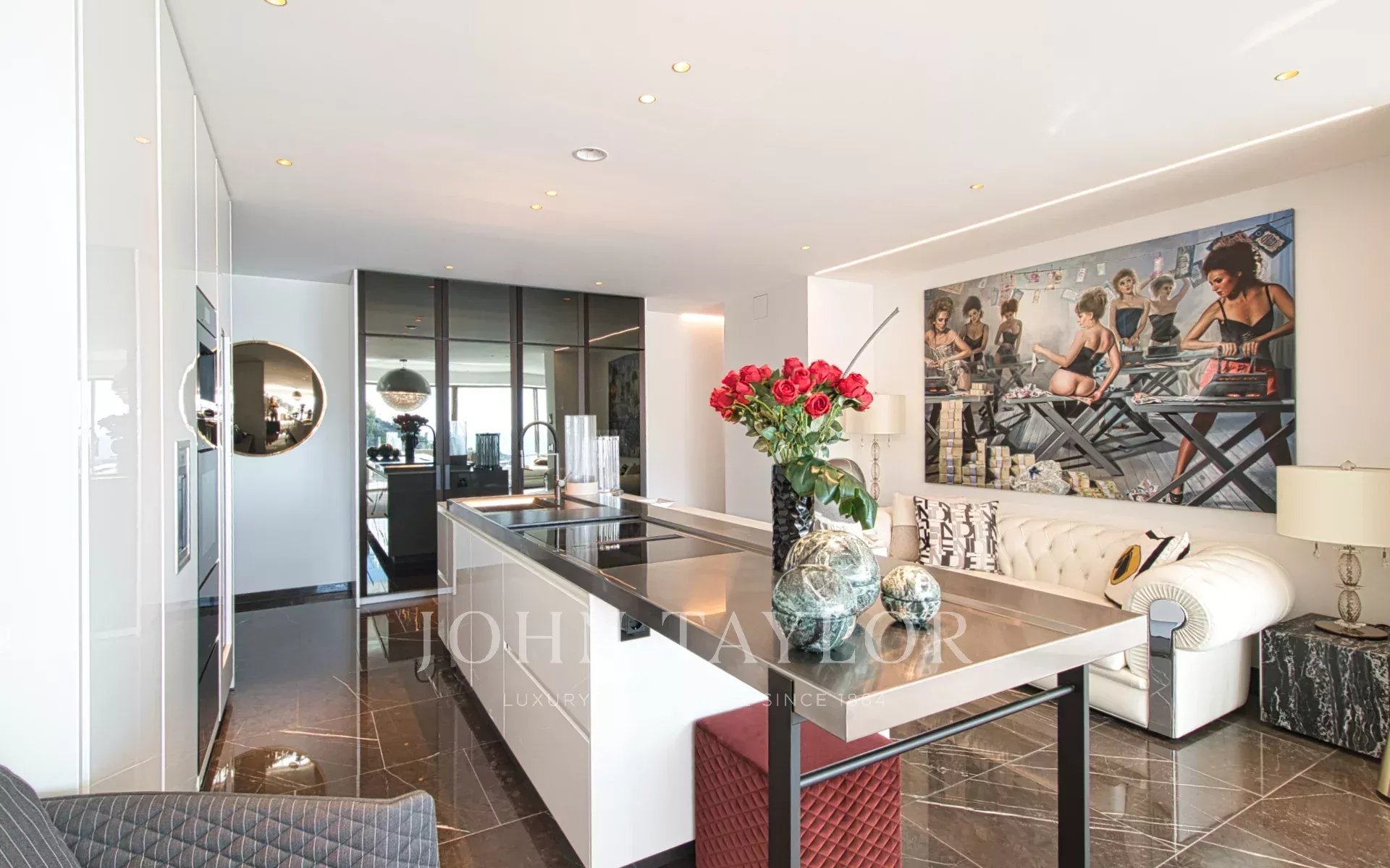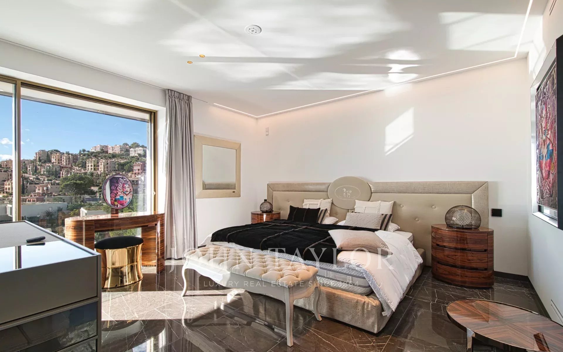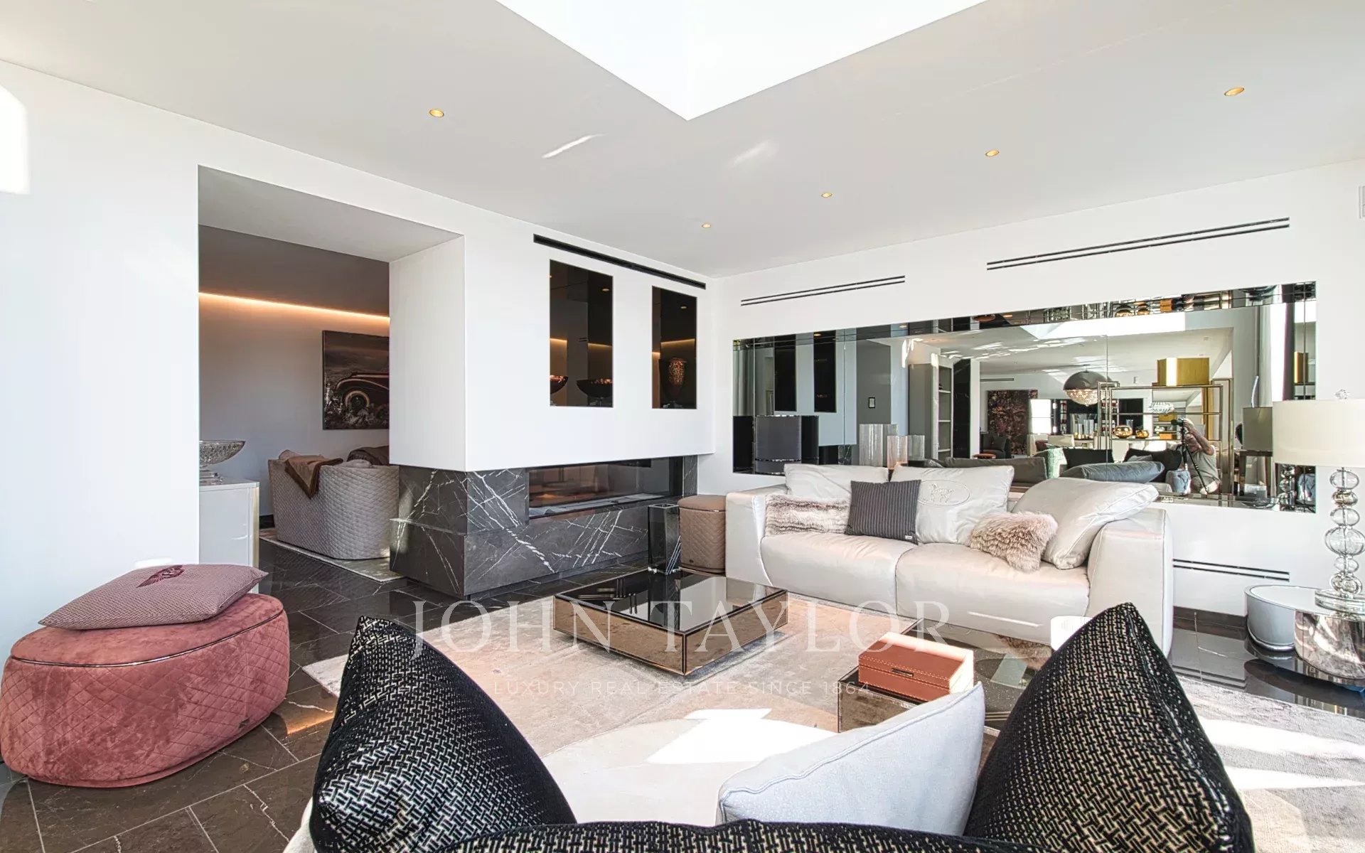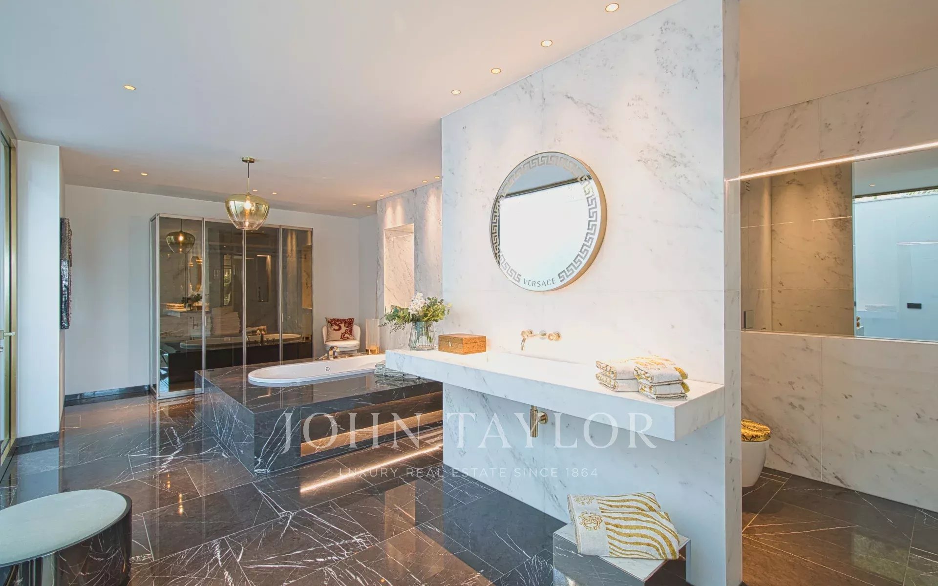 Три исключительных сорта мрамора определяют характерную эстетику виллы. Меблировка от Fendi Casa и Bentley Home (стоимостью 1,2 миллиона евро) завершает этот шедевр современного дизайна интерьера.