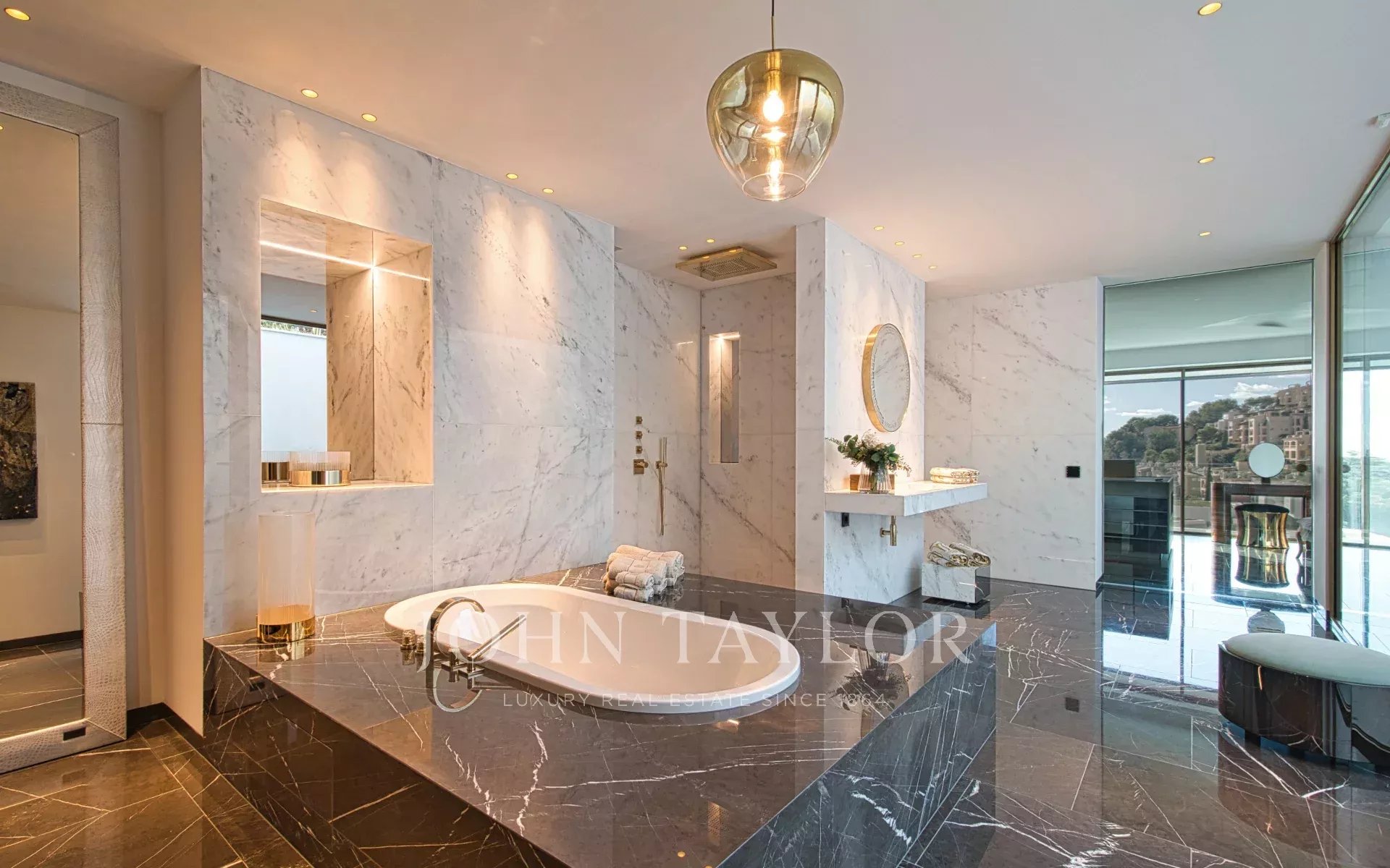 Внешний фасад, полы и даже крутая лестница облицованы изысканным мрамором: каждая поверхность отражает естественный свет и мастерство высочайшего уровня. Каждый материал, каждая деталь были выбраны для создания идеального диалога между архитектурой, искусством и природой.