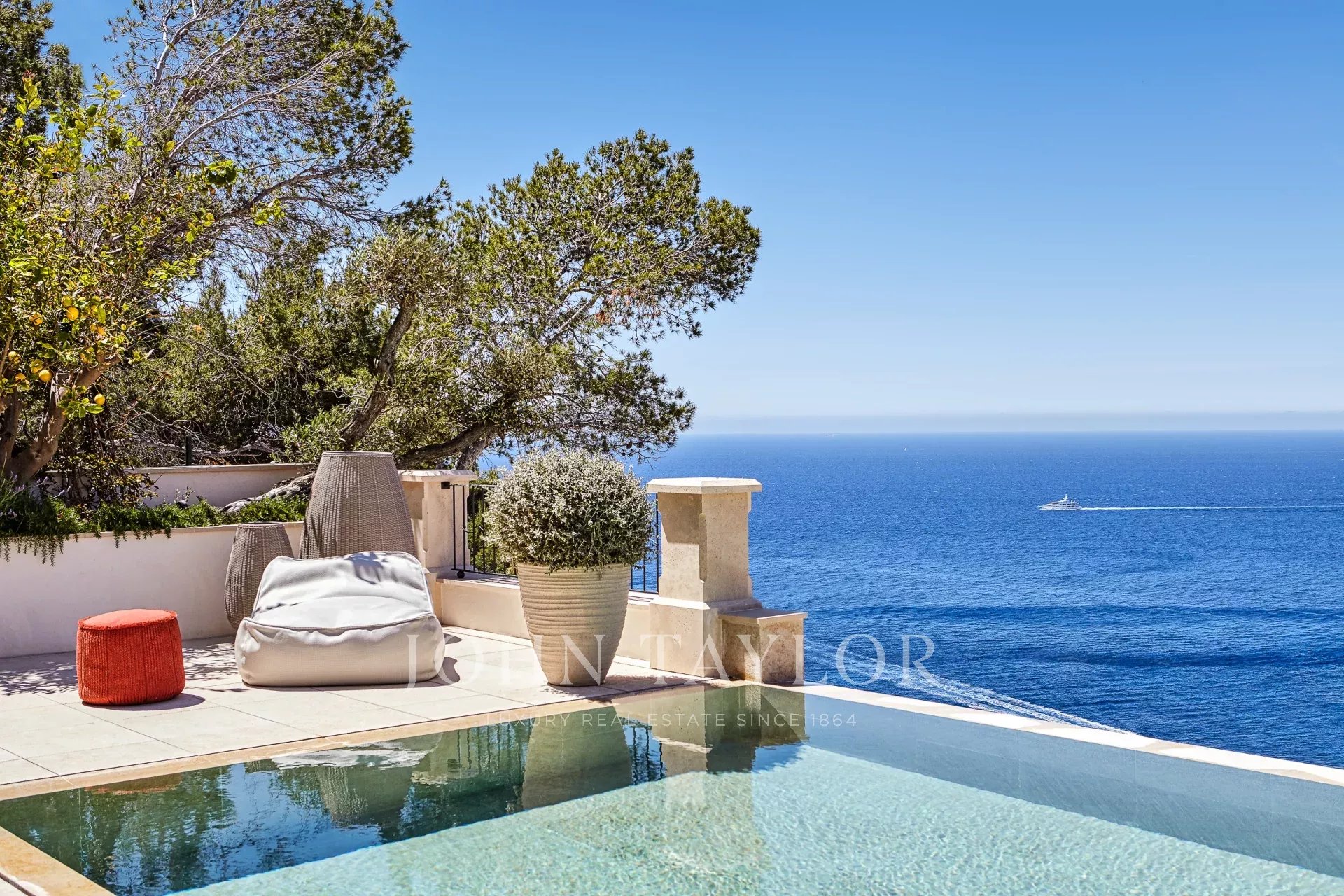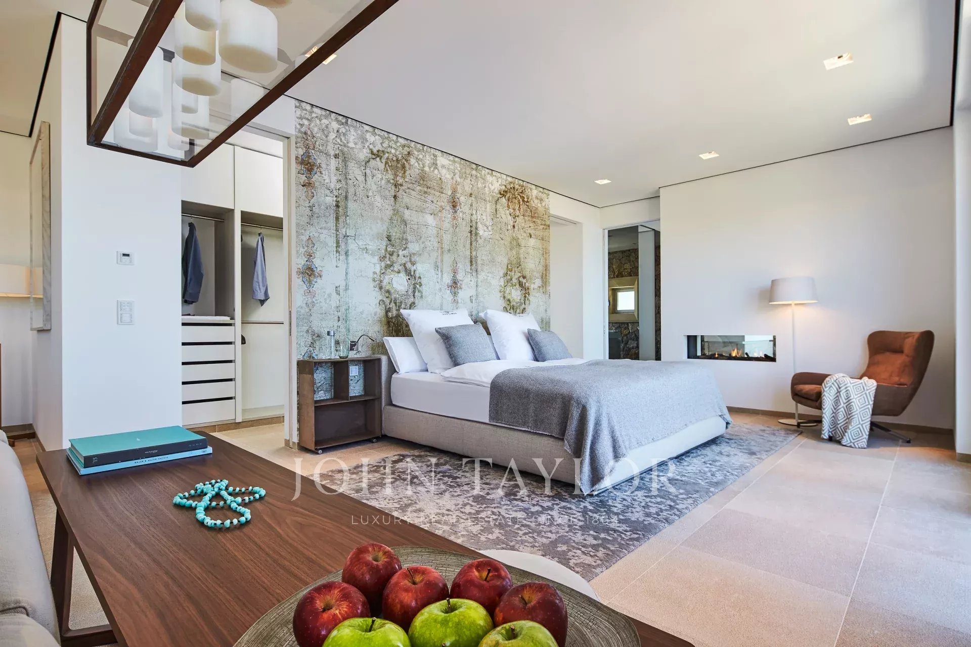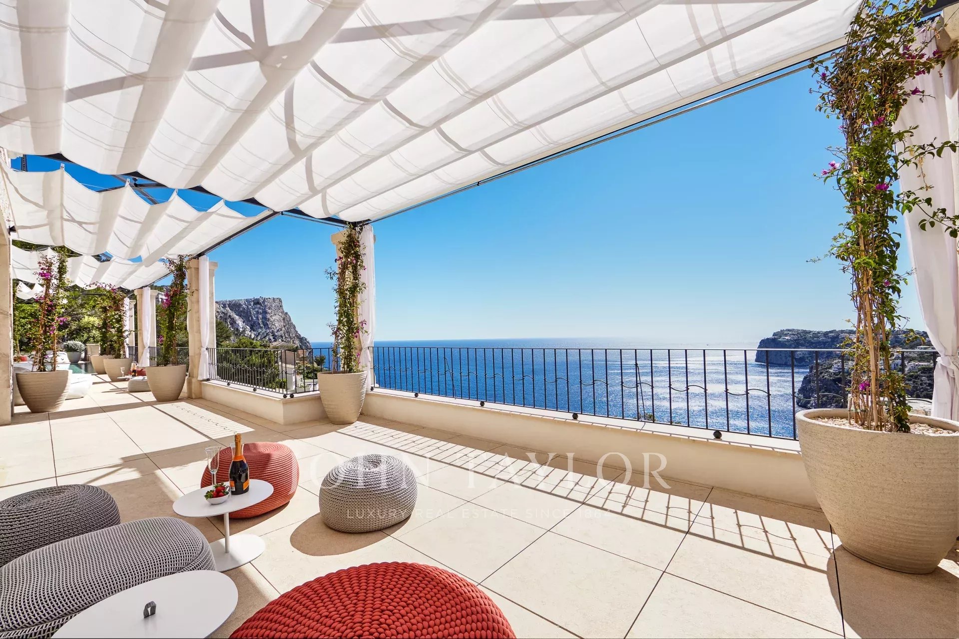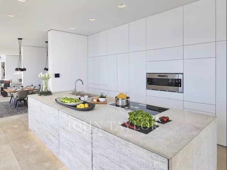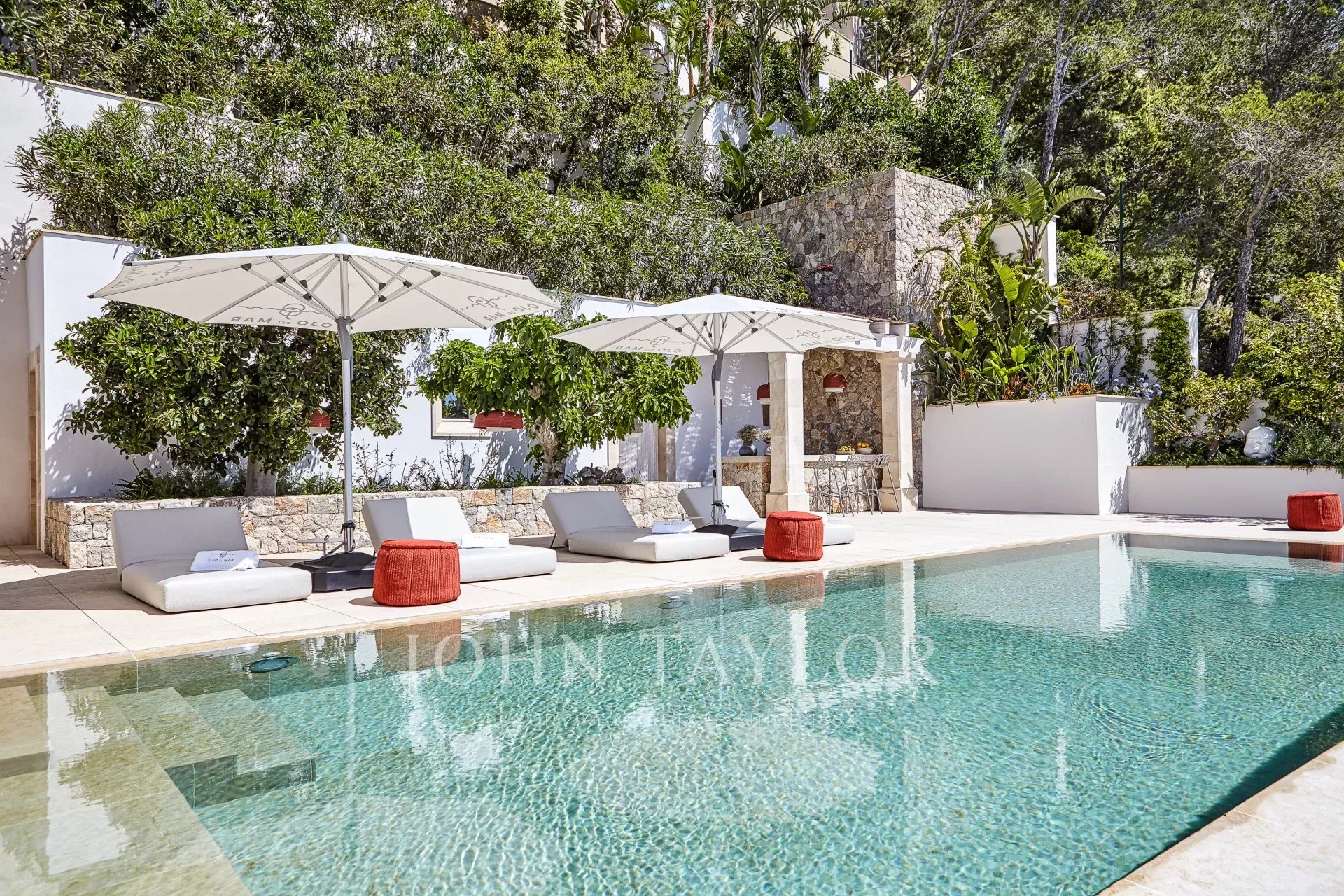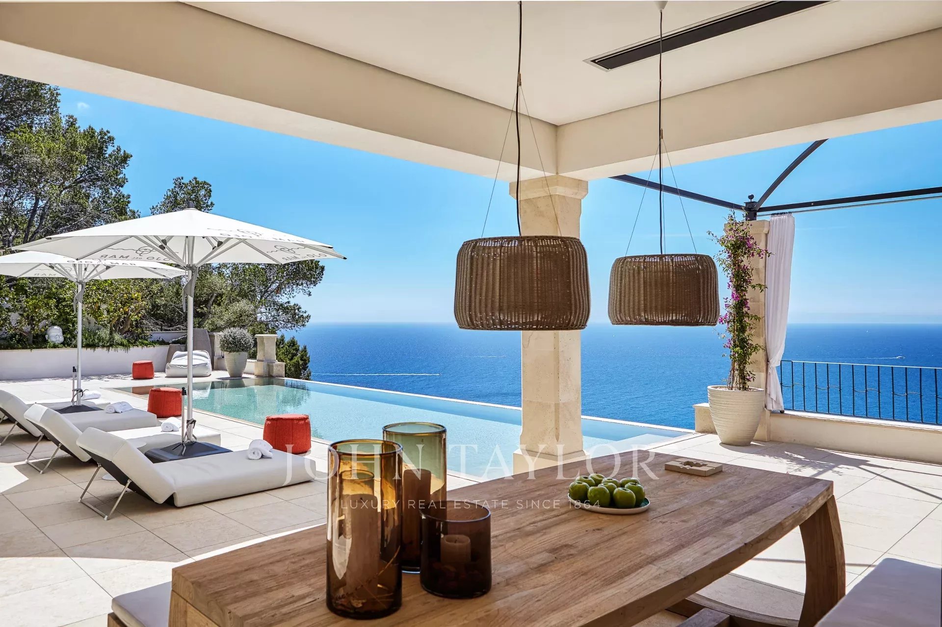 Эта роскошная вилла расположена в престижном месте над бухтой Кала Лламп, откуда открываются захватывающие панорамные виды на море. Вилла имеет площадь 700 м2 и расположена на трех уровнях. На первом этаже находится элегантная прихожая, ведущая к телевизионному салону, гостиной, столовой и кухне. Просторная гостиная через перголы выходит на террасы, где расположены две открытые кухни с грилями для барбекю и большим обеденным столом, а также ванная комната. Еще одна изюминка - бассейн-инфинити площадью 60 м2. Открытая площадка спроектирована таким образом, чтобы вы могли в полной мере насладиться средиземноморским климатом. На верхний этаж можно подняться на лифте или по элегантно освещенной лестнице, где расположена спальная зона. Она состоит из двух спален с ванными комнатами и комфортабельной главной спальни. Она состоит из прихожей, просторной спальной зоны и роскошной ванной комнаты с ванной в эркере. В цокольном этаже, помимо гаража площадью 100 м2, где можно разместить не менее 5 автомобилей, есть винный погреб, фитнес-зал с сауной, домашний кинотеатр, спальня для обслуживающего персонала с ванной комнатой, еще одна ванная комната, прачечная, подсобное помещение и кладовая. Дом продается с мебелью.