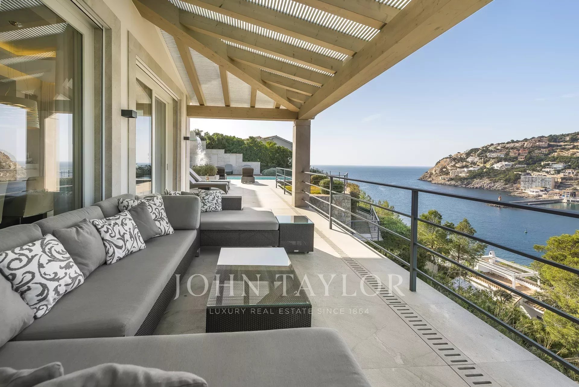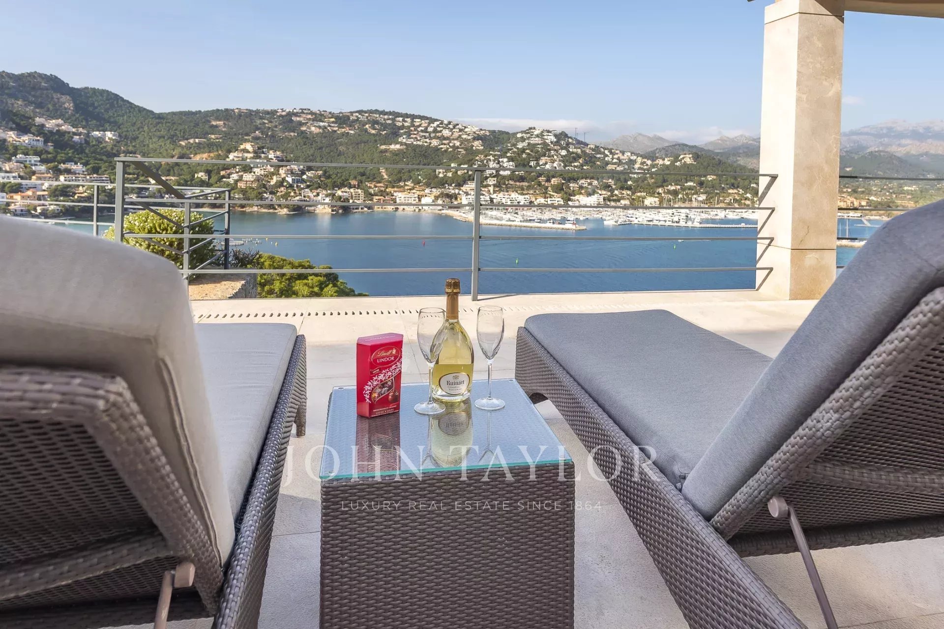 Роскошная вилла в лучшем месте. В этой недавно построенной вилле 5 спален с ванными комнатами распределены на 600 м2 жилой площади. Современная конструкция и дизайн пронизывают весь дом. Полностью оборудованная кухня открытой планировки не оставляет желать лучшего. Из спальни, уютной гостиной с камином или кухни открывается захватывающий вид на залив Пуэрто-де-Андраткс и гавань. Снаружи вы найдете бассейн с подогревом и зоной чил-аут, а также большой обеденный стол с барбекю. Особого внимания заслуживает собственная сауна, из которой открывается великолепный вид на море благодаря большому стеклянному фасаду. Захватывающие закаты здесь гарантированы.