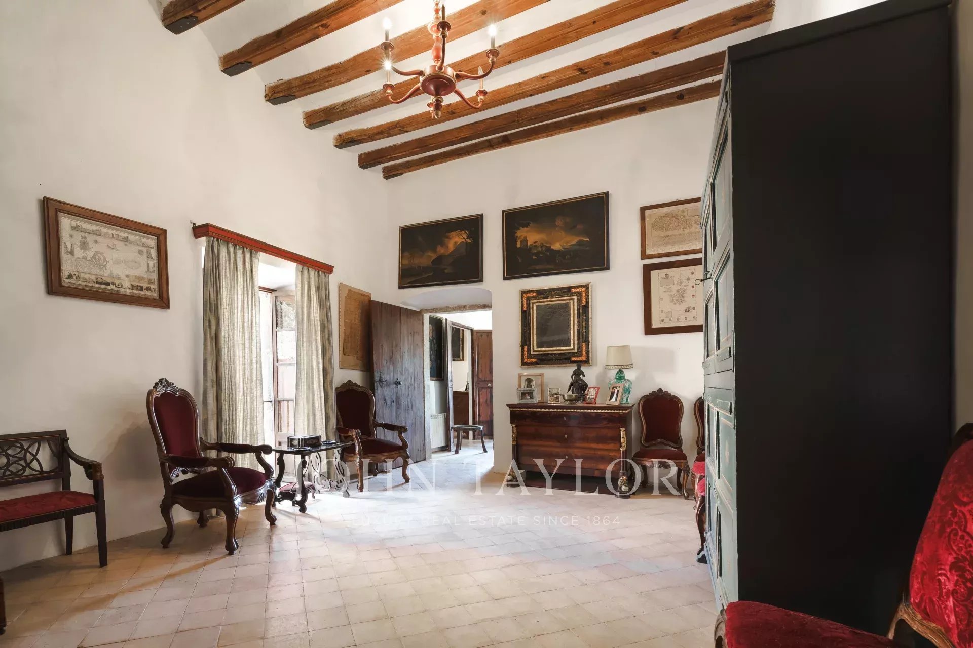Традиционная деревенская финка расположена в привилегированном природном окружении всего в нескольких минутах езды от Пальмы. Это эксклюзивное поместье располагает более чем 1 млн кв. м земли, включая сосновый лес, лесополосу, рожковые деревья и сельскохозяйственные угодья. Это майоркинское поместье площадью более 1 800 кв. м, расположенное в окружении гор, предлагает полное уединение и спокойствие. Оно идеально подходит для любителей природы и спокойной загородной жизни. Частично отреставрированный дом La Possessió состоит из главного дома, дома для сторожа "l'amo" и отдельной квартиры. Кроме того, здесь есть несколько террас, сады, красивый внутренний двор, тафона в ее первозданном виде, часовня, цистерна и конюшни - все элементы, отражающие подлинную майоркинскую сущность. Всего в особняке 11 спален, 9 ванных комнат и 3 кухни, с большим потенциалом для расширения и обновления помещений, которые еще предстоит реформировать. Расположенный всего в нескольких минутах езды от Пальмы, этот особняк представляет собой уникальную возможность для тех, кто хочет приобрести большую аутентичную недвижимость на Майорке, с привилегированным расположением, в окружении природы и легким доступом к городу. La Possessió предлагает идеальное место для наслаждения загородной жизнью со всеми современными удобствами. Если вы хотите приобрести финку на Майорке, которая сочетает в себе историю, очарование и уединение, эта майоркская Поссессио - идеальный выбор. Свяжитесь с нами, чтобы получить дополнительную информацию или запланировать просмотр этой эксклюзивной недвижимости на Майорке!