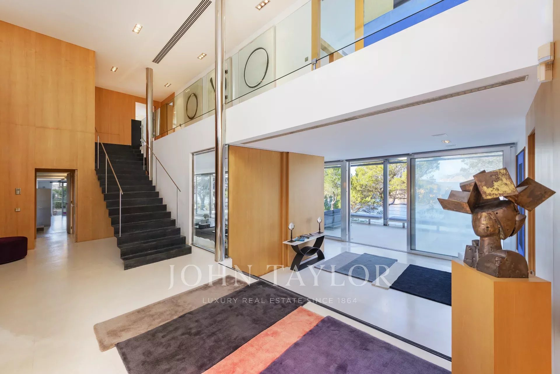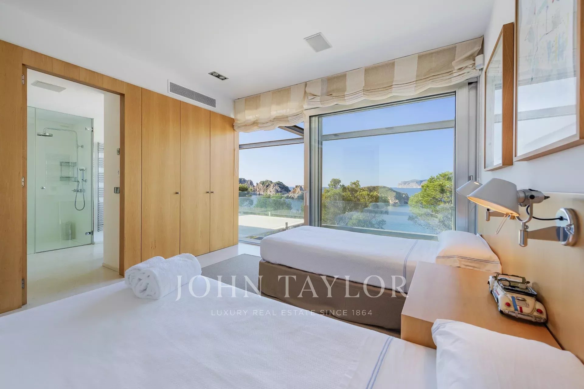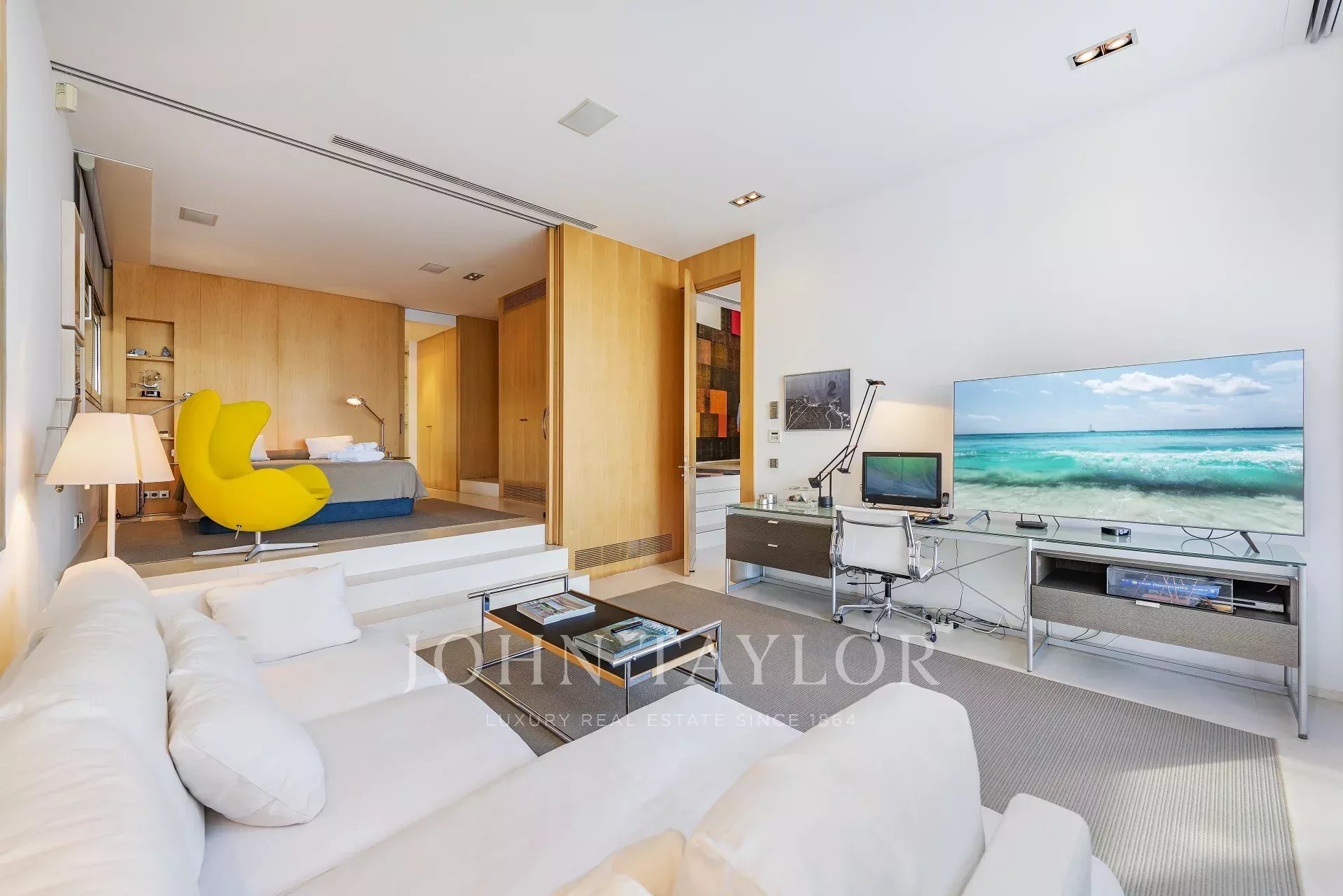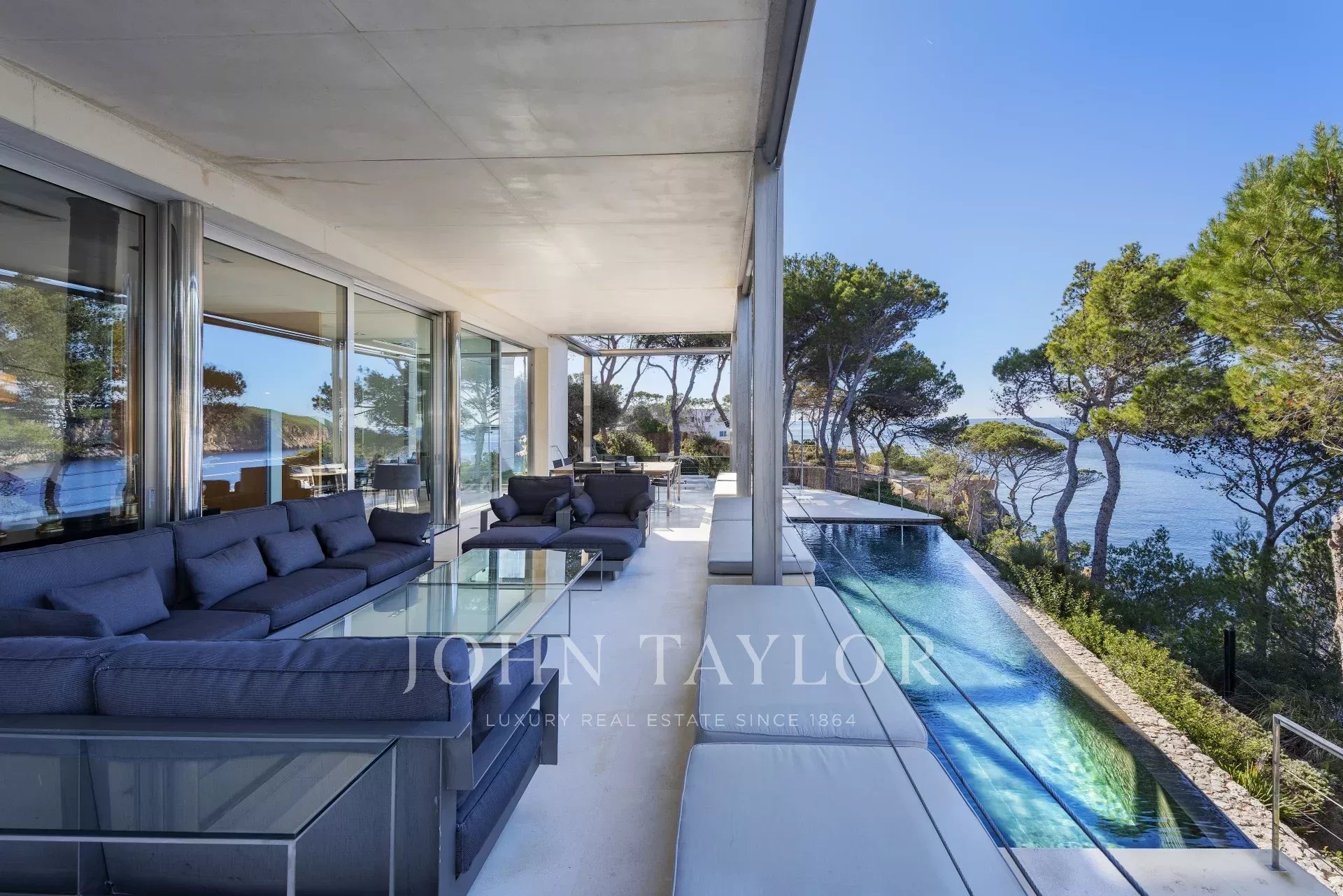 Эта великолепная вилла первой линии площадью 770 м2 предлагает захватывающий вид на море, острова Мальграт и прямой выход к морю с платформы с 15-летней прибрежной концессией. Вилла расположена в непосредственной близости от супермарины Порт Адриано, четырех близлежащих полей для гольфа и всего в 25 минутах езды от элегантной столицы и аэропорта Майорки. Оптимальный комфорт, большое пространство, светлый и современный дизайн интерьера с открытой гостиной и столовой, плавные переходы к открытым площадкам придают вилле идеальную атмосферу для средиземноморского образа жизни. В этой вилле действительно все продумано: жилые зоны удобно соединены между собой. Наверху, помимо просторной хозяйской спальни с собственной гостиной, есть еще четыре спальни с ванными комнатами. На первом этаже находится еще одна спальня с ванной комнатой и две спальни с общей ванной комнатой, идеально подходящей для персонала. Просторная кухня, гостиная и столовая. Всего 6 спален с ванными комнатами и 2 комнаты для персонала с ванными комнатами.