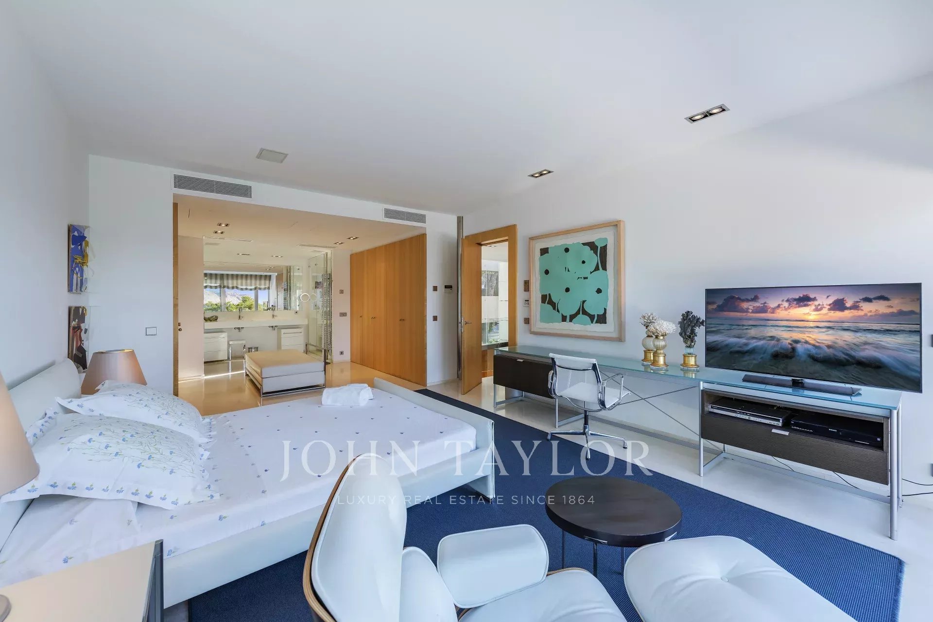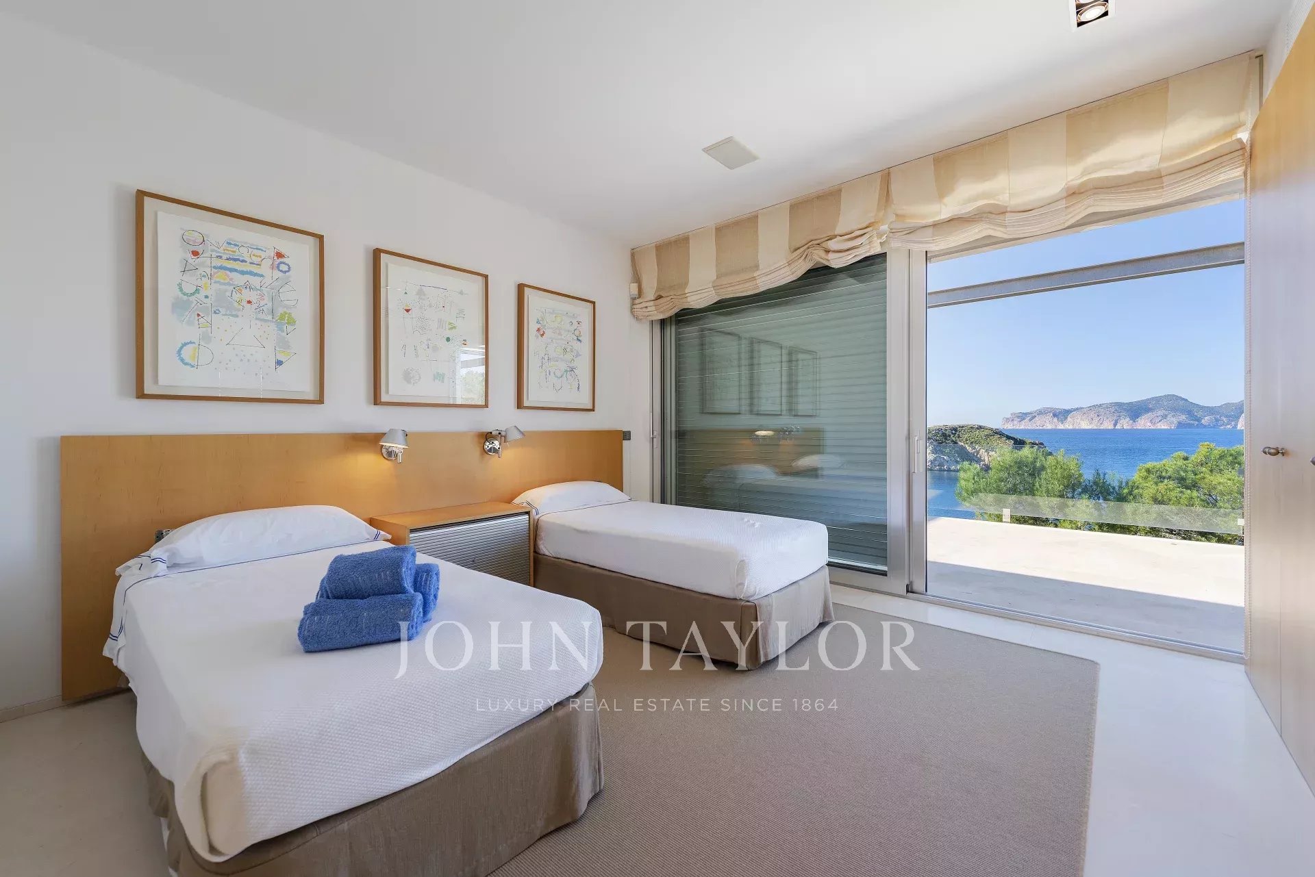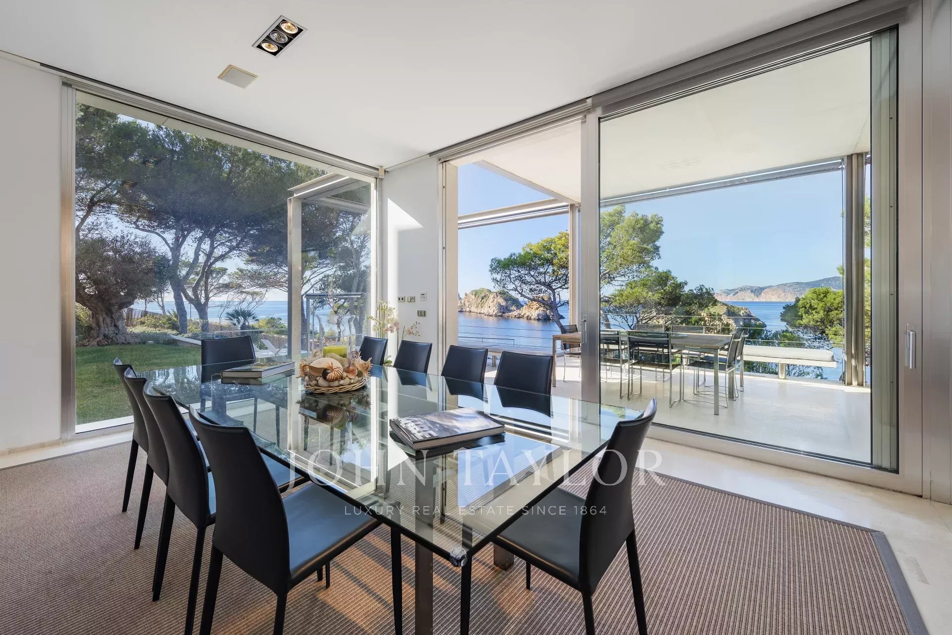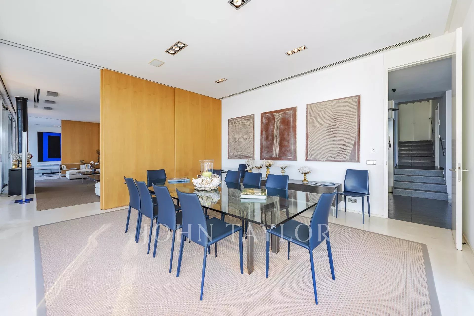 Эта великолепная вилла первой линии площадью 770 м2 предлагает захватывающий вид на море, острова Мальграт и прямой выход к морю с платформы с 15-летней прибрежной концессией. Вилла расположена в непосредственной близости от супермарины Порт Адриано, четырех близлежащих полей для гольфа и всего в 25 минутах езды от элегантной столицы и аэропорта Майорки. Оптимальный комфорт, большое пространство, светлый и современный дизайн интерьера с открытой гостиной и столовой, плавные переходы к открытым площадкам придают вилле идеальную атмосферу для средиземноморского образа жизни. В этой вилле действительно все продумано: жилые зоны удобно соединены между собой. Наверху, помимо просторной хозяйской спальни с собственной гостиной, есть еще четыре спальни с ванными комнатами. На первом этаже находится еще одна спальня с ванной комнатой и две спальни с общей ванной комнатой, идеально подходящей для персонала. Просторная кухня, гостиная и столовая. Всего 6 спален с ванными комнатами и 2 комнаты для персонала с ванными комнатами.