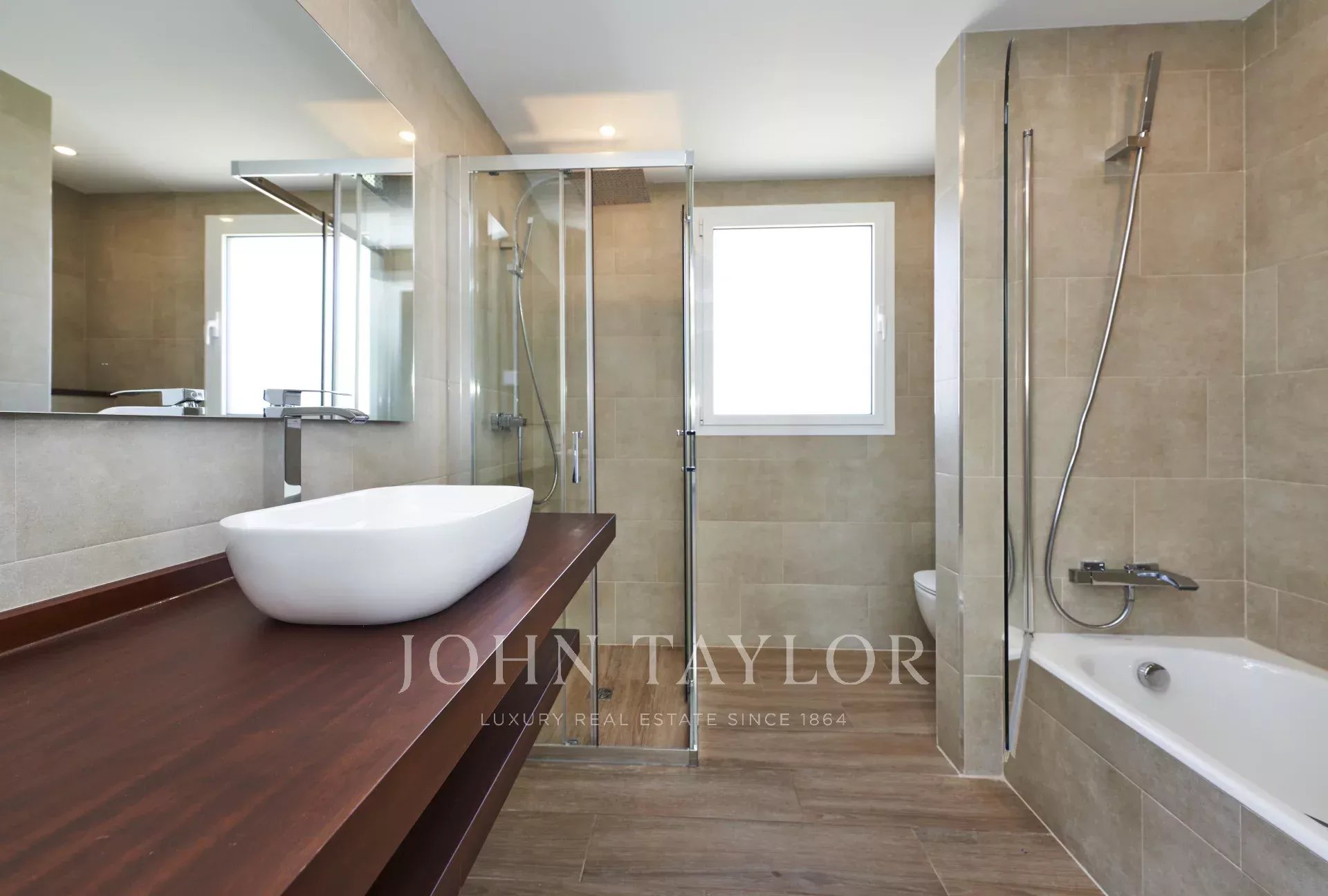 Откройте для себя этот впечатляющий роскошный дом, расположенный в Санта-Понсе рядом с полем для гольфа. Дом площадью 216 м² предлагает просторную гостиную и столовую, современную кухню и три уютные спальни. Достаточно места и идеальная атмосфера для спокойного отдыха в кругу семьи или друзей. Средиземноморская архитектура дополнена высококачественной отделкой, включая алюминиевые окна и двойное остекление для обеспечения оптимальной изоляции.