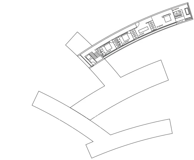 Подъезды для автомобилей и пользователей, а также террасы и бассейны этой композиции следуют непрерывности рисунков, которые обеспечивает сама архитектура. Эти созерцательные прогулки подготавливают и связывают пользователя с архитектурой и ее внешним ландшафтом.