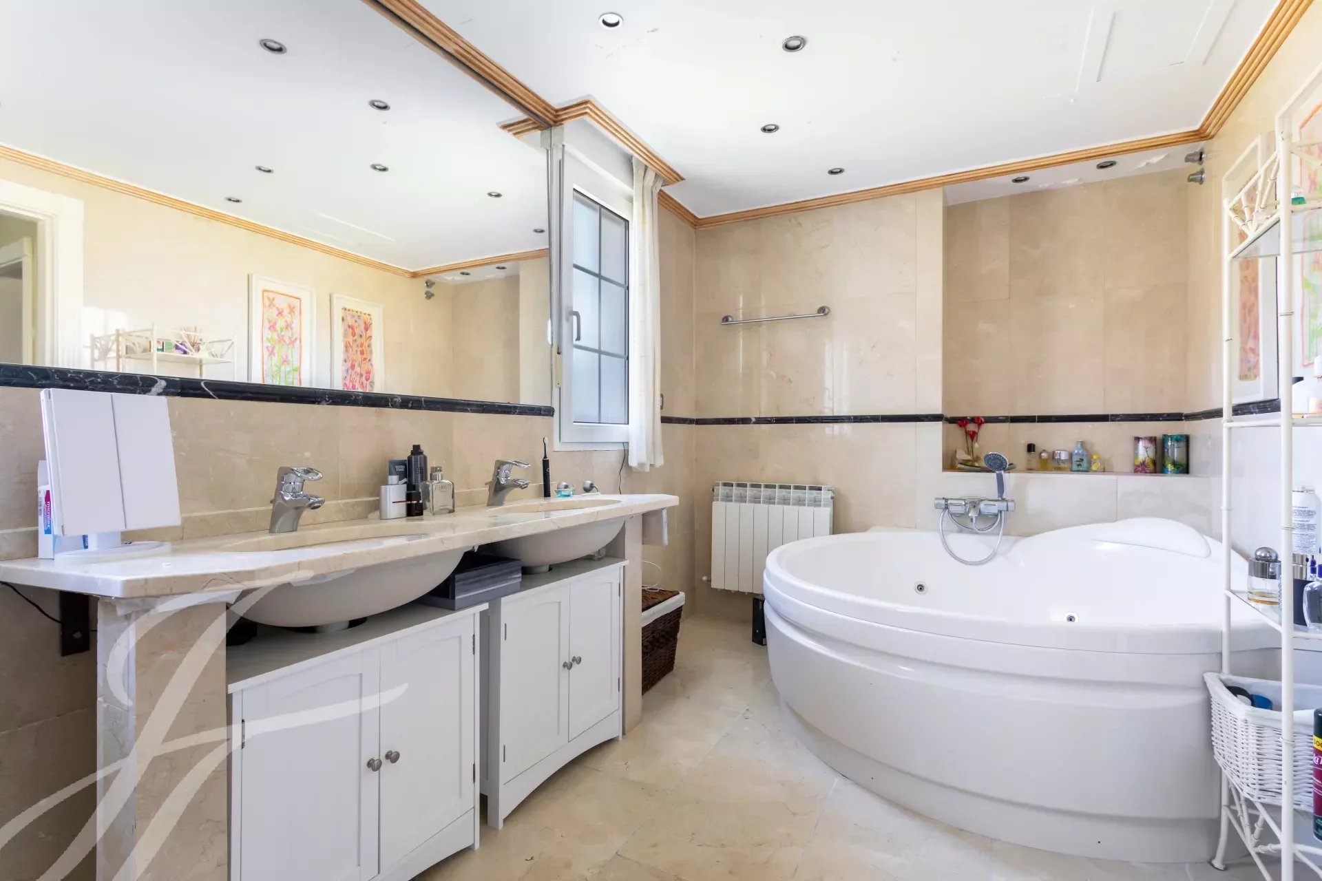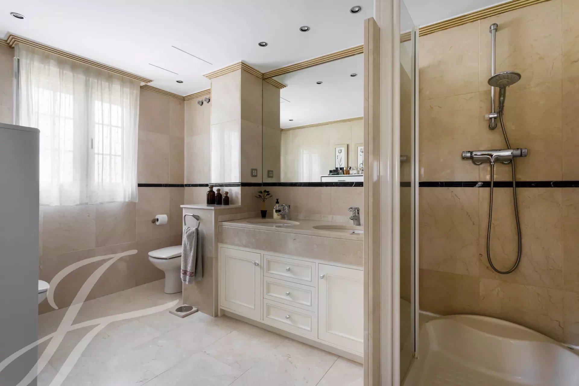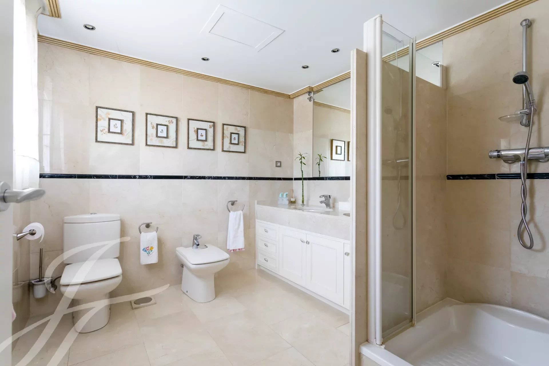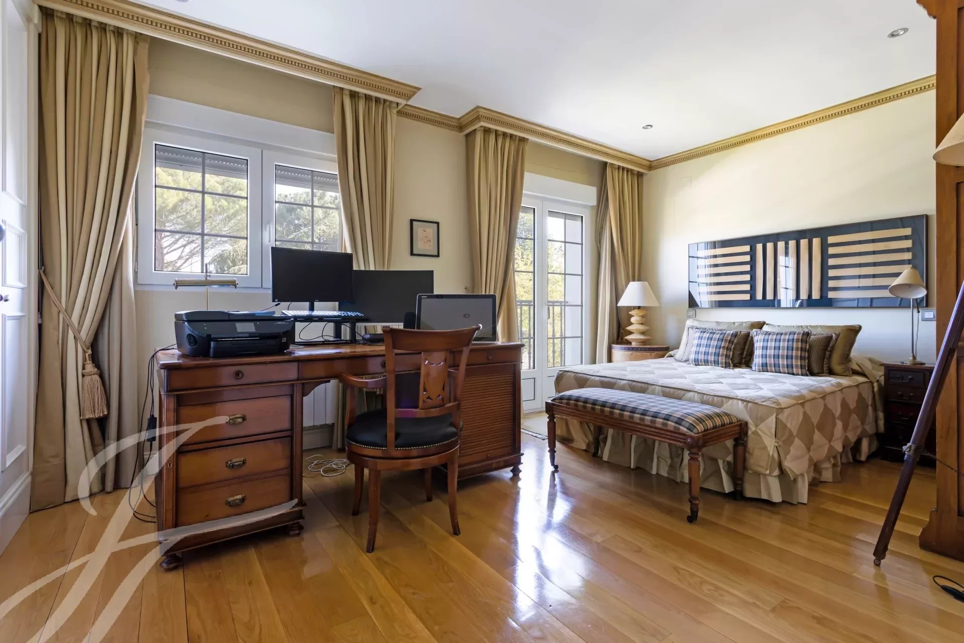 Впечатляющая вилла в классическом стиле на участке 2.200 м2 площадью 737 м2, с ухоженными садами, спроектированными известным ландшафтным дизайнером, и красивым бассейном. Великолепное здание в отличном состоянии, построенное из отличных материалов. Распределение на два основных этажа и полуподвальный этаж. Вход через впечатляющий холл, доступ на любой этаж по величественной лестнице или на лифте. Участок, благодаря своему расположению, обладает абсолютной приватностью и безопасностью.
