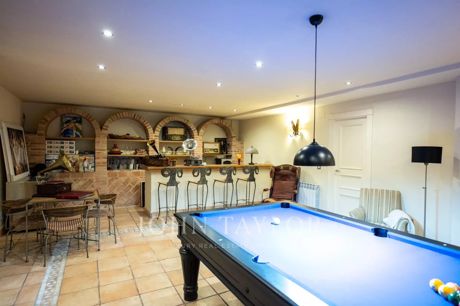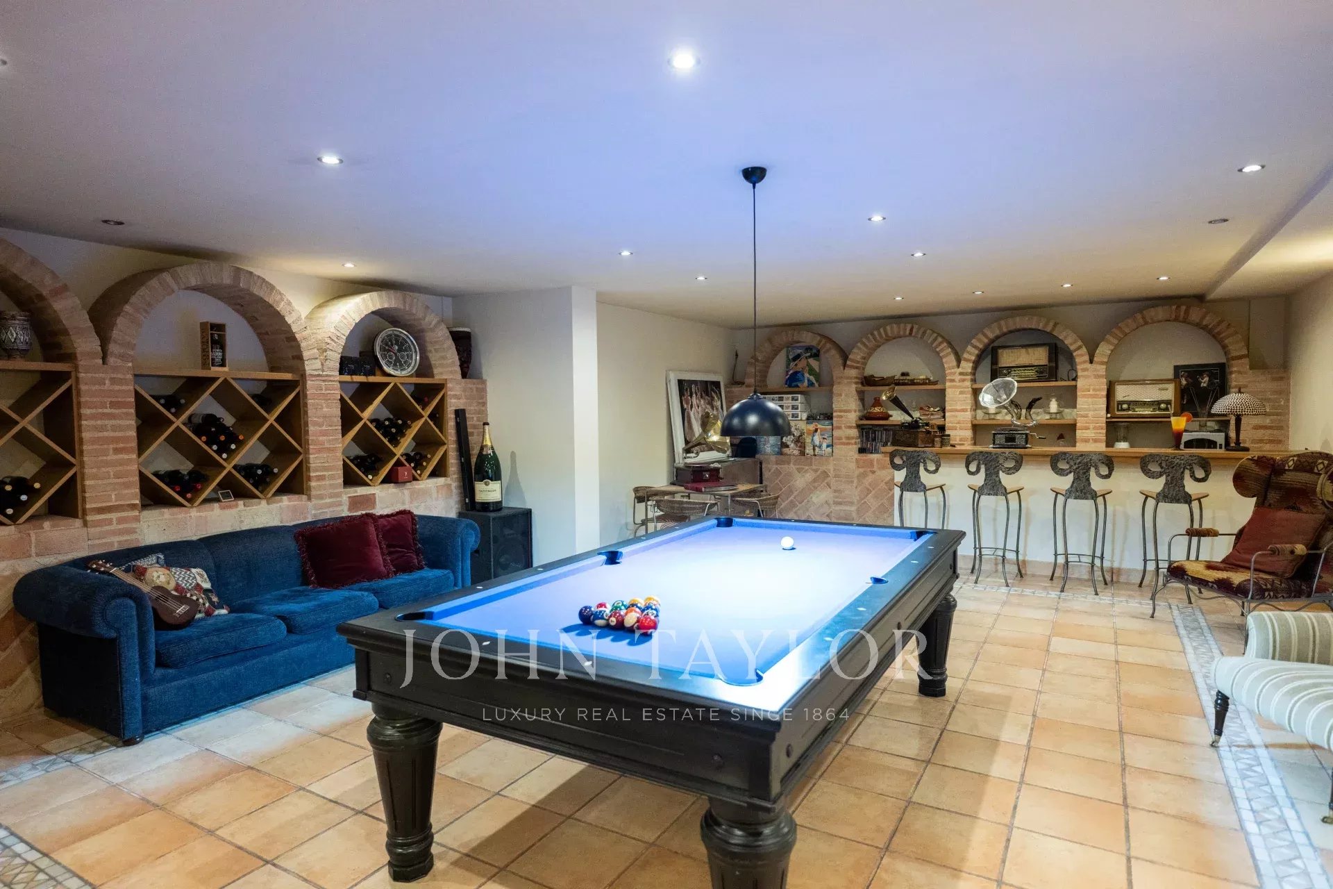 В полуподвале находится спальня и ванная комната для персонала, огромная гостиная, винный погреб и кладовая.