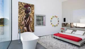 Внутри, учитывая пространственное богатство дома и сопоставление помещений, использование материалов в стенах, полах и потолках разнообразно (натуральный камень, металл, стекло различных характеристик, черное дерево, пластиковые материалы...).