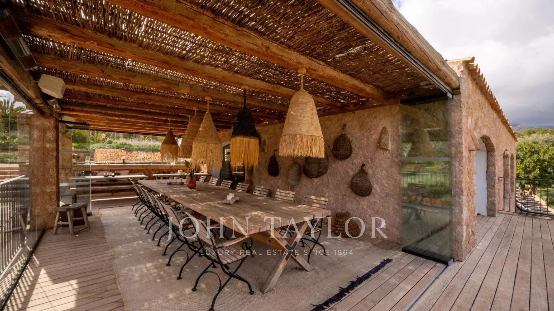 Дизайн поместья включает в себя влияние разных уголков мира, создавая гармоничную и спокойную атмосферу. С панорамным видом на Пальму-де-Майорку это поместье предлагает исключительные условия для того, чтобы замедлиться и погрузиться в безмятежную островную жизнь.