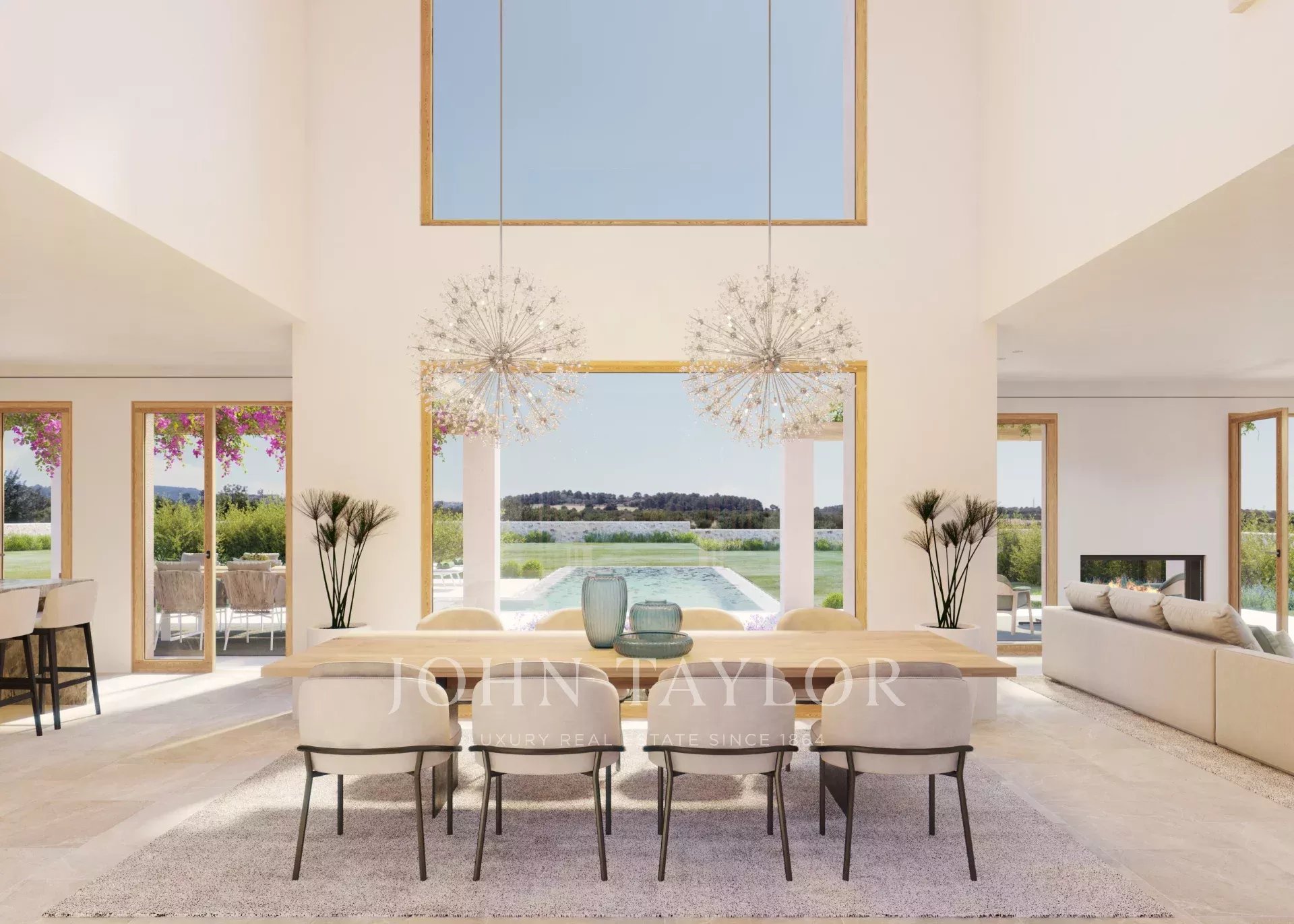 На втором этаже находится великолепная главная спальня с гардеробной, ванной комнатой и просторной террасой с великолепным видом на сельскую местность. Два дополнительных гостевых номера, оба с ванными комнатами, завершают этот этаж. На цокольном этаже есть много места для хранения, а также помещения для техники и технического обслуживания.