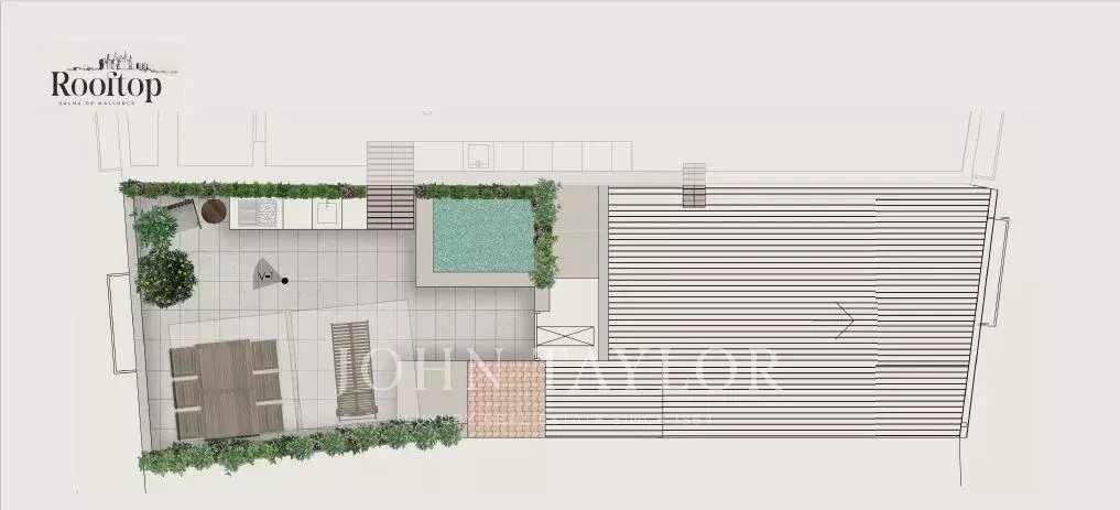 Терраса на крыше: Жемчужина дома - терраса на крыше - представляет собой идиллическое место для отдыха и развлечений. Наслаждайтесь частным бассейном, летней кухней, душем на открытом воздухе, выделенными зонами для обедов, отдыха и расслабления - и все это с захватывающим видом на исторический горизонт Пальмы.