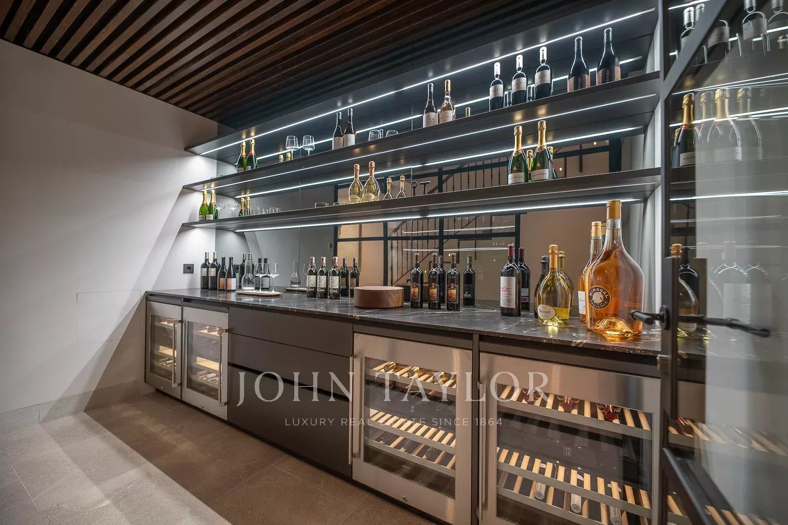 Особенность недвижимости заключается в двойном доступе: через элегантный главный вход спереди или через охраняемую парковочную зону сзади. Входя, вас встретит грандиозный лобби с декоративным камином, стильным винным баром, прачечной и просторным гаражом. Верхние этажи, доступные по лестнице или лифту, продуманы так, чтобы максимизировать комфорт и функции.