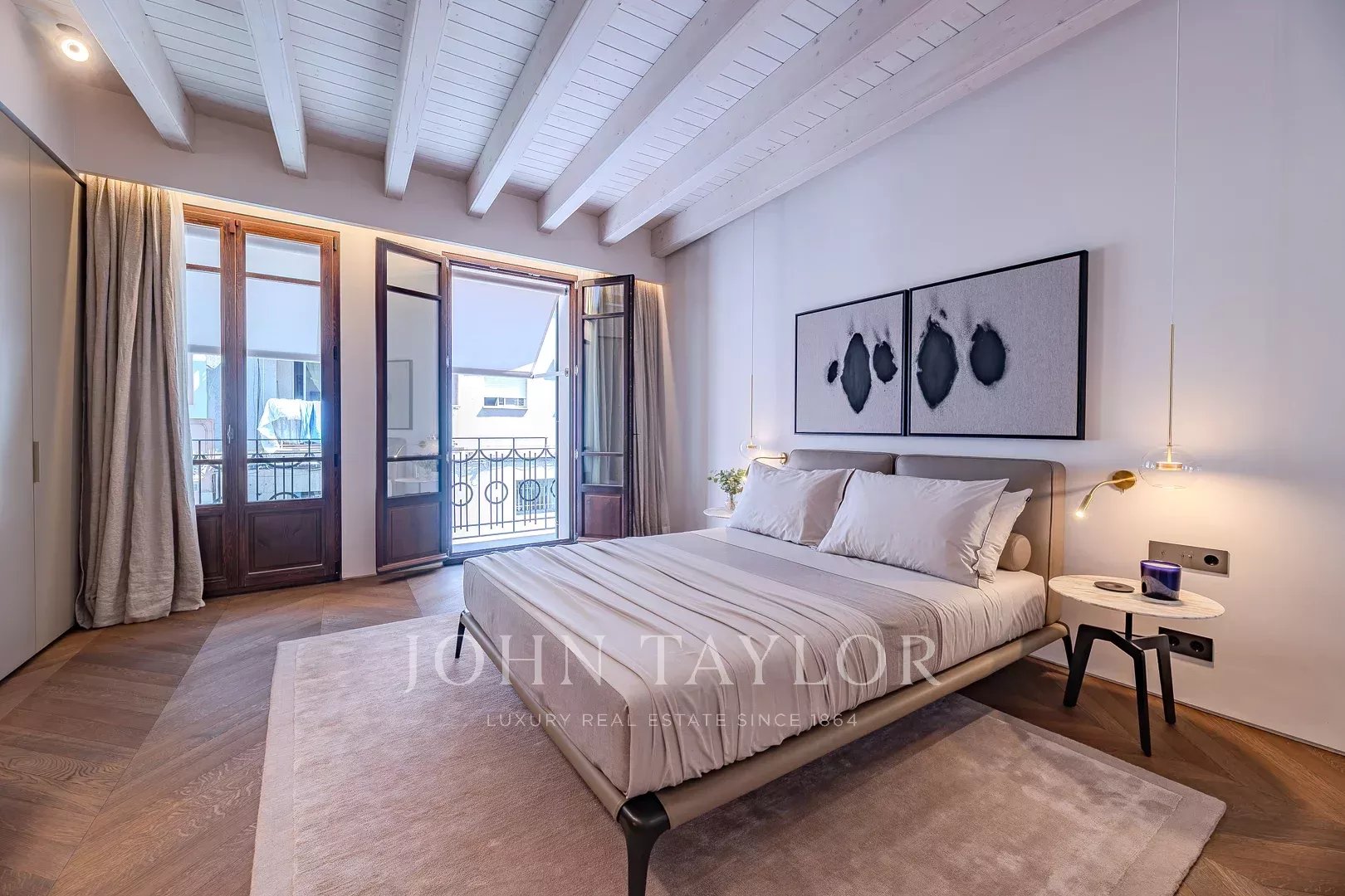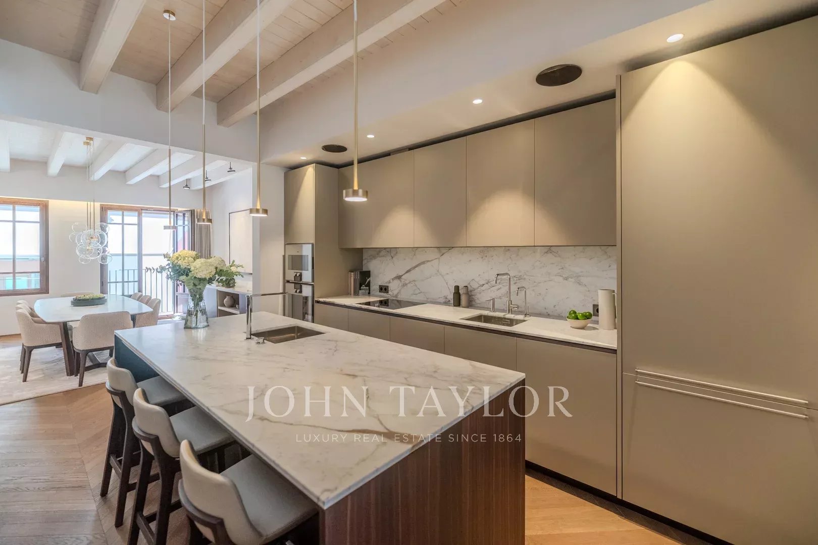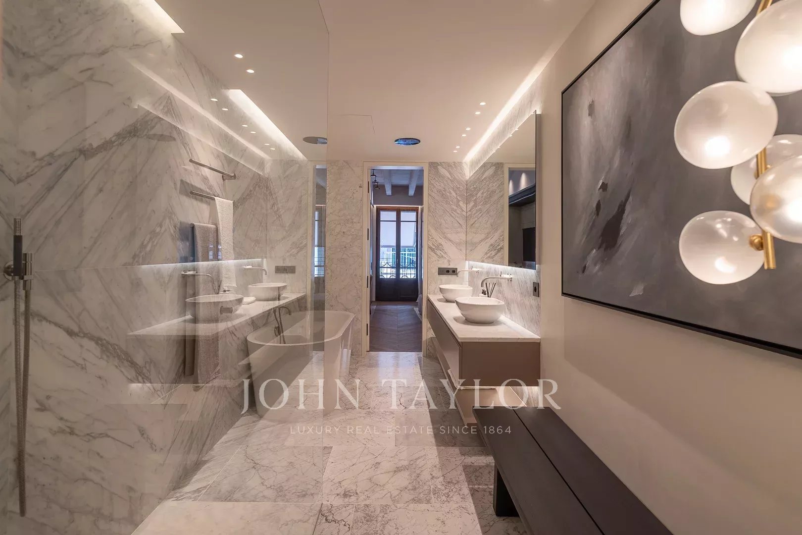 Второй этаж: роскошная спальня владельца занимает весь этаж, включает гардеробную, элегантную ванную комнату en-suite и частную гостиную. Также есть возможность добавить четвертую спальню, если потребуется.