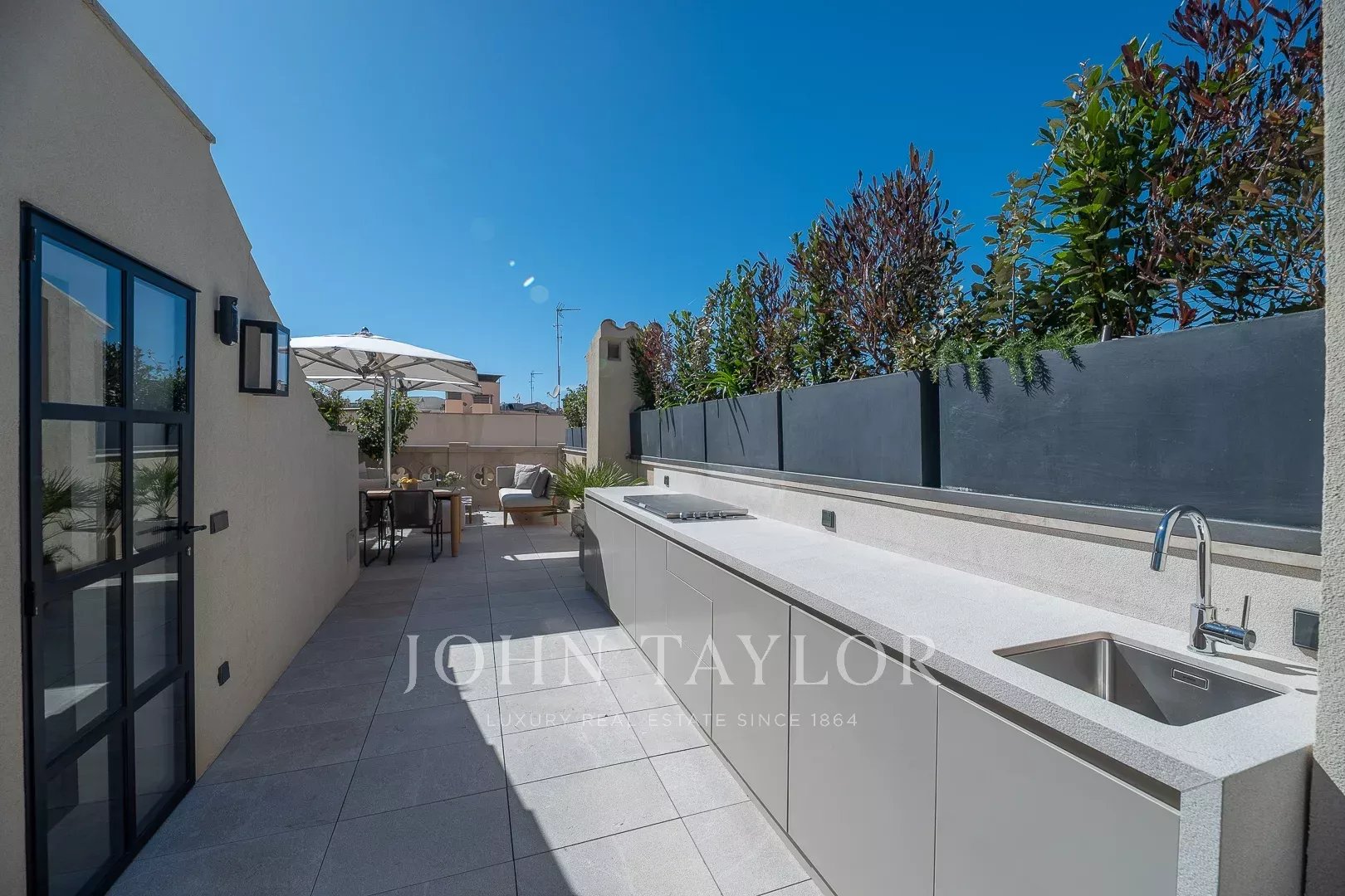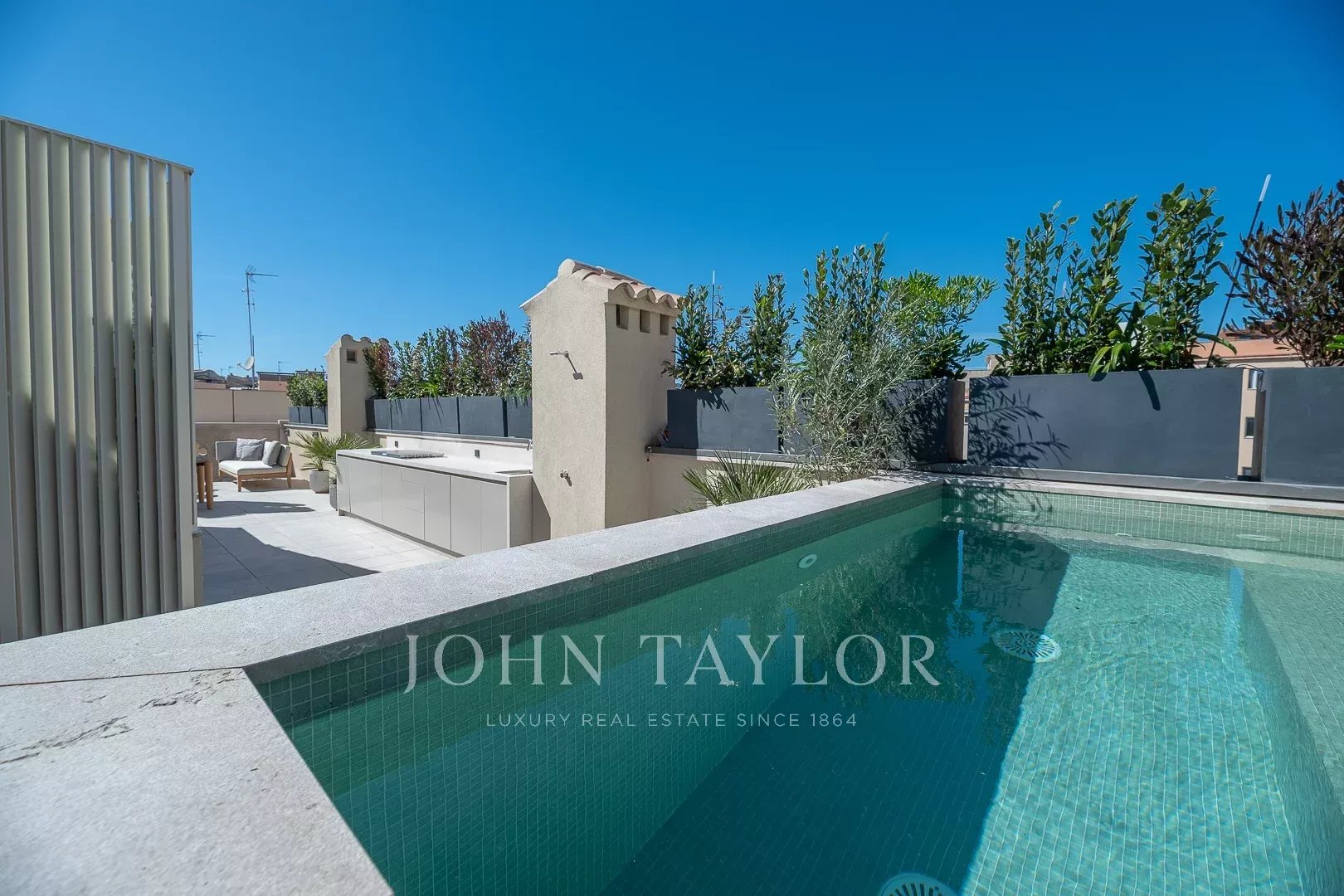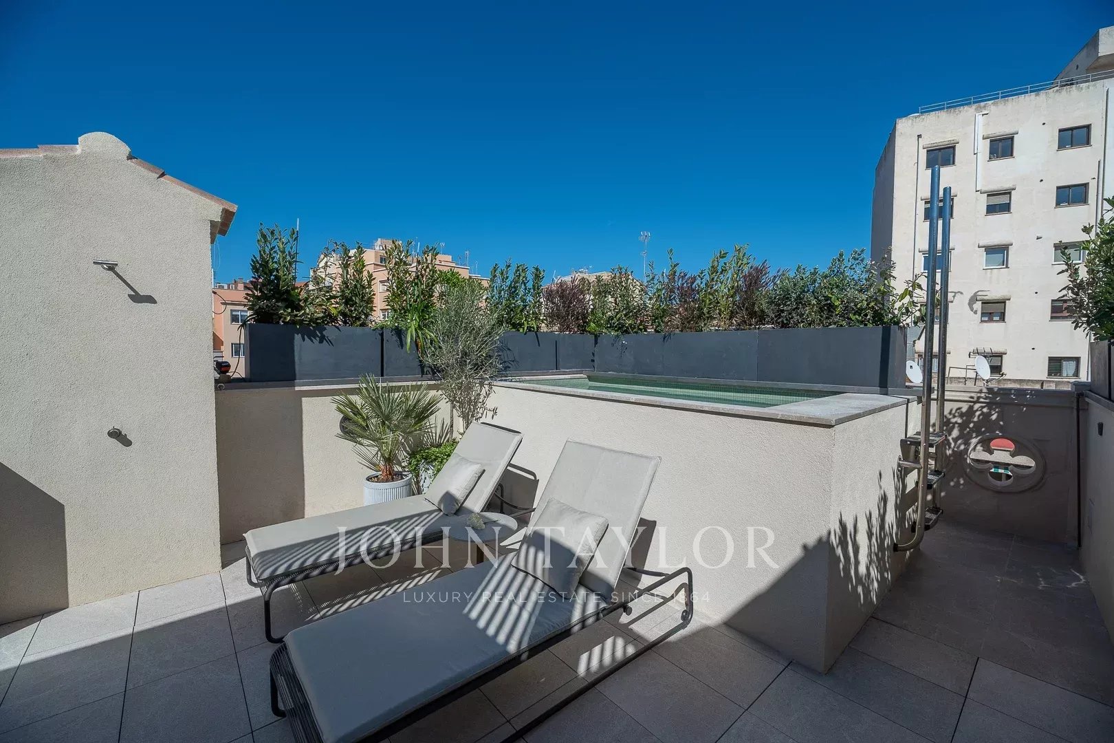 Крытая терраса: главная жемчужина недвижимости — крытая терраса, обеспечивающая идиллическое пространство для отдыха и развлечений. Наслаждайтесь частным бассейном, летней кухней, уличным душем и отдельными зонами для обедов, отдыха и расслабления — все с захватывающим видом на исторический skyline Пальма.