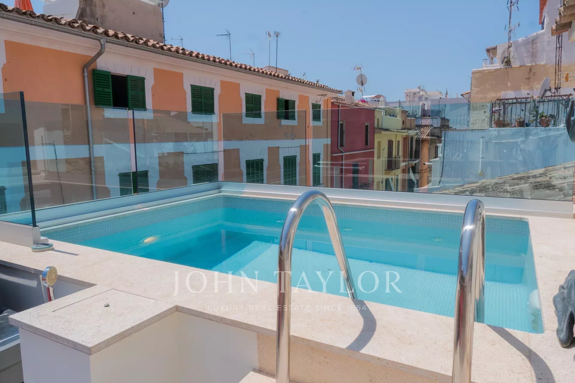 Этот фантастический таунхаус предлагает 5 просторных спален с 4 ванными комнатами. В двух главных спальнях есть большая гардеробная с балконом и видом на исторический центр Пальмы. Благодаря большим окнам с видом на центр города, в доме имеется просторная гостиная, идеально подходящая для светской жизни и невероятных вечеров. Также имеется большая солнечная терраса с частным бассейном и зоной отдыха, а также гараж на две машины. Другие особенности: Подогрев полов, смягчитель воды, система domotic и кондиционер. Не стесняйтесь обращаться к нам, вы влюбитесь в эту недвижимость.